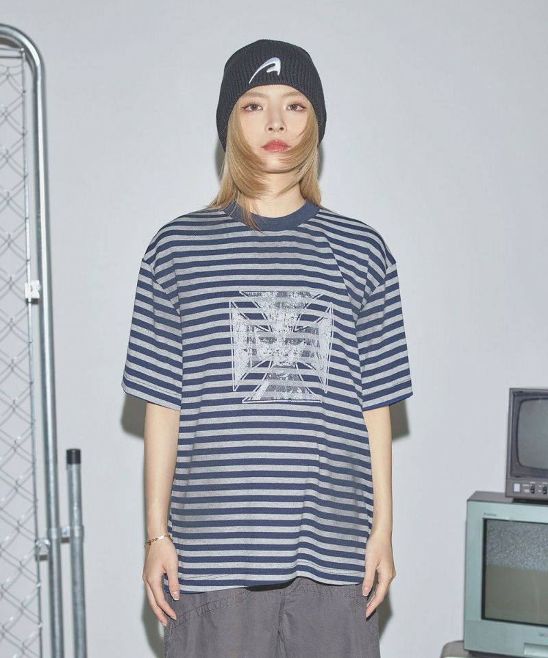 オーバーサイズグラフィックボーダー半袖Tシャツ【UNISEX】