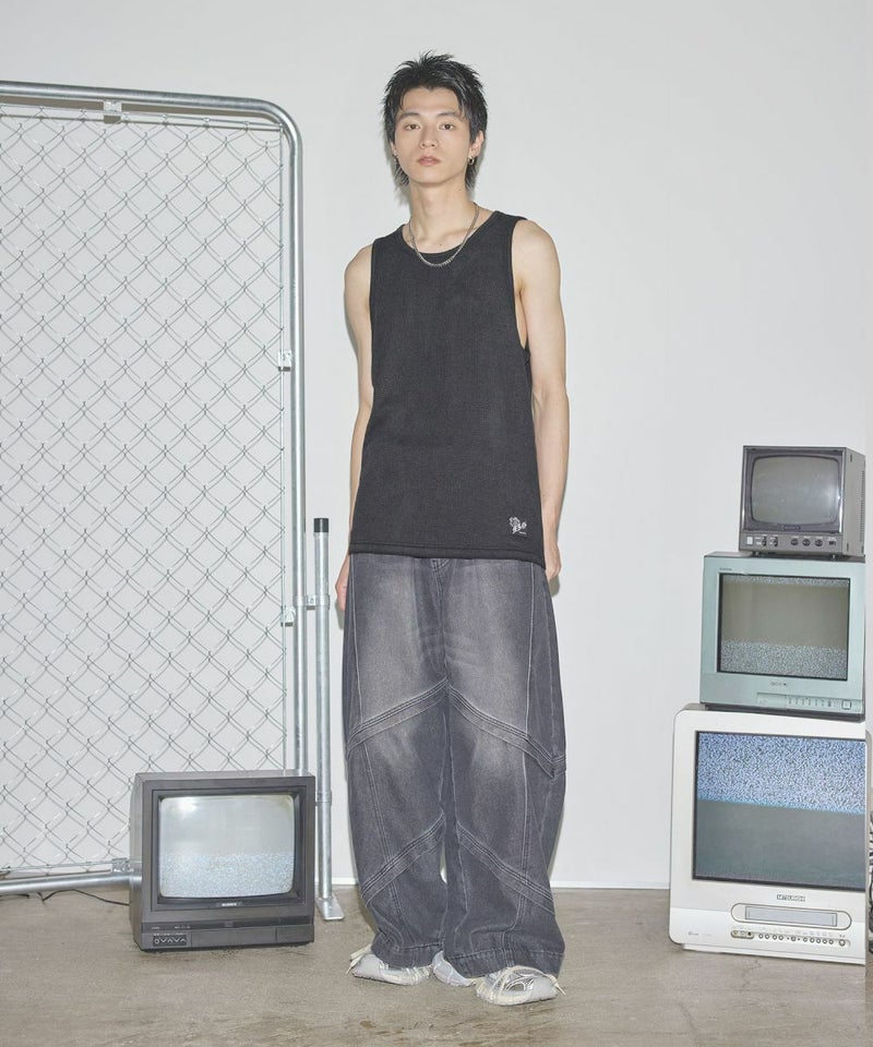 ワンポイントワッフルタンクトップ