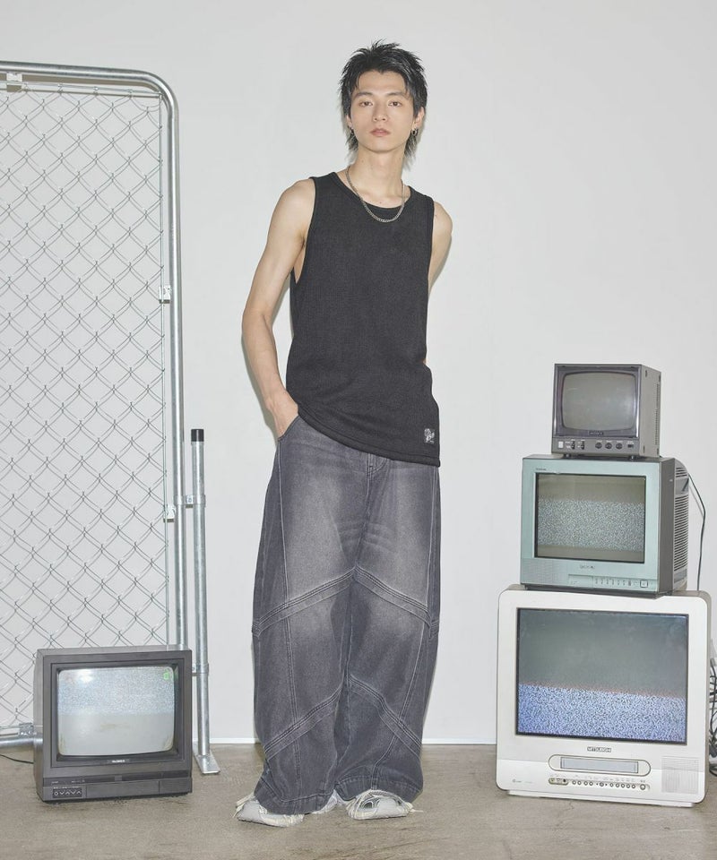 ・ワイドパンツやスウェット、デニムパンツなど、ボトムスにボリュームを持たせてもバランス良く着こなせます。