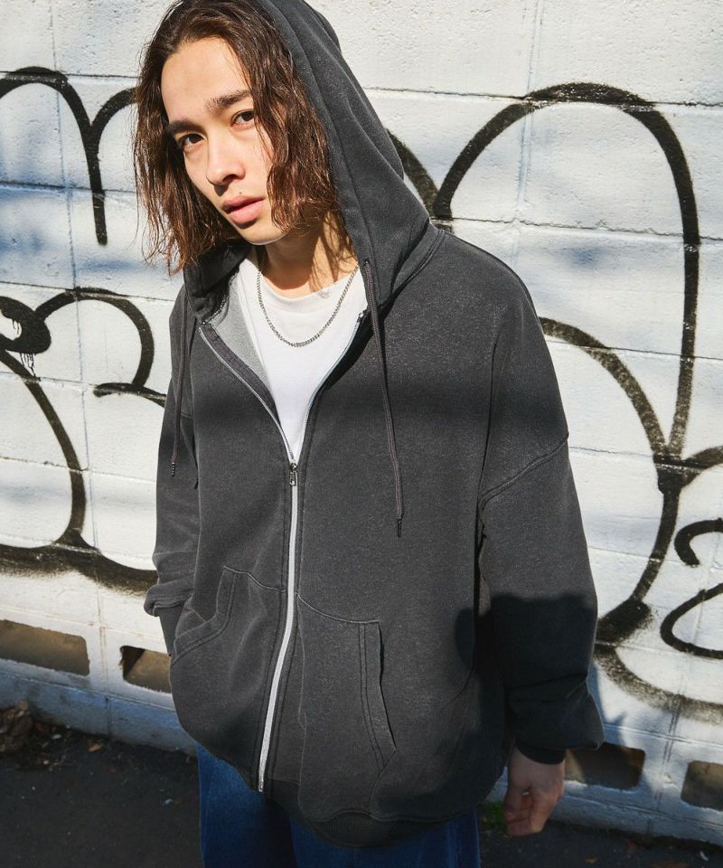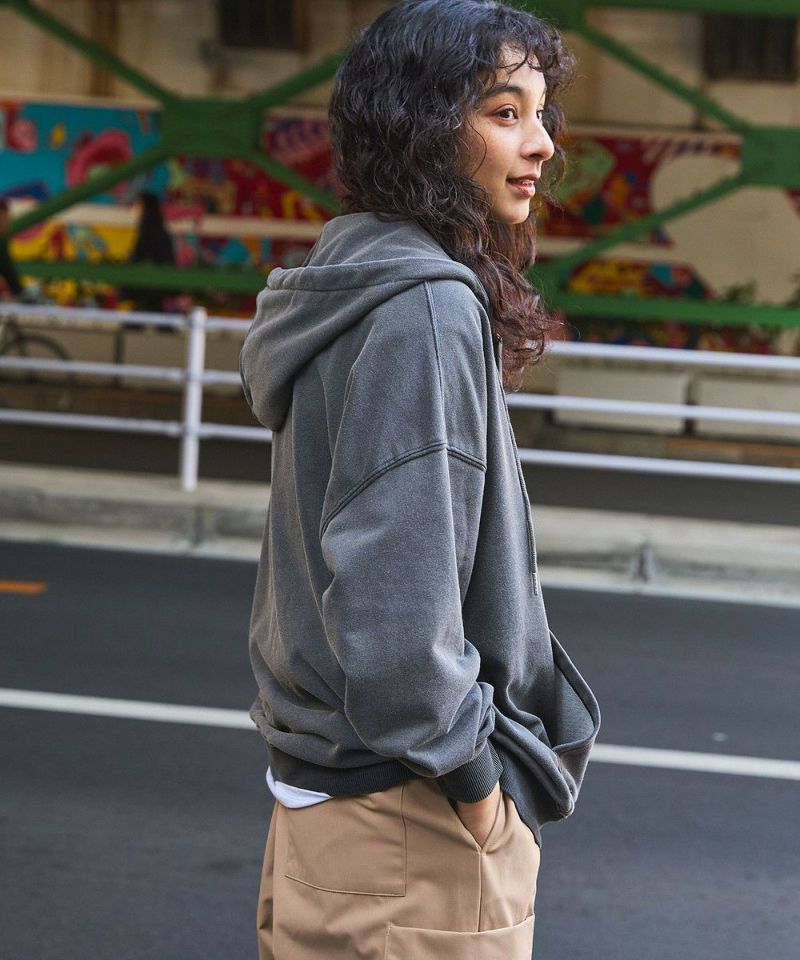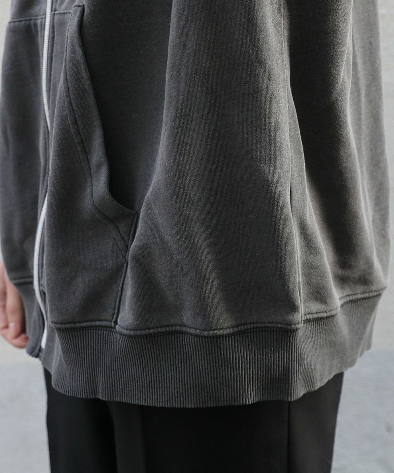 ライトウェイトなTC裏毛生地のフルジップパーカー。絶妙なバランスのルーズシルエットでトレンド感のある着こなしにぴったりのアイテムです。シンプルなスミクロの濃淡に、インディゴの濃色カラーをプラスした3色展開。インディゴ染のナチュラルでヴィンテージライクな雰囲気がストリートスタイルにもマッチします。軽い着心地と程よくゆとりのあるサイズ感が、SSシーズンの羽織物として重宝すること間違いなしの一着です。女性にもおすすめなユニセックス対応アイテムです。
