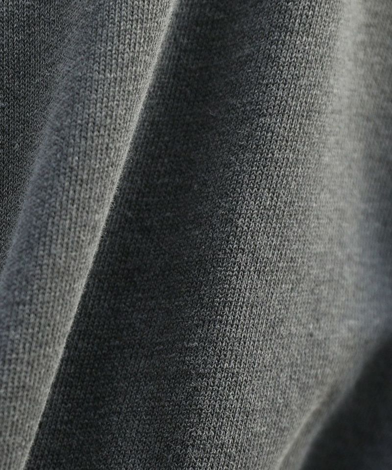 柔らかな肌触りの裏毛スウェット生地を使用。ポリエステル×綿の混紡素材で、綿のタッチを残しつつ、シワになりにくさもポイント。厚すぎず薄すぎない程よい厚みの生地感で、幅広いシーズンに対応してくれます。