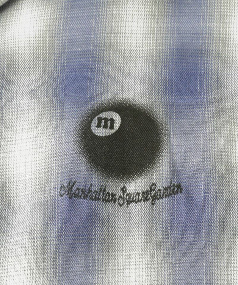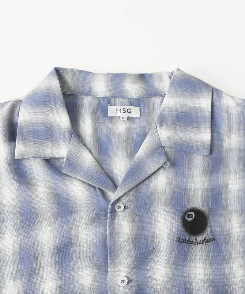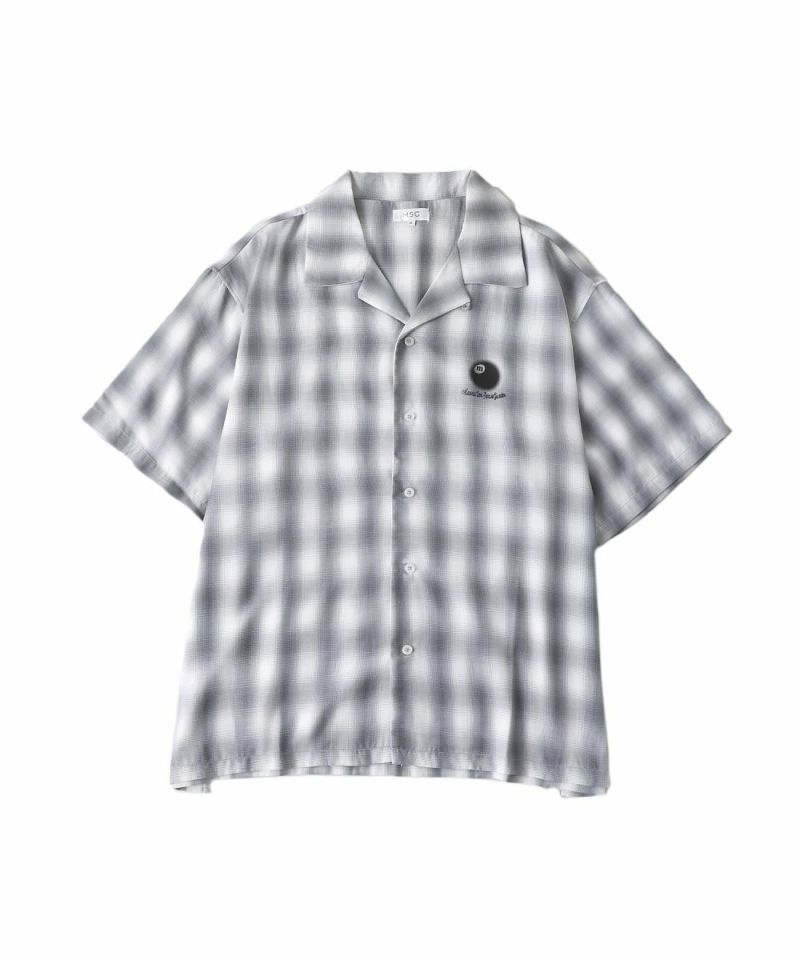 ビリヤードロゴオーバーサイズオンブレチェック半袖オープンカラーシャツ
