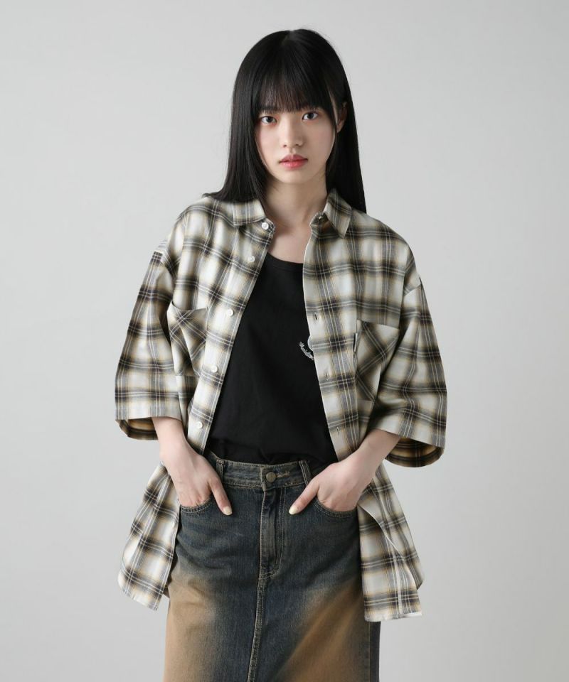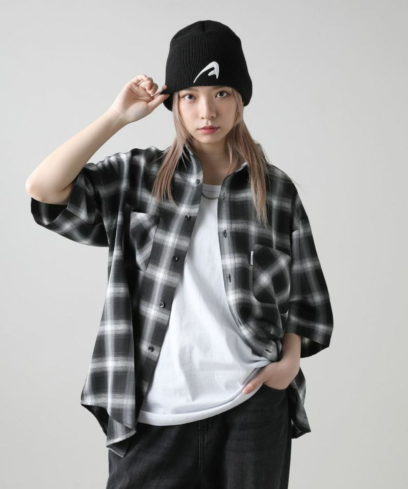 今季トレンド、オンブレチェック柄の半袖シャツ。ゆるいサイズ感がストリートスタイルにハマるビッグシルエット。ぼやけたようなチェックが特徴のオンブレチェックは、ヴィンテージ感のある雰囲気が魅力。身幅や袖幅をワイドに設定した大き目のサイズ感なのでメンズはもちろん、レディースがダボっと着ても今っぽい印象に。一着あると気軽にさっと羽織れ、コーディネートの幅が広がるアイテムです。ユニセックスで着用可能です。