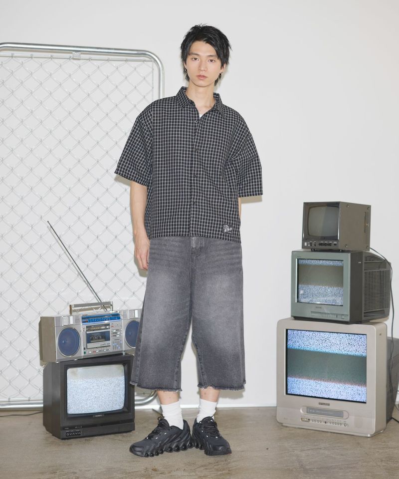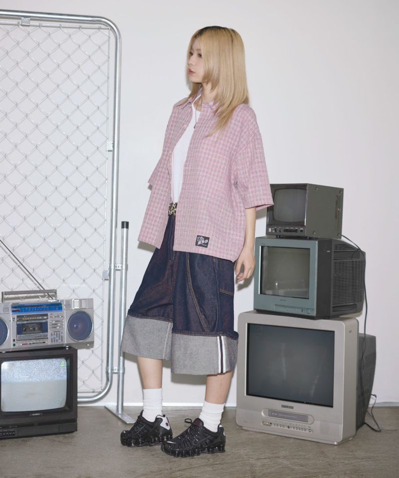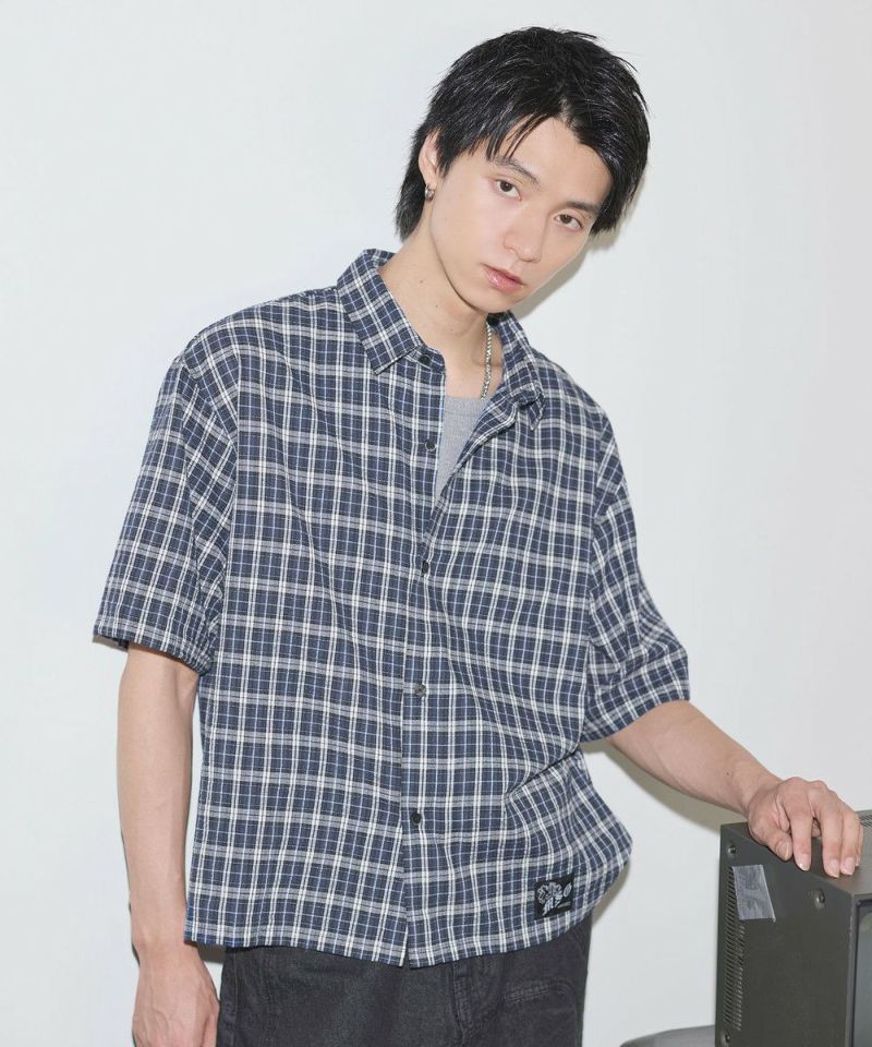ハーフスリーブショート丈ミニチェックシャツ【UNISEX】