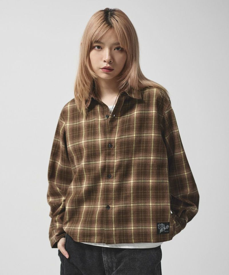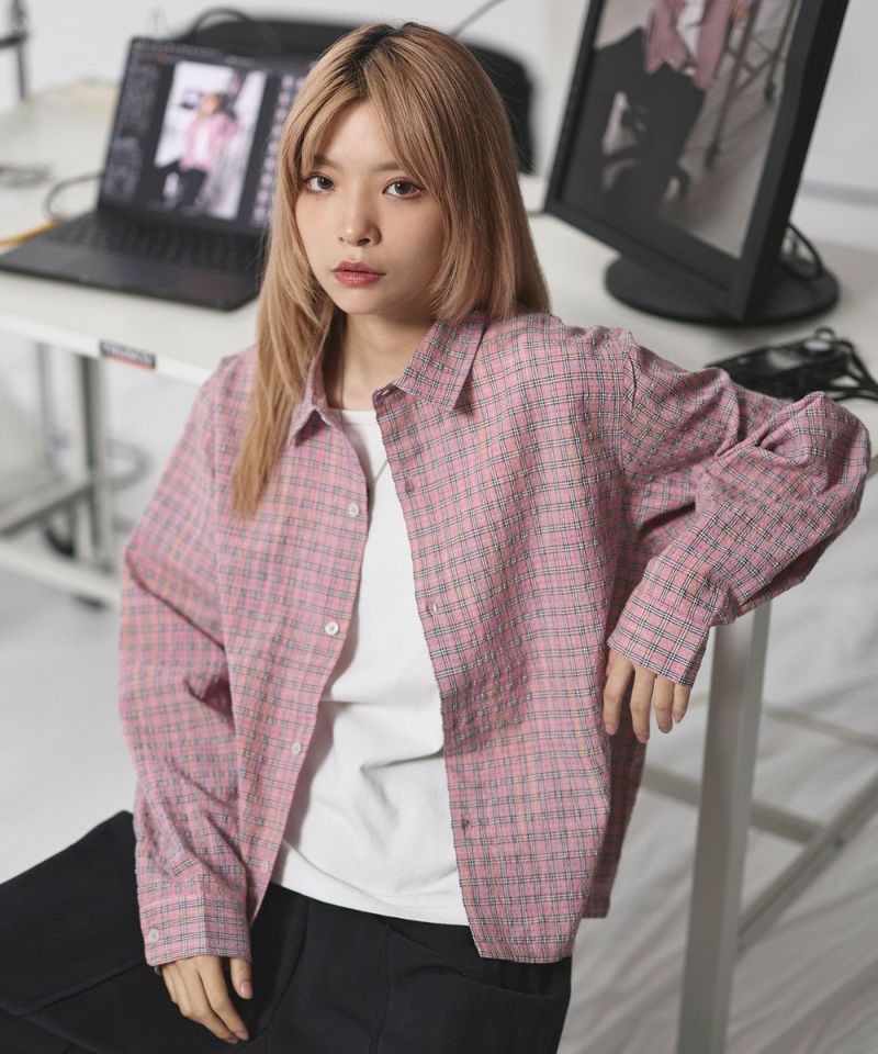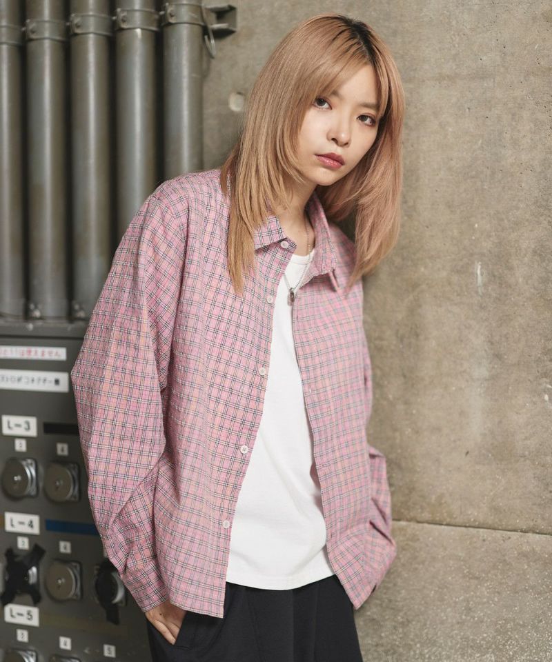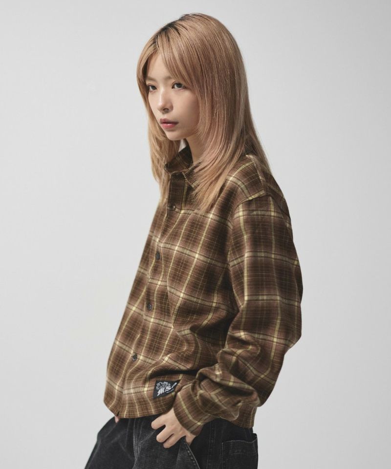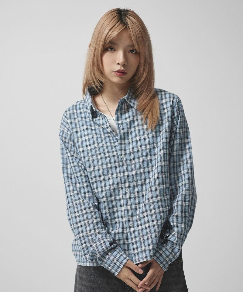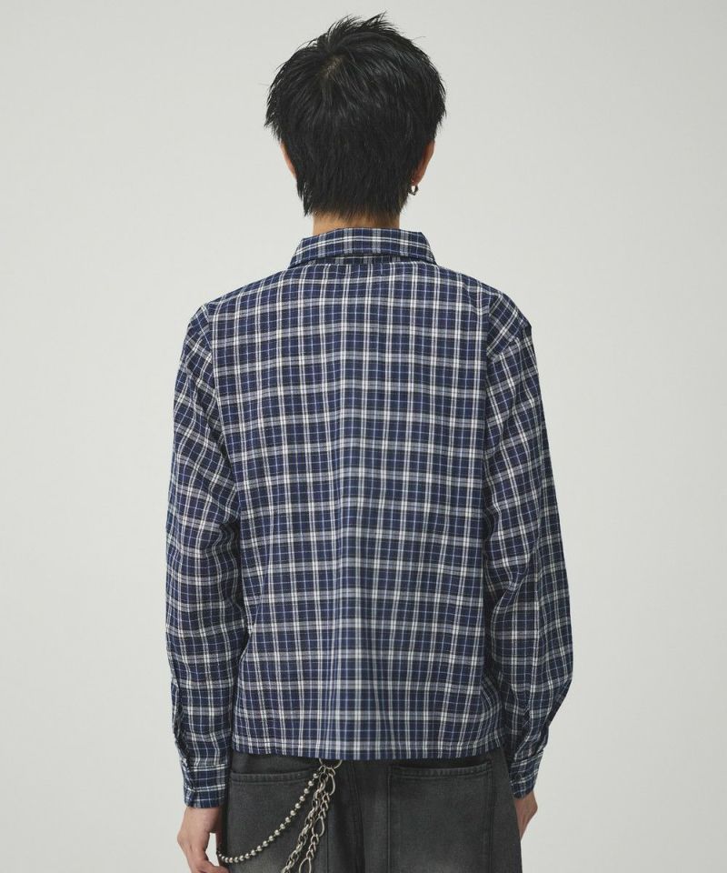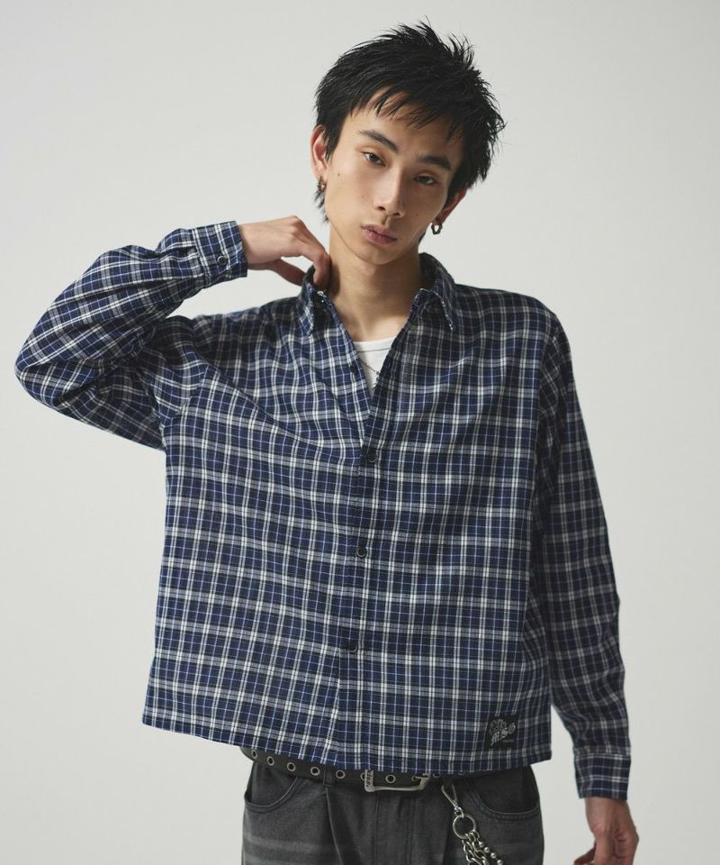 ・短丈デザインとボックスシルエットが特徴のマルチチェック長袖シャツ。