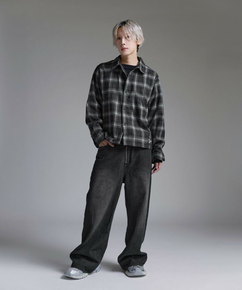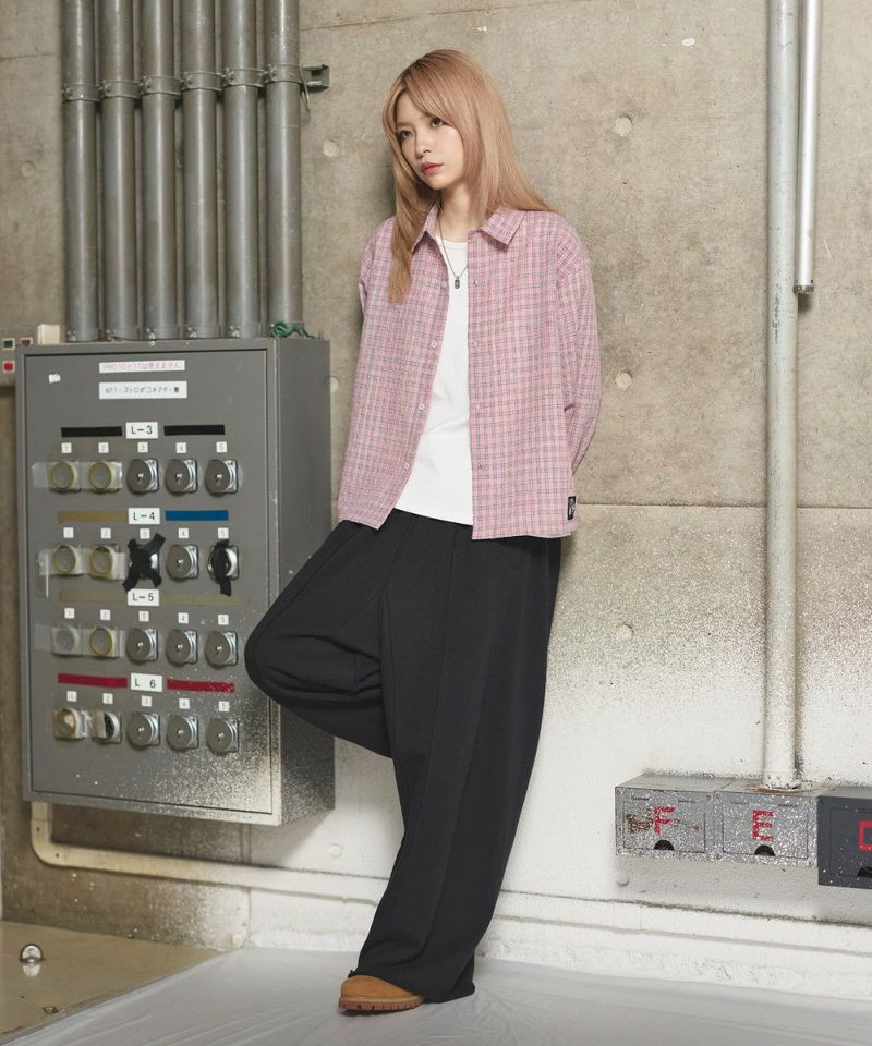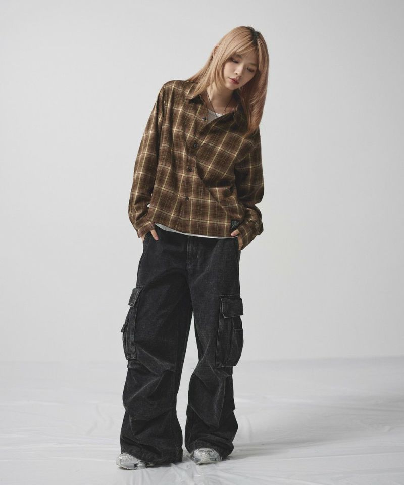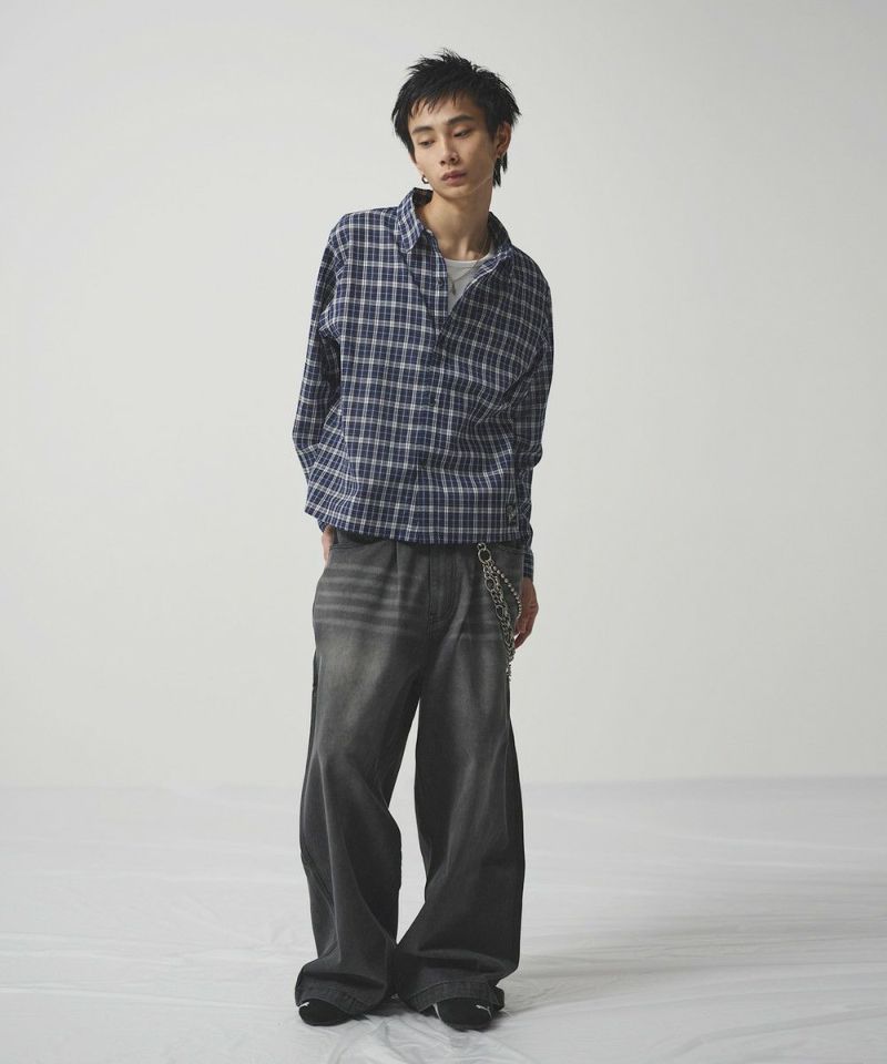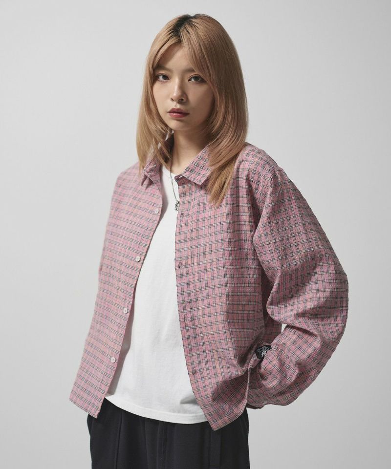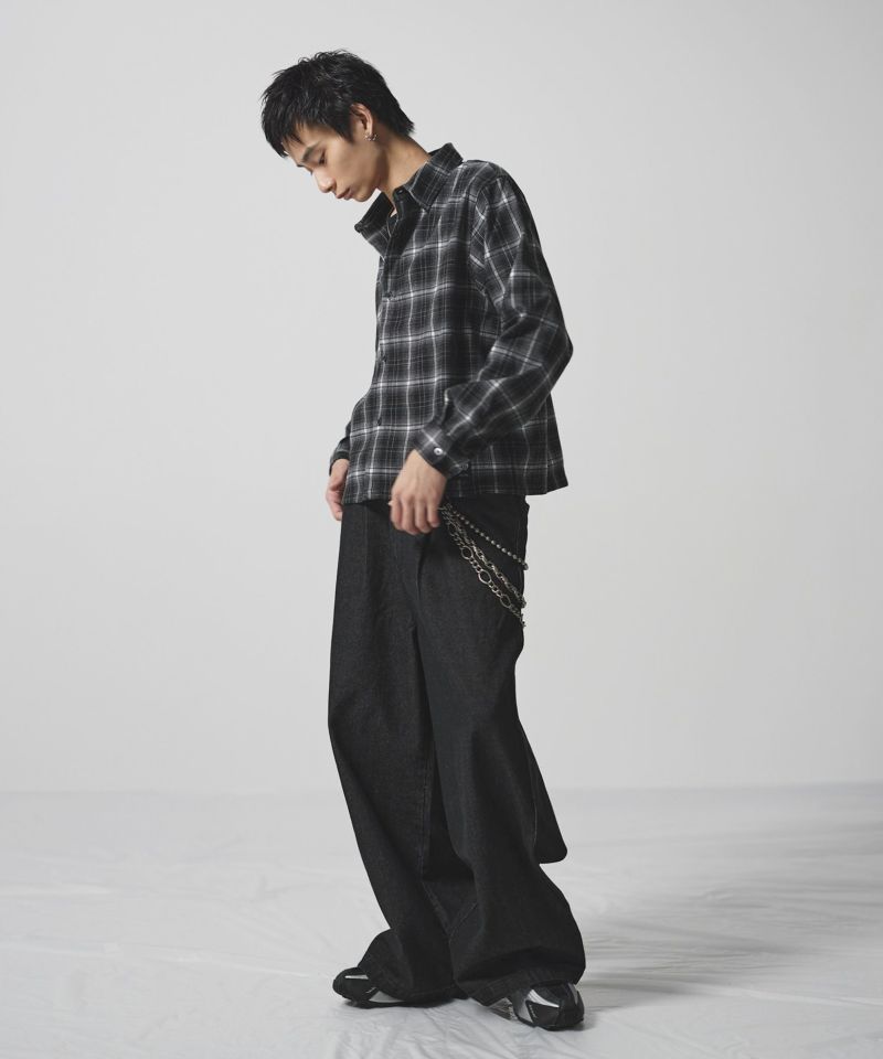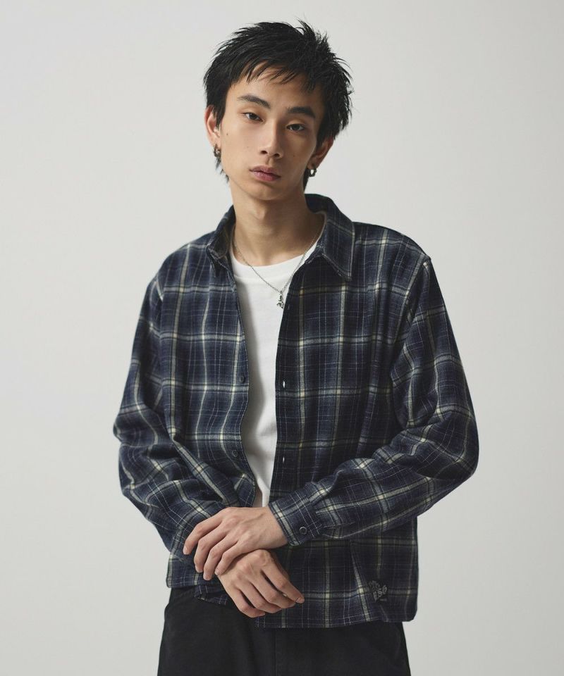 ・短丈デザインとボックスシルエットが特徴のマルチチェック長袖シャツ。