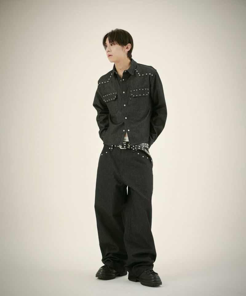 ウエスタンディテールを取り入れた、リベットデザインが印象的なデニムシャツ。肩とフラップポケットに施されたリベットが、さりげなくエッジの効いたアクセントになっています。
