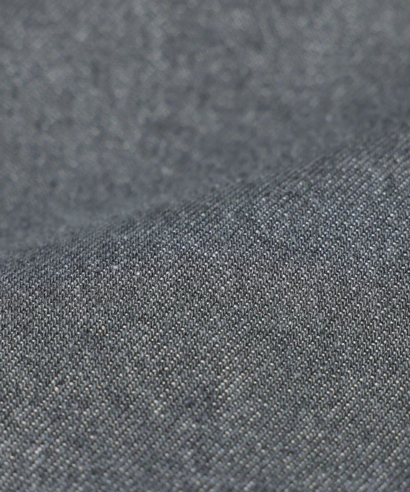 ハリ感がありながらも、着用時には柔らかさを感じられる生地で、快適な着心地に仕上げています。着用を重ねることで風合いの変化も楽しめ、シーズンを問わず着用しやすい素材感です。