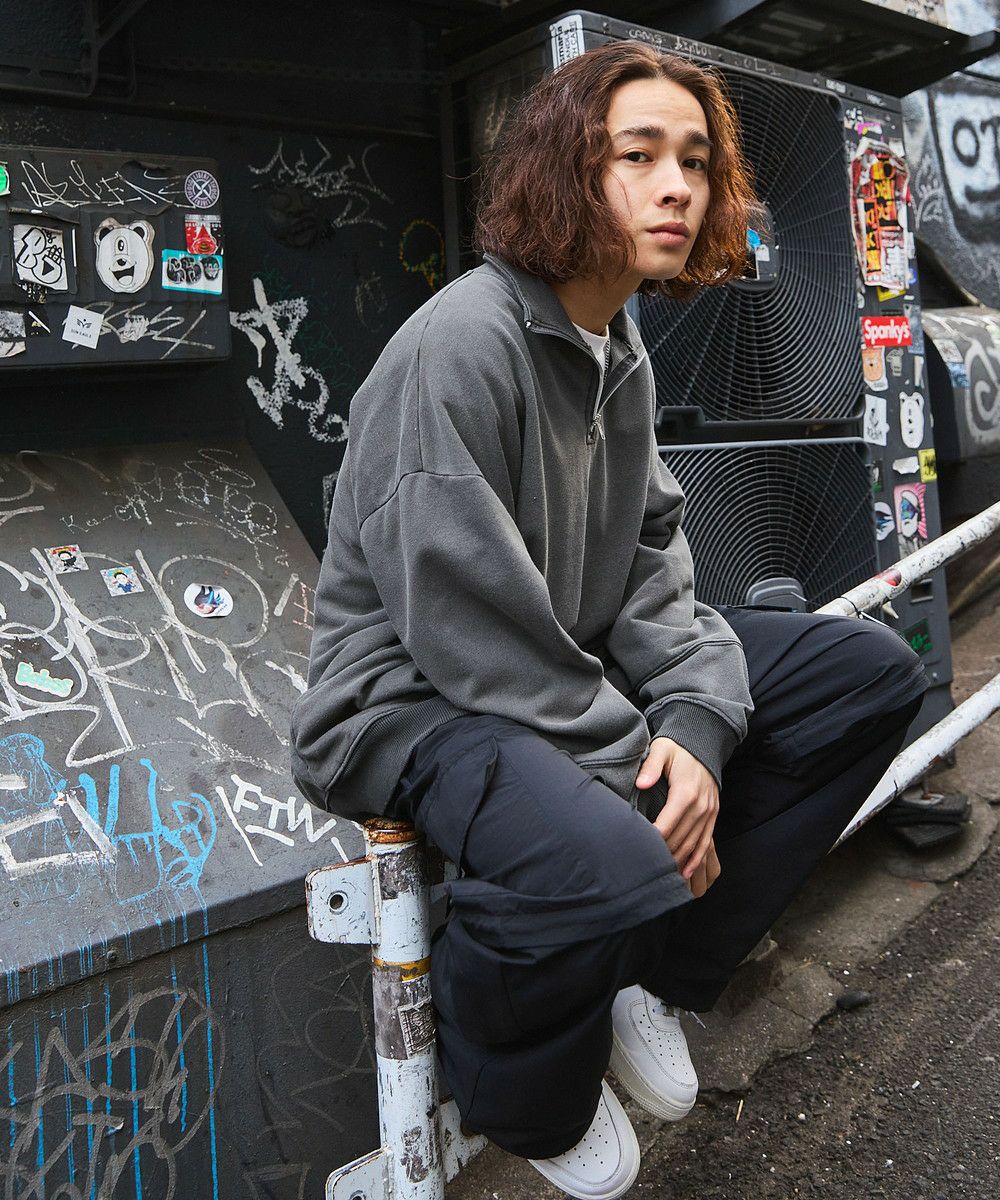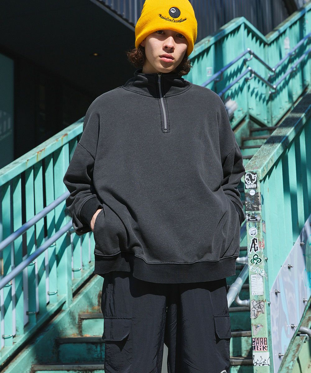 ルーズシルエットヘビーウェイトスウェットハーフジップ【UNISEX】