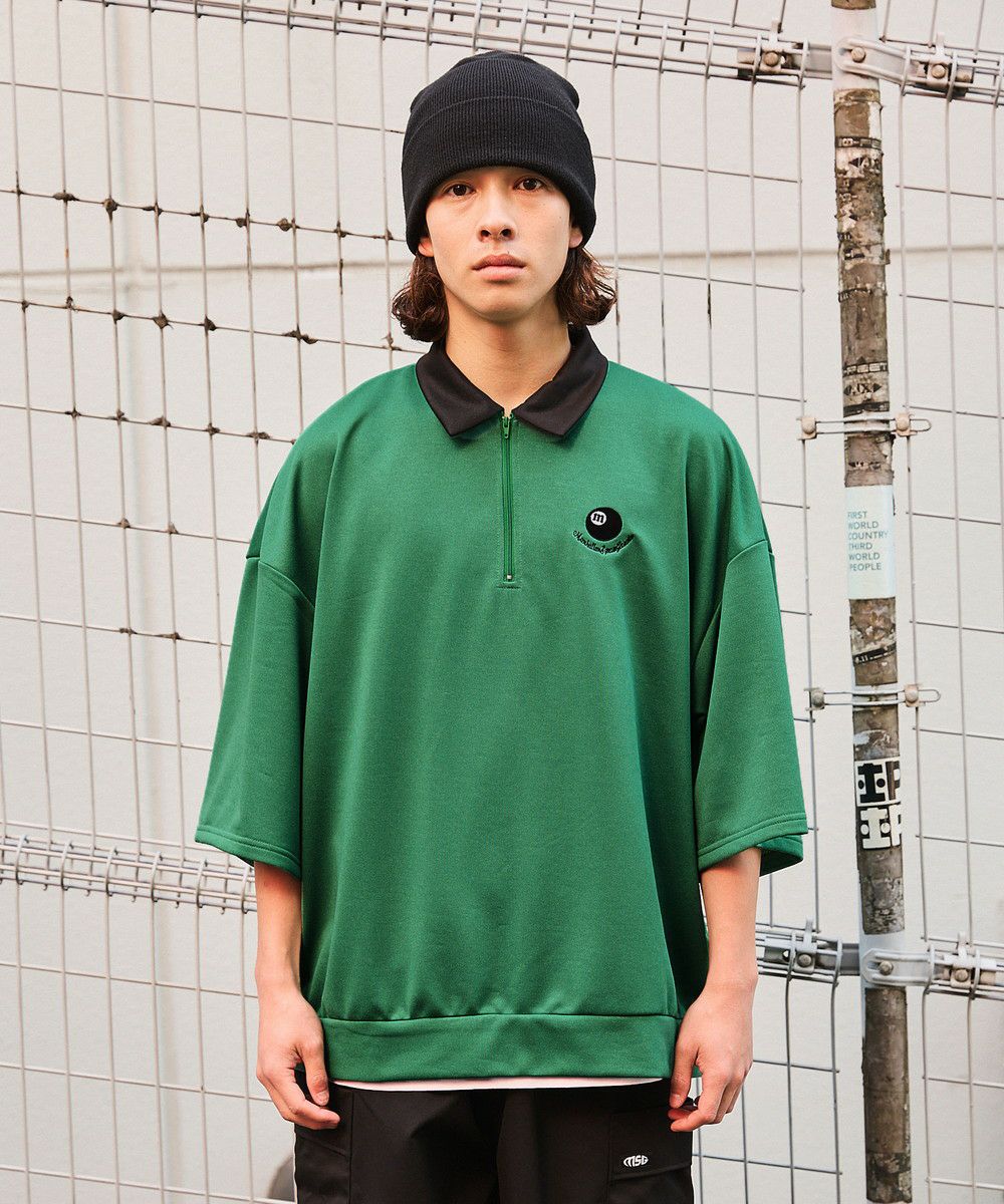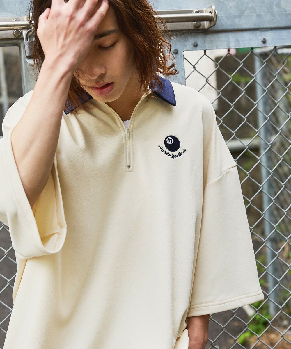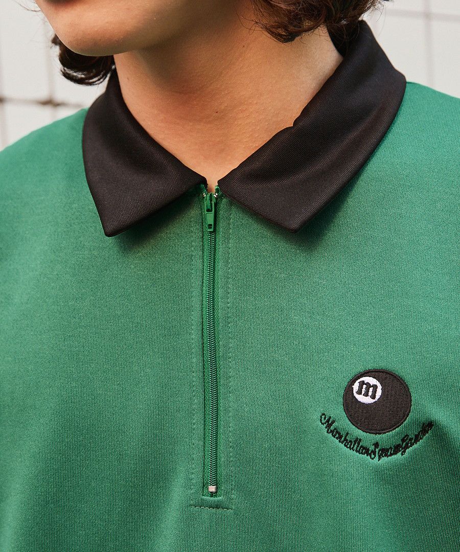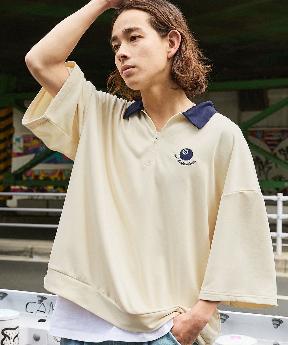 ワンポイント刺繍ハーフジップビリヤードロゴ半袖プルオーバー