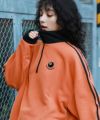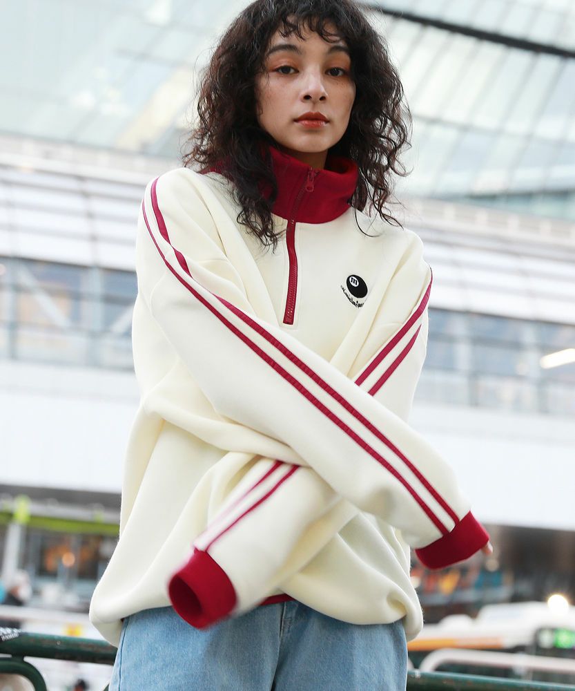 オーバーサイズハーフジップスウェットプルオーバー 配色 ビリヤードロゴ ワンポイント刺繍 サイドライン トラックジャケット