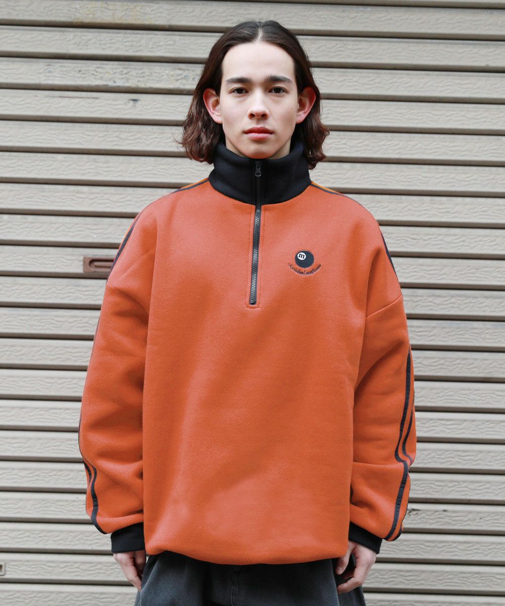 MSG オーバーサイズハーフジップ フリース  プルオーバー 配色 ビリヤードロゴ ワンポイント刺繍 サイドライン トラックジャケット