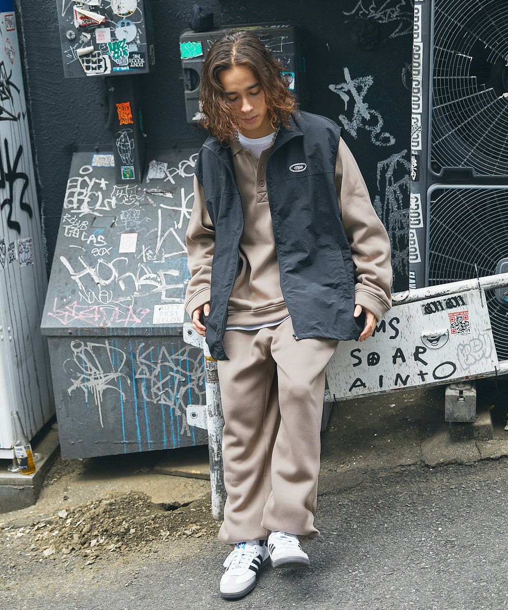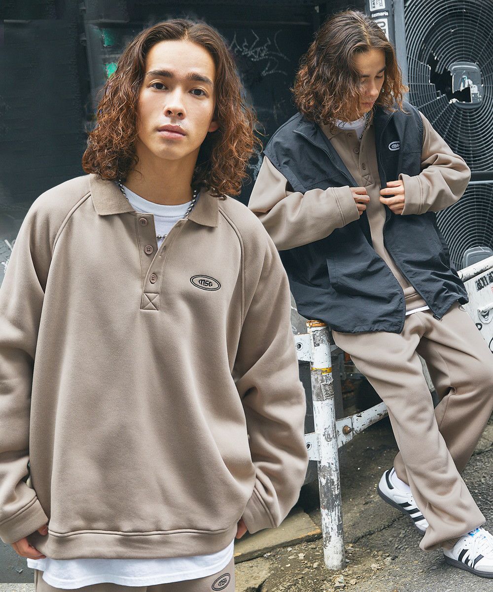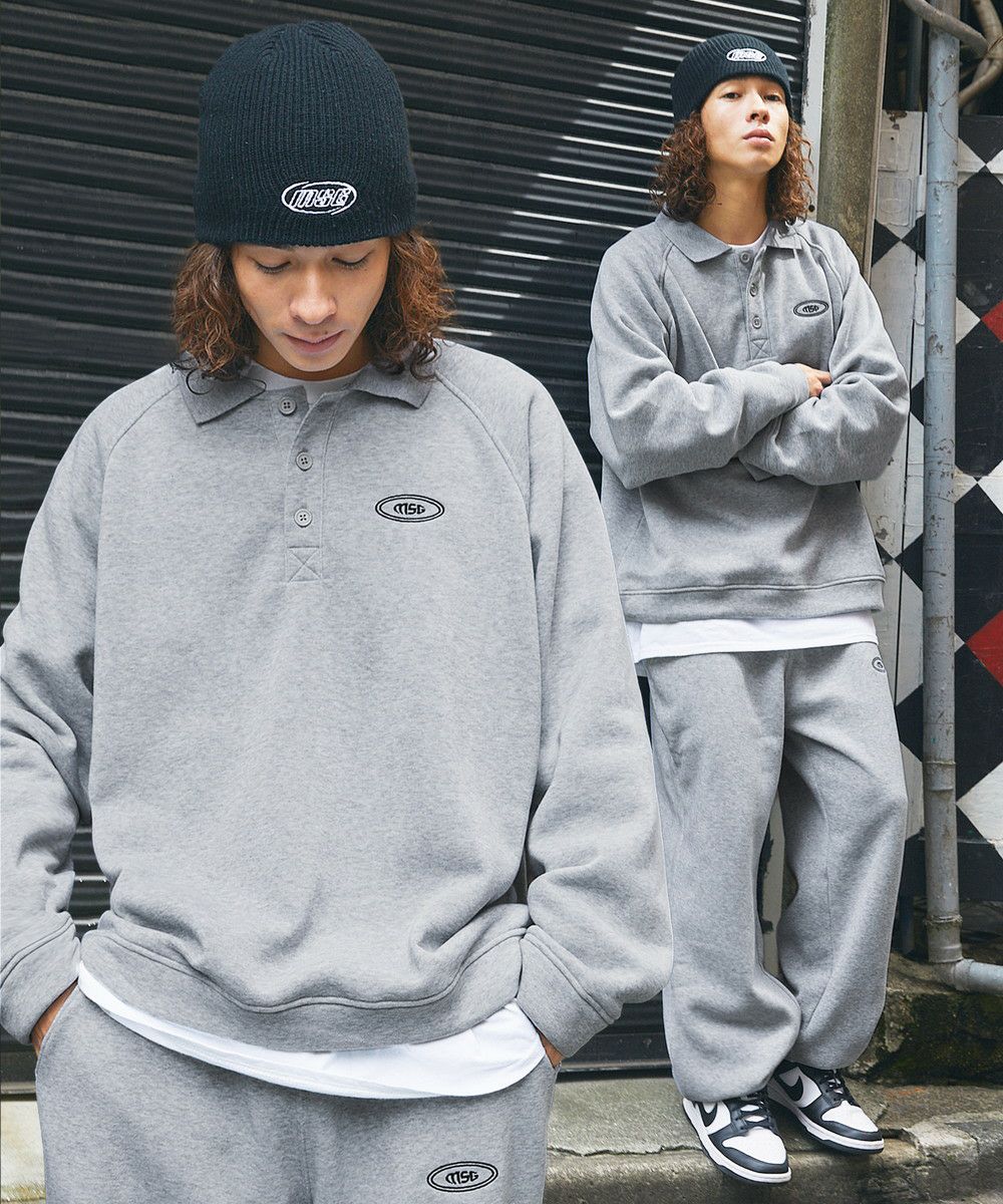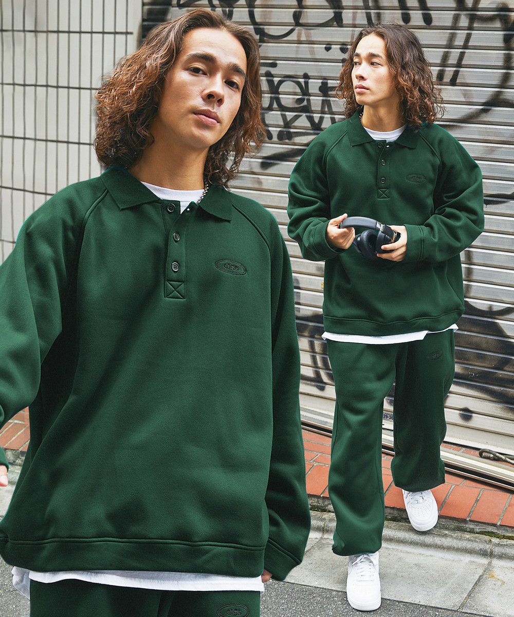 【 スウェット セットアップ 】ロゴ刺繍襟付きスウェット+イージスウェットパンツ