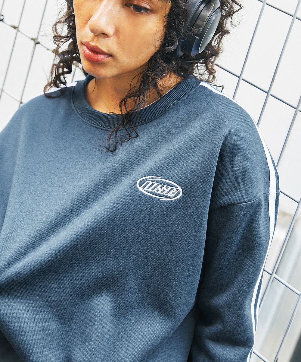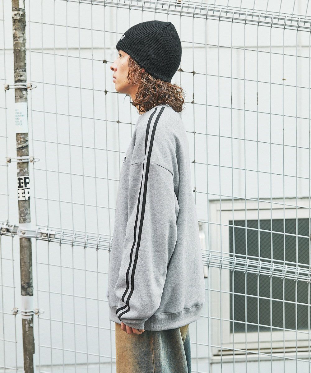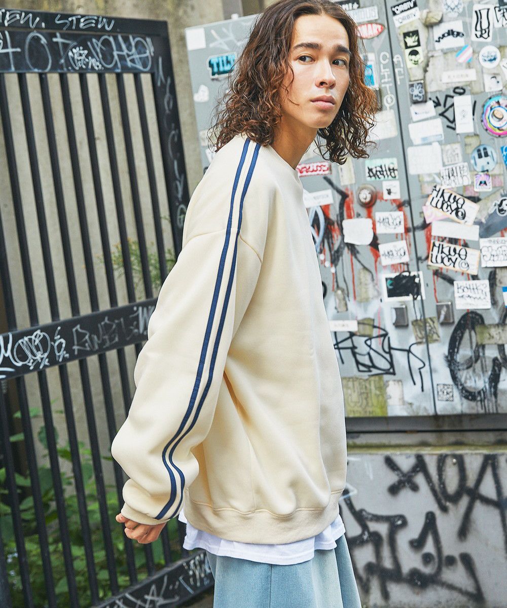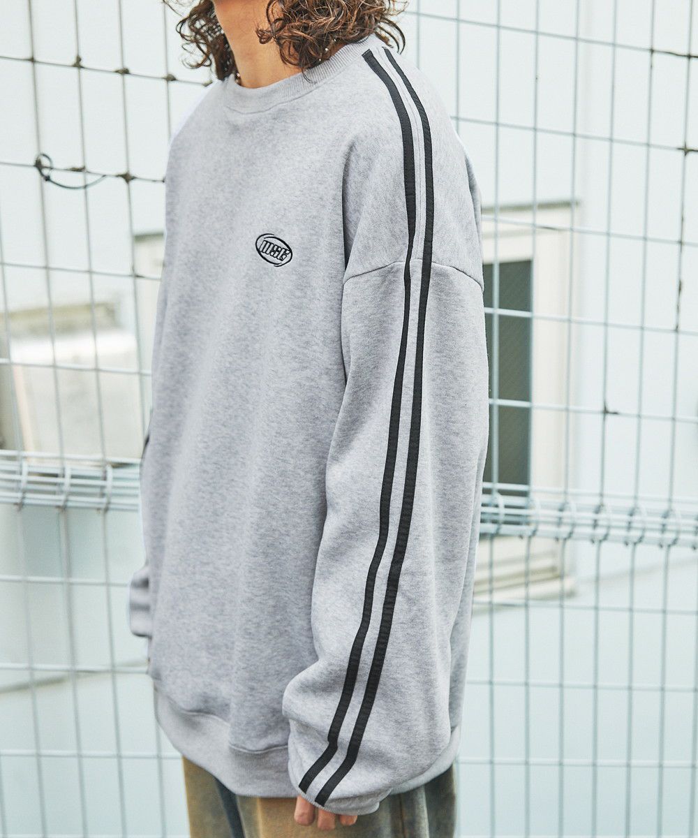 オーバーサイズ袖ラインワンポイント刺繍スウェット