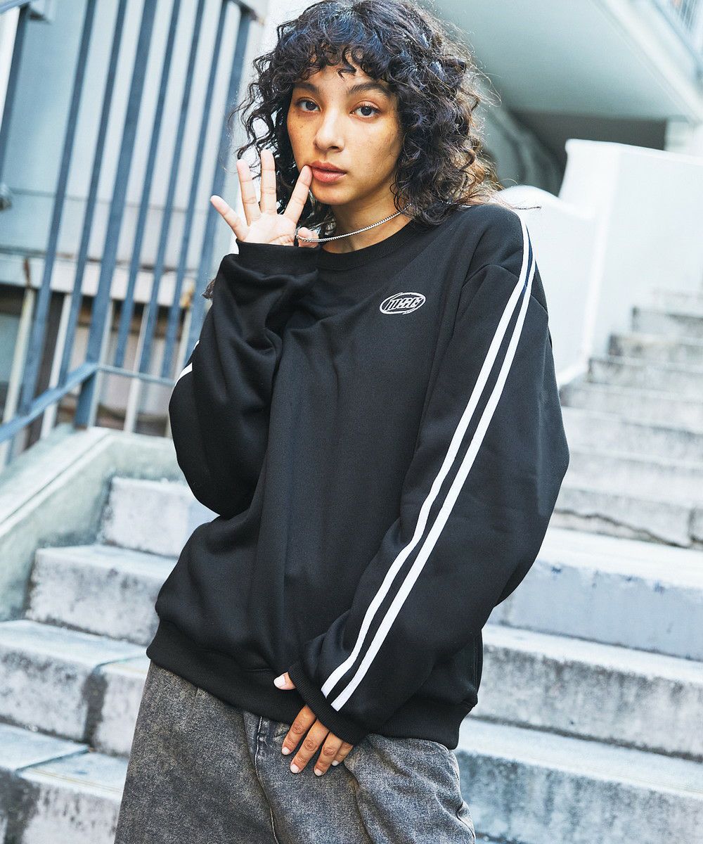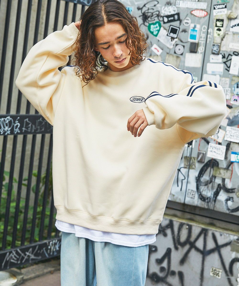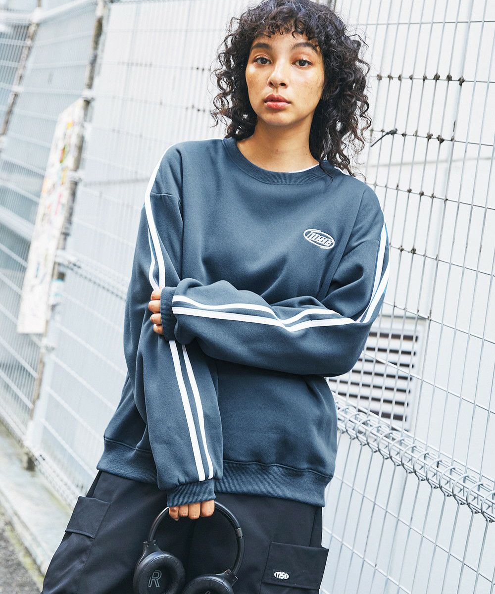 オーバーサイズ袖ラインワンポイント刺繍スウェット