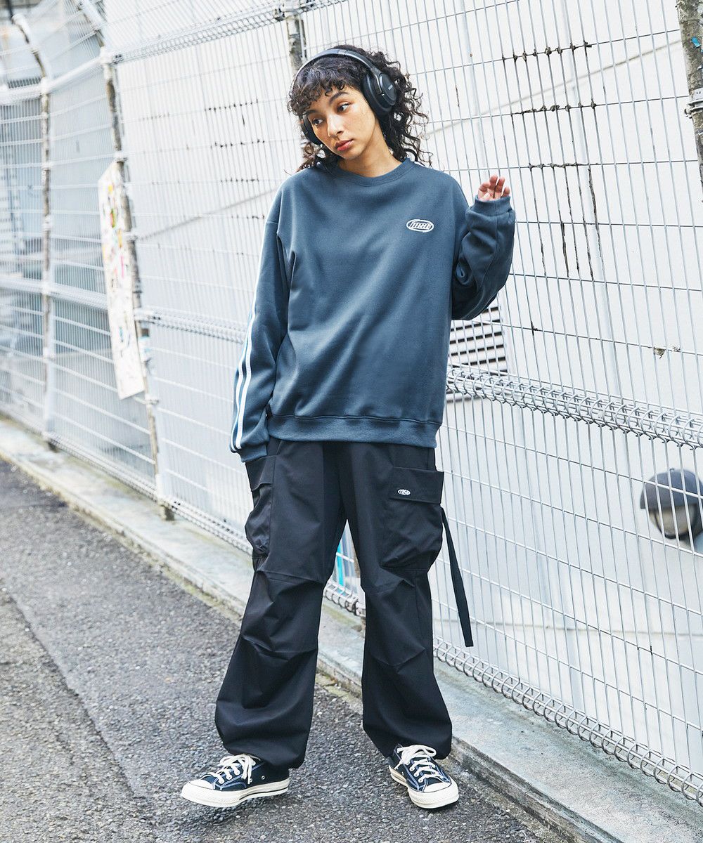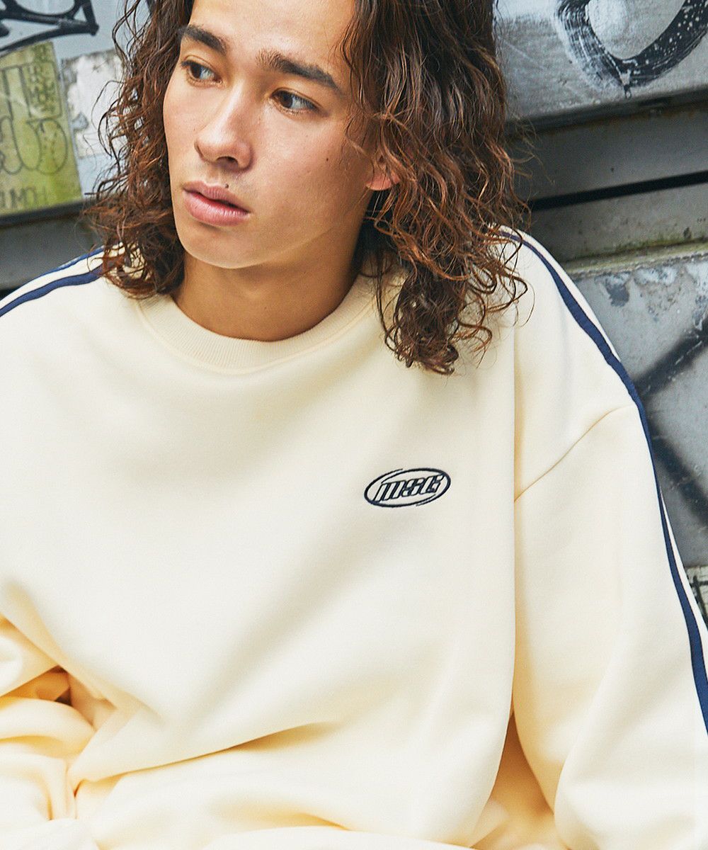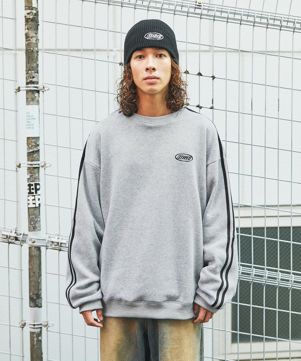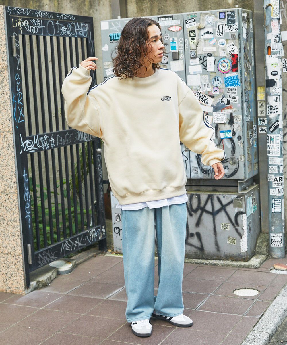 オーバーサイズ袖ラインワンポイント刺繍スウェット