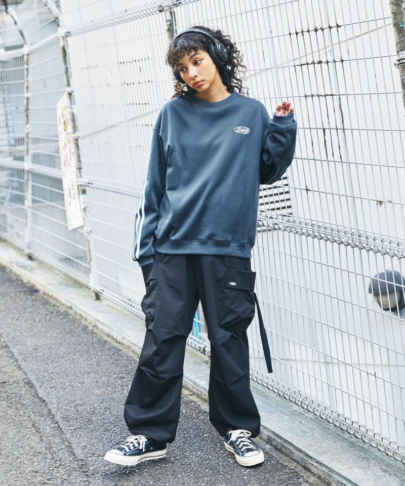 3. オーバーサイズ袖ラインワンポイント刺繍スウェット