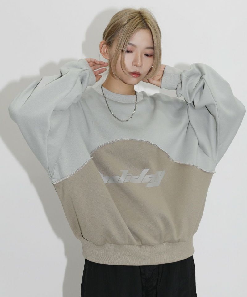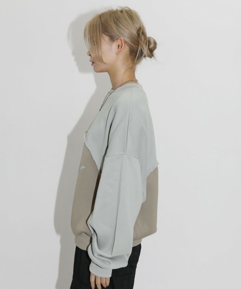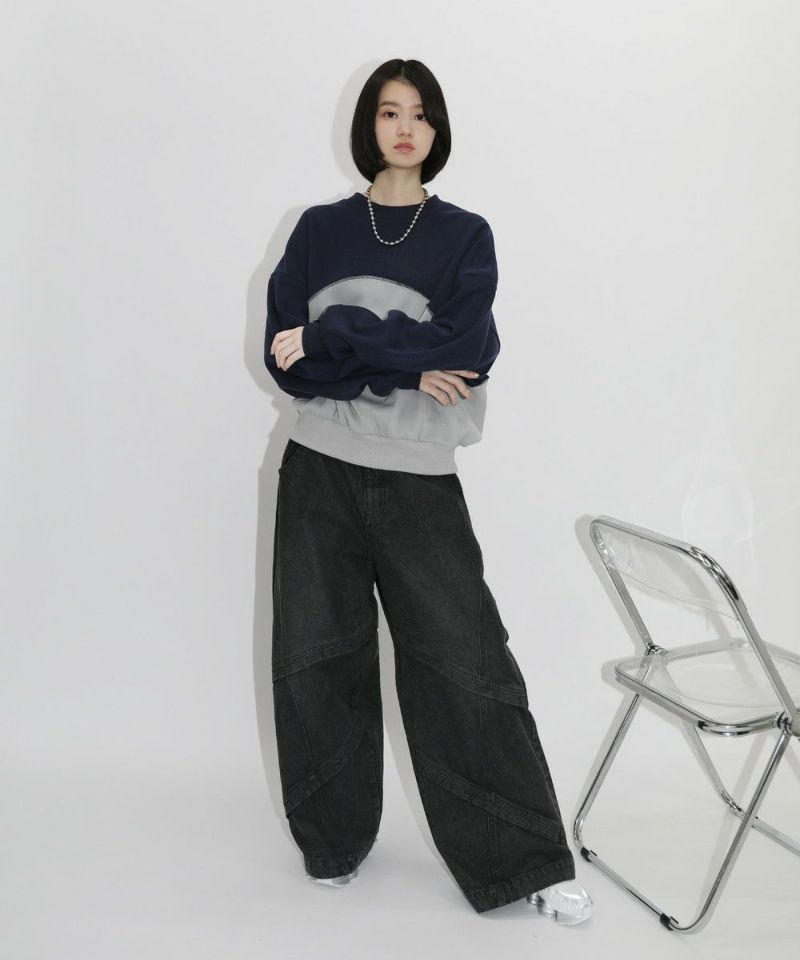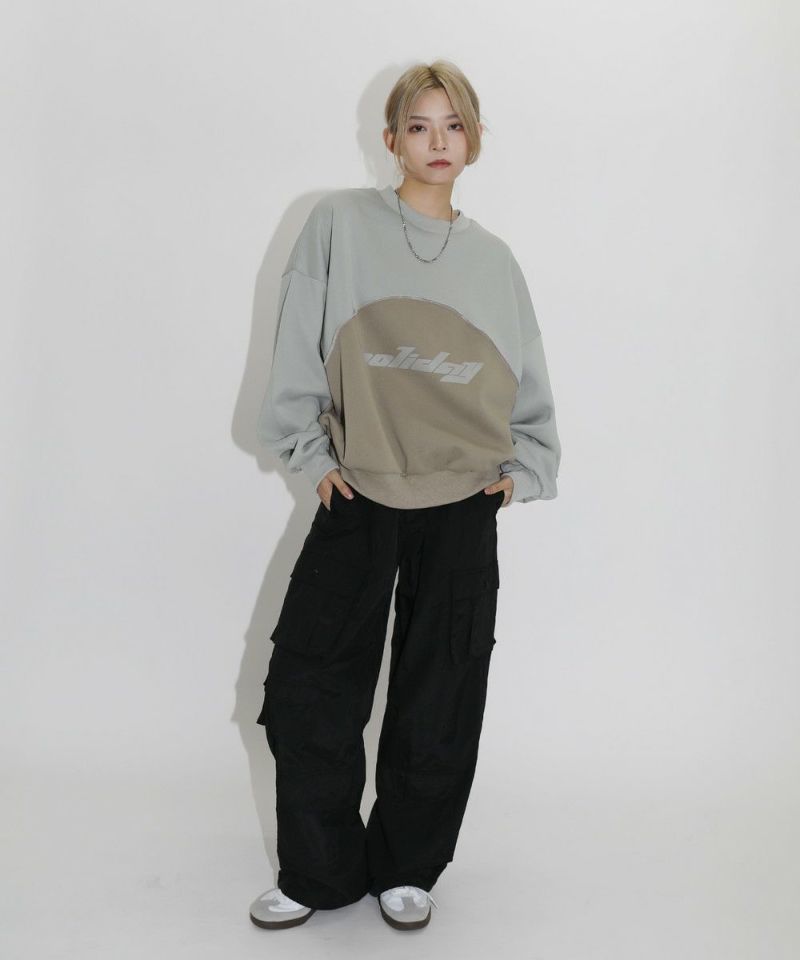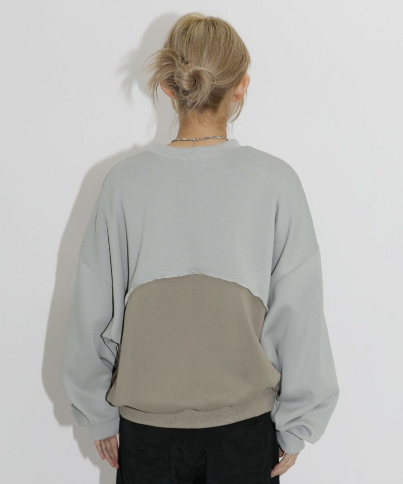オーバーサイズパネル切替クルーネックプルオーバースウェット