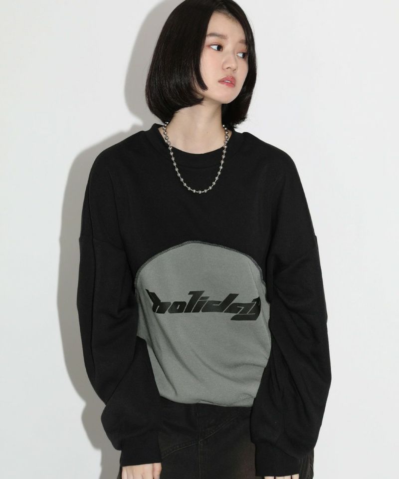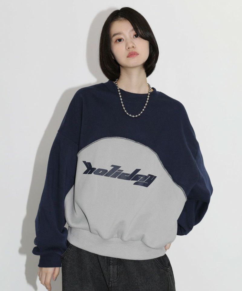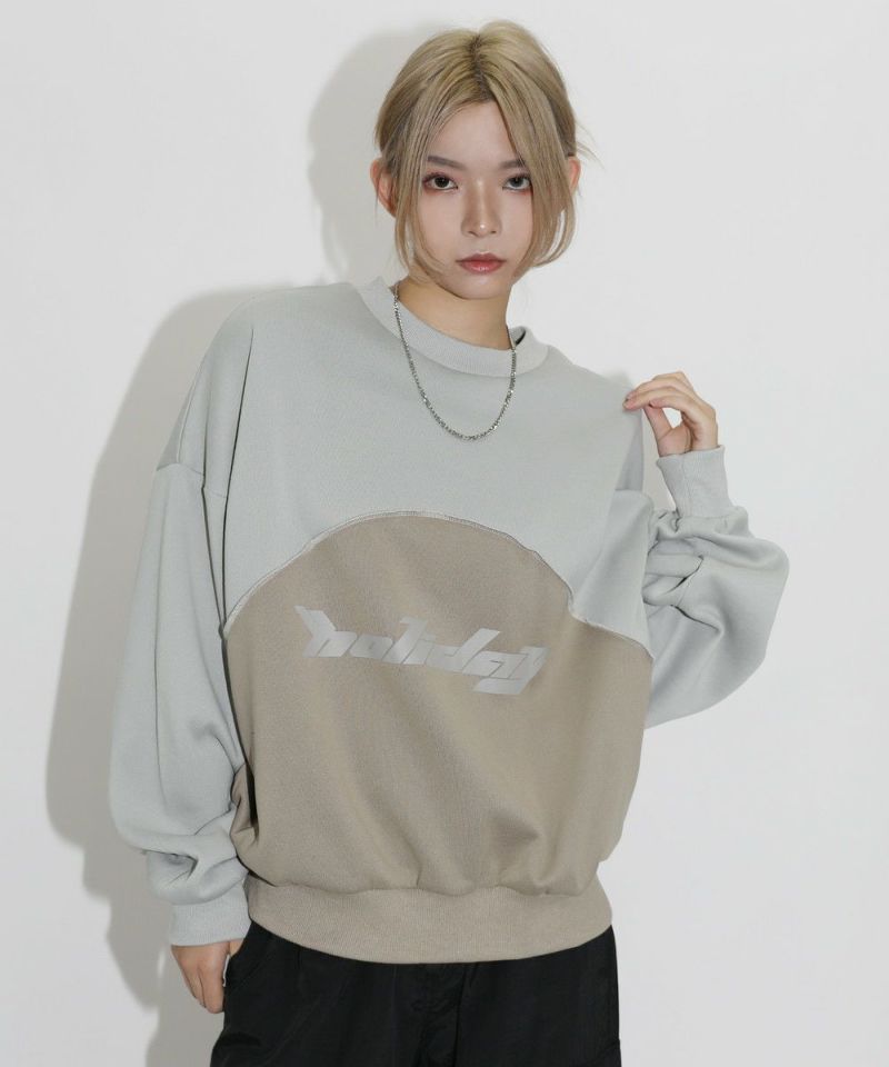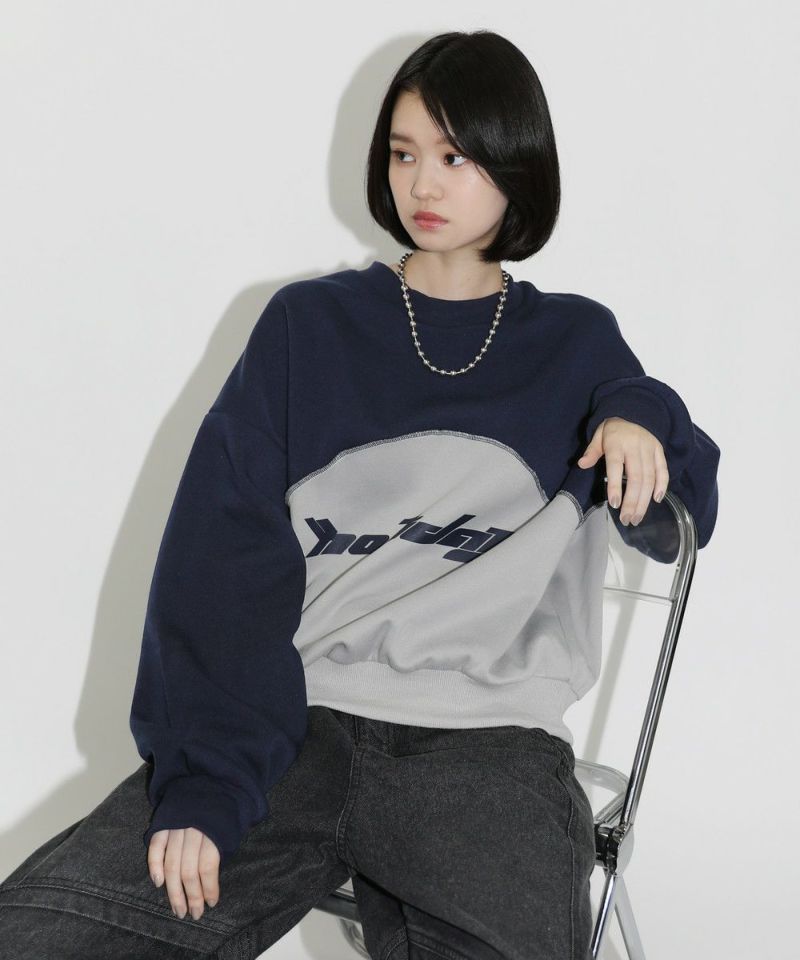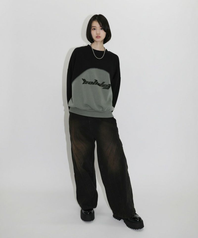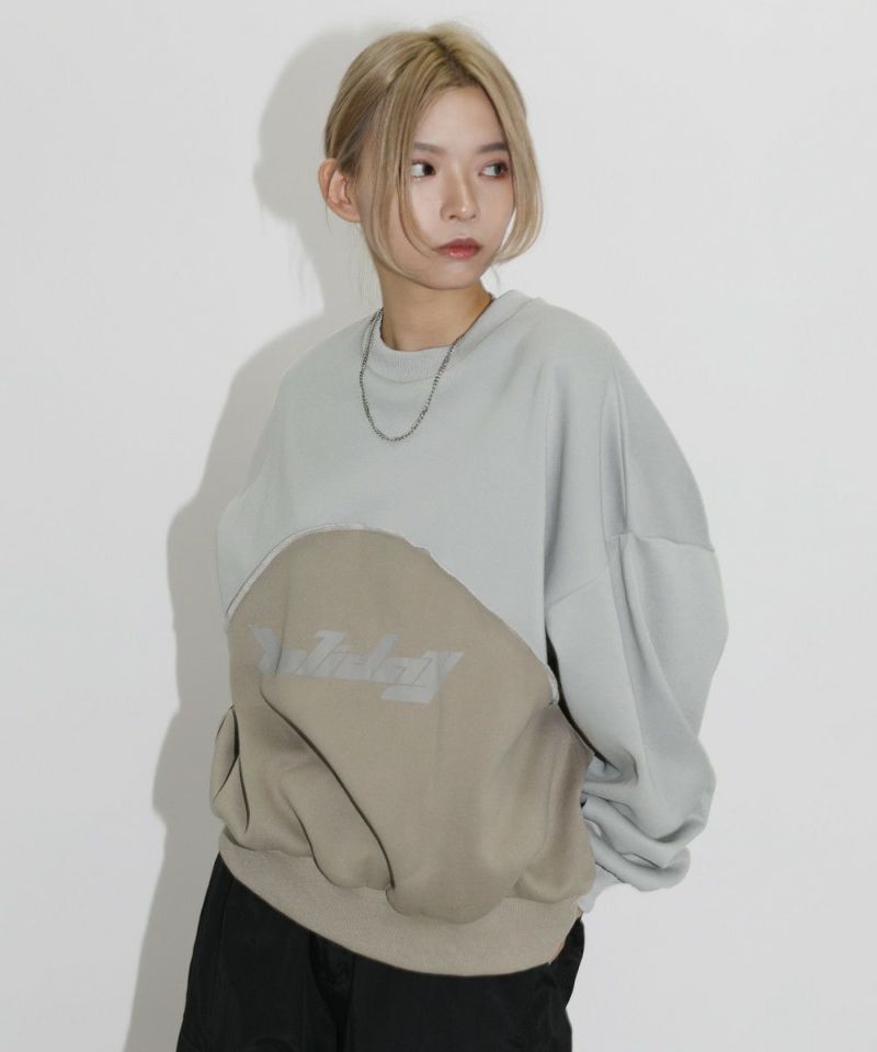 オーバーサイズパネル切替クルーネックプルオーバースウェット