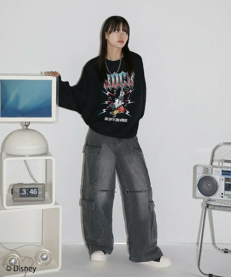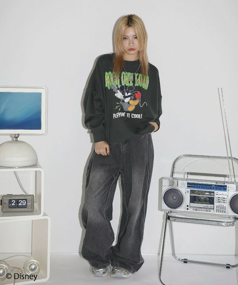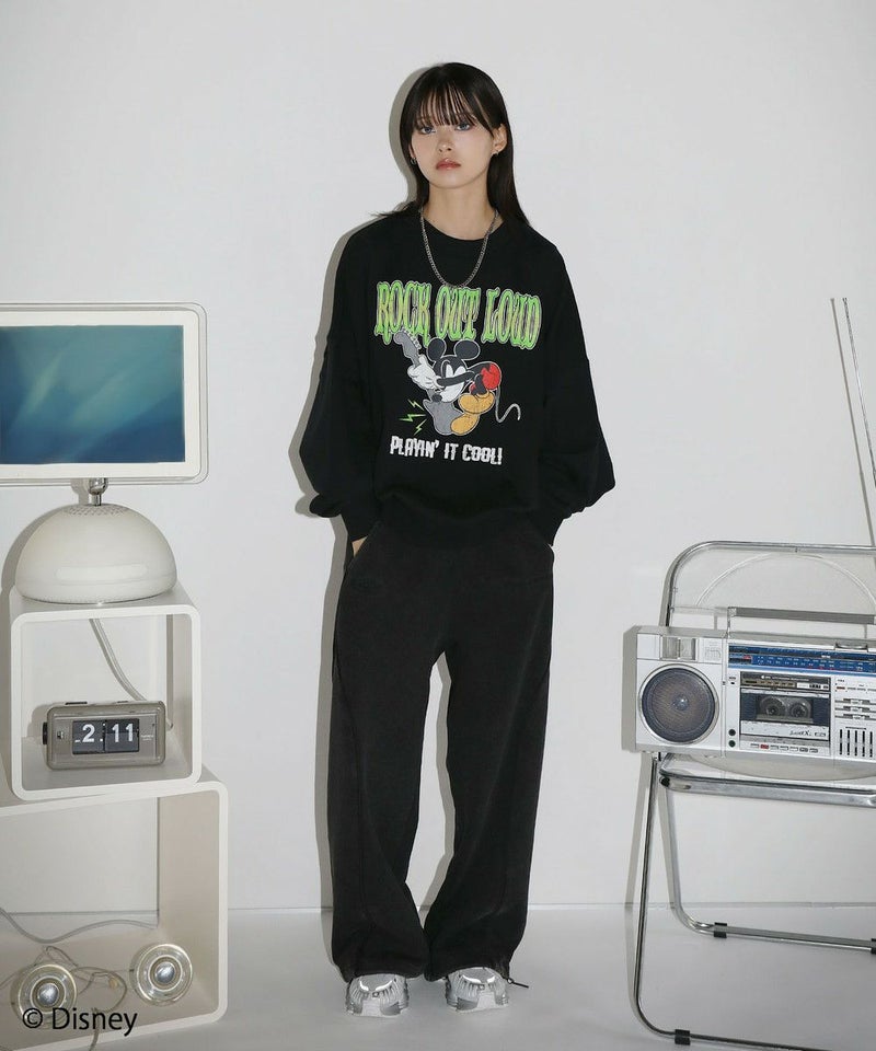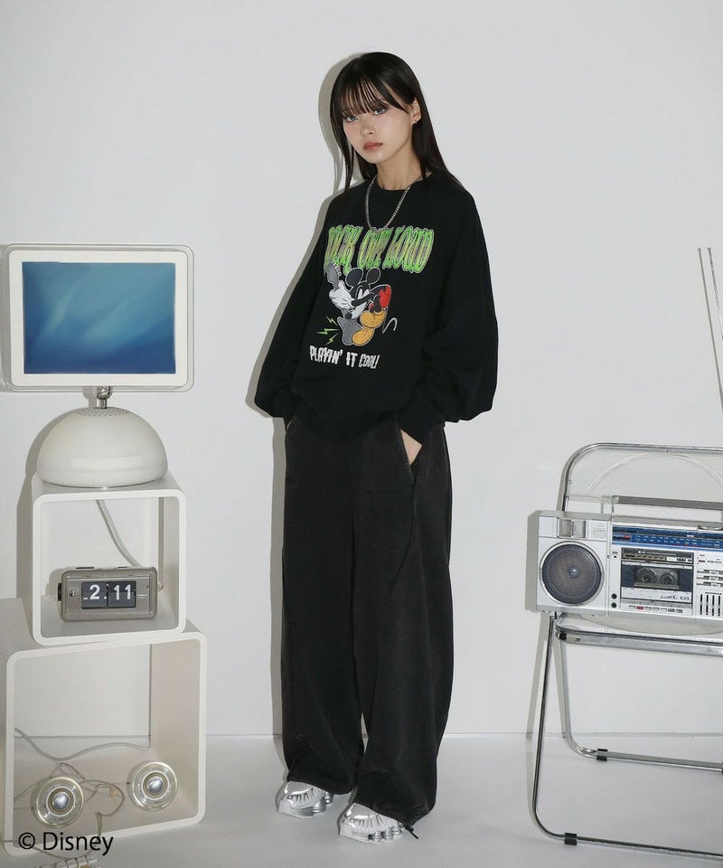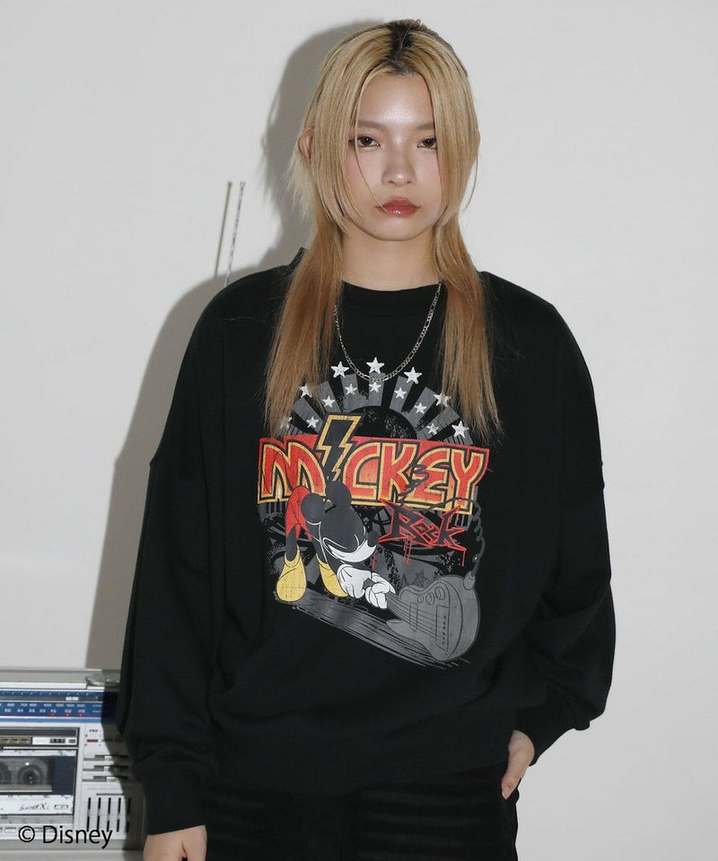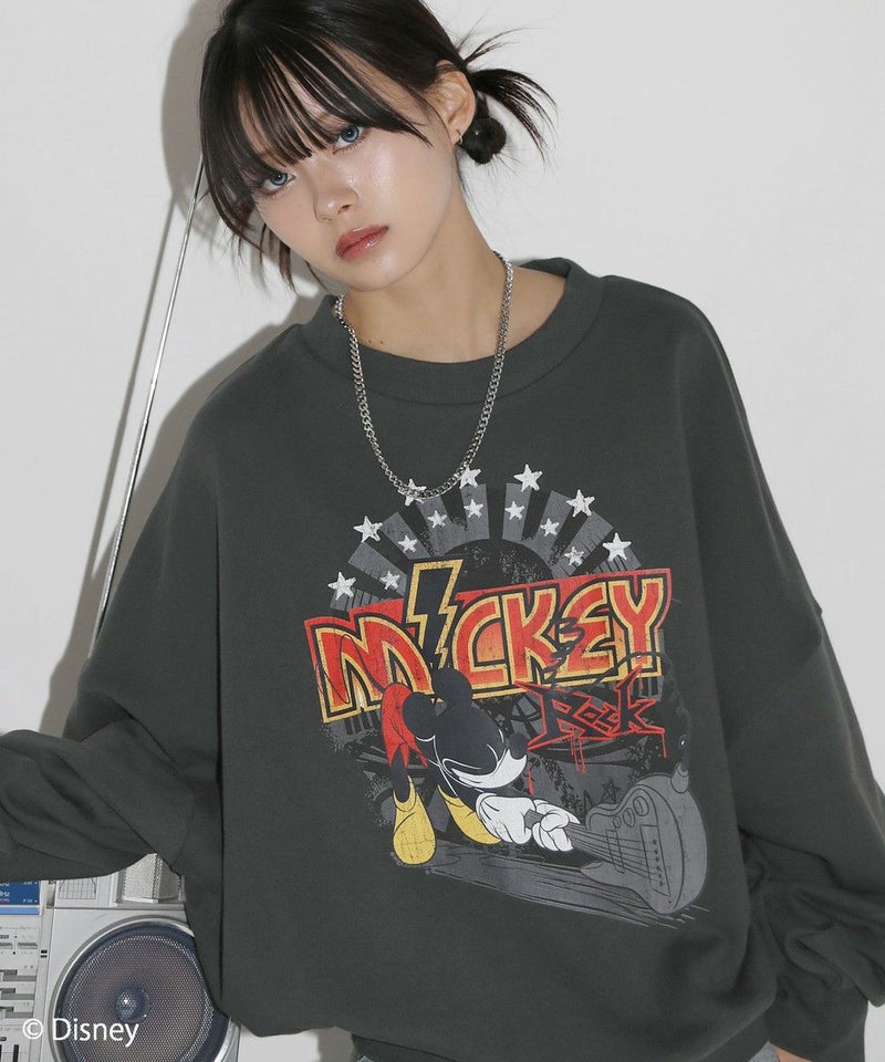 定番のオーバーサイズスウェットに、ヴィンテージ感のあるミッキーマウスとROCKの文字をプリントしました。落ち着いたブラックとグレーのベースカラーに、インパクトのあるプリントが目を惹く一着です。リラックスできるサイズ感で街着はもちろんルームウェアとしても活躍します。カラーとプリントデザインの違う6種類の中からお気に入りの一着を選ぶのも楽しめ、ペアルックやお揃いコーデにもオススメ。ゆったりとしたシルエットで、メンズ・レディース問わず着ていただけます。