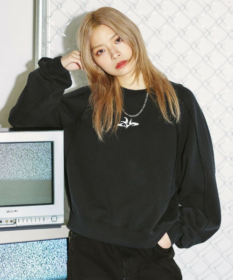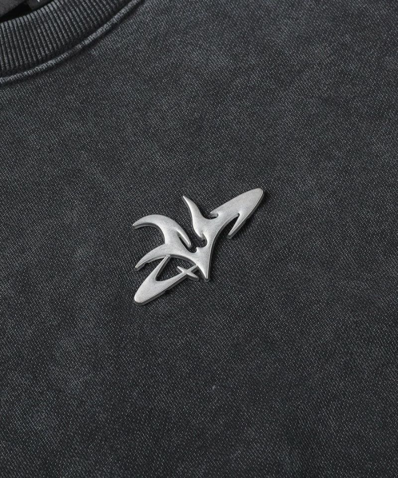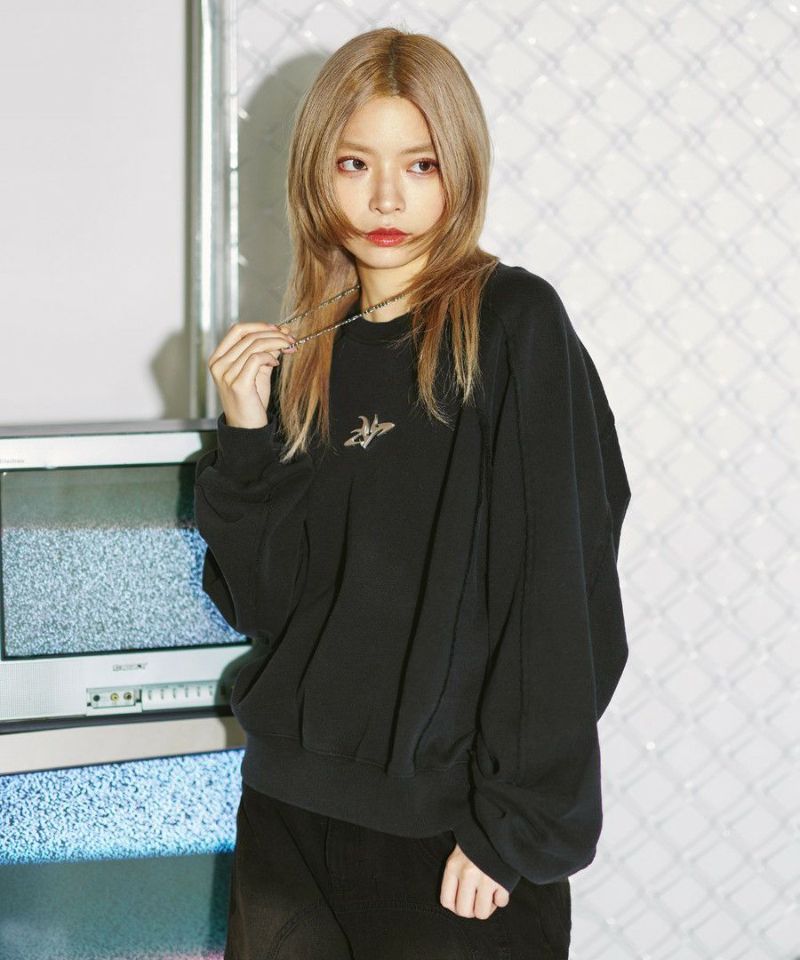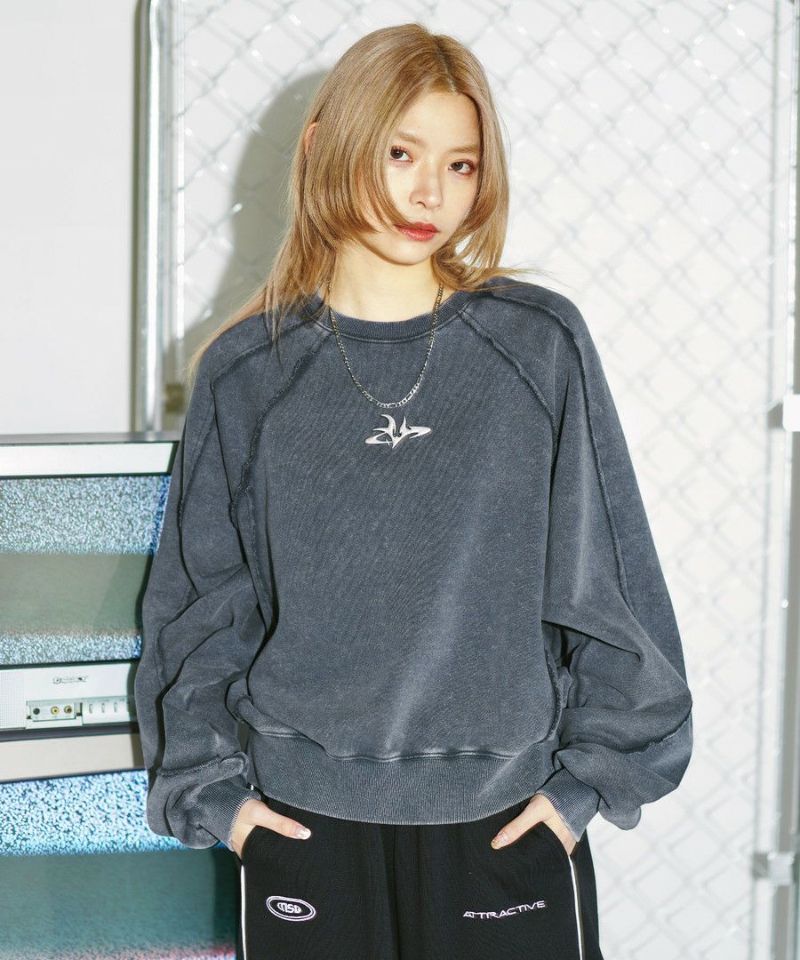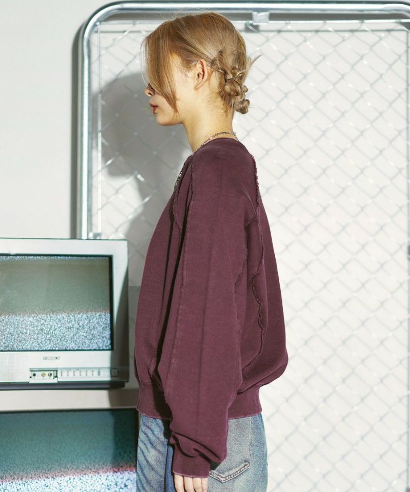 オーバーダイ/ウォッシュ加工オーバーサイズウェーブ切替ワイドストレートバギーデニムパンツ 11.5oz