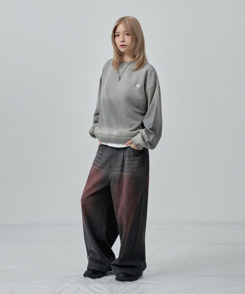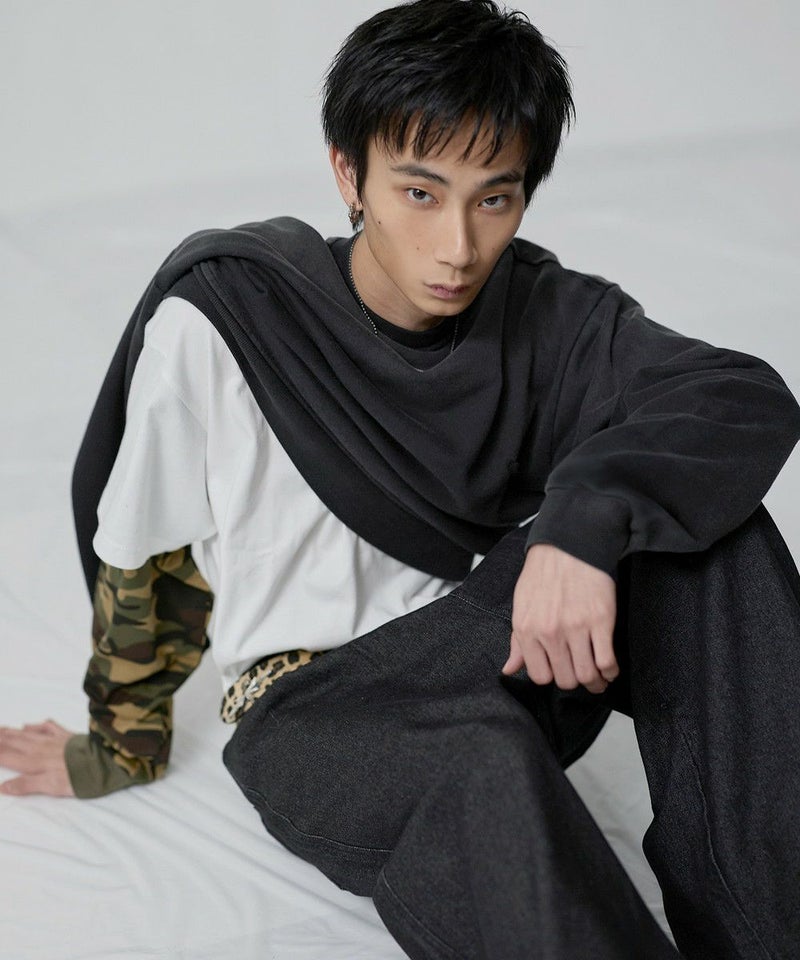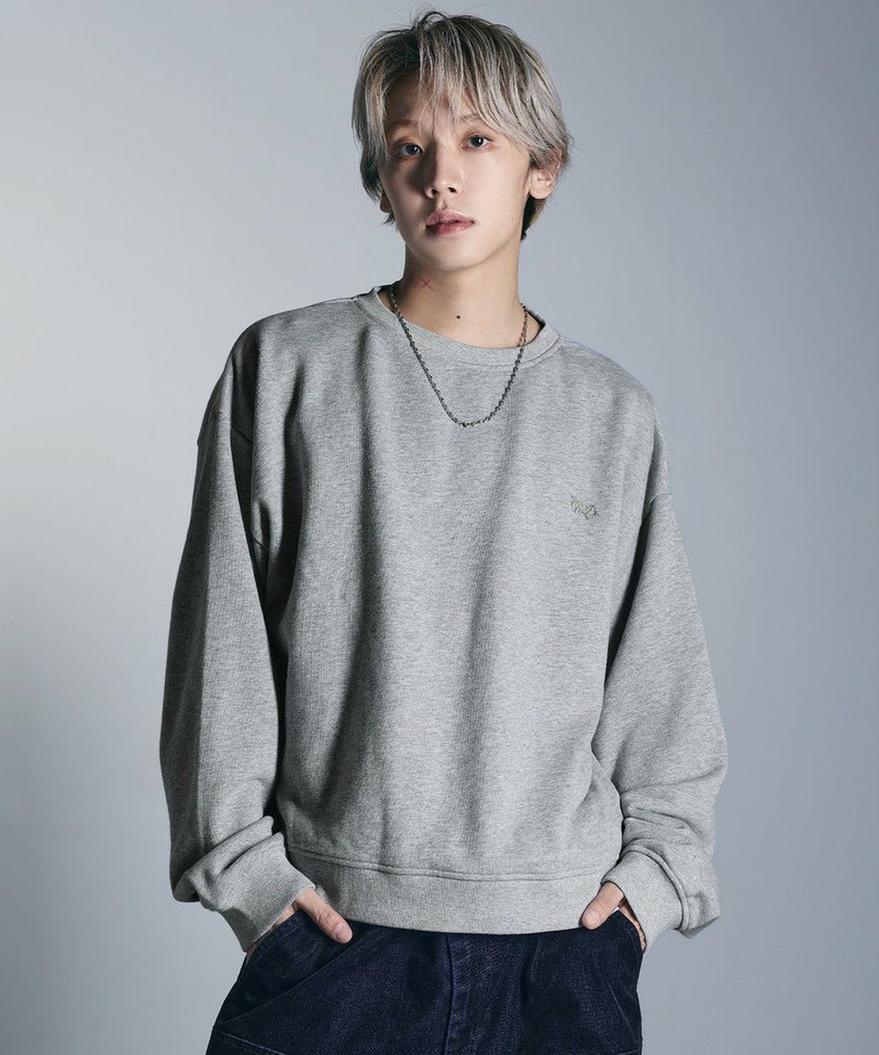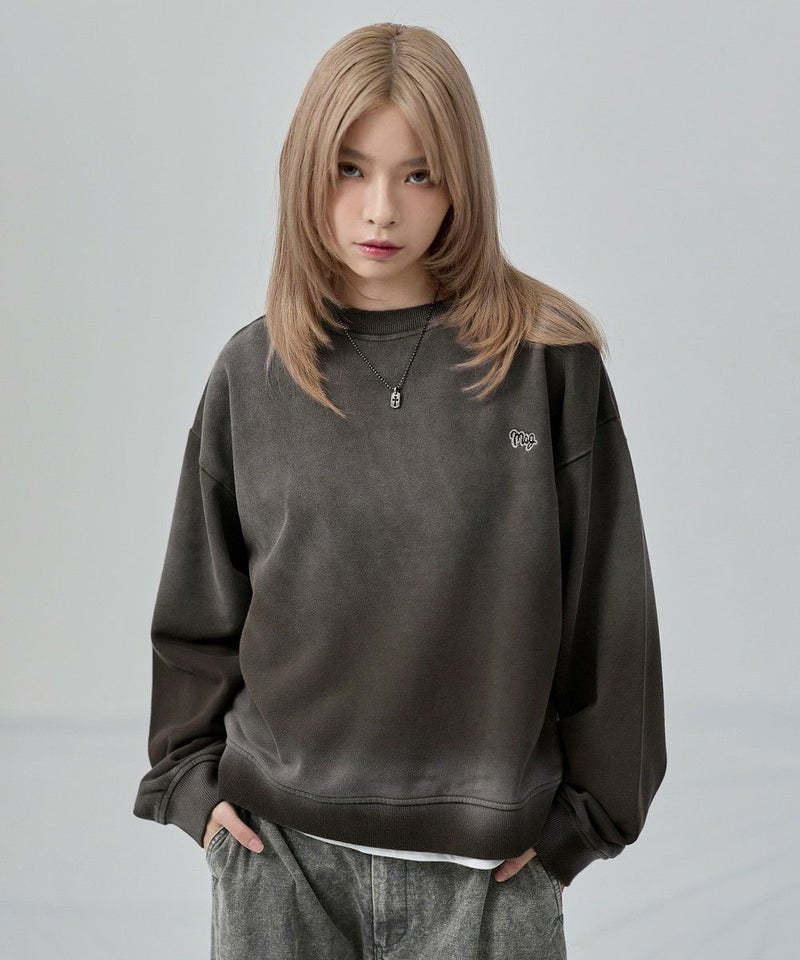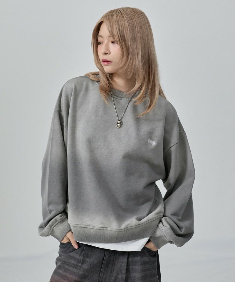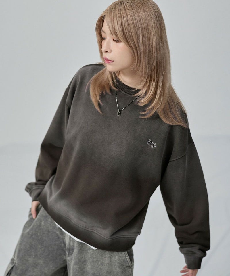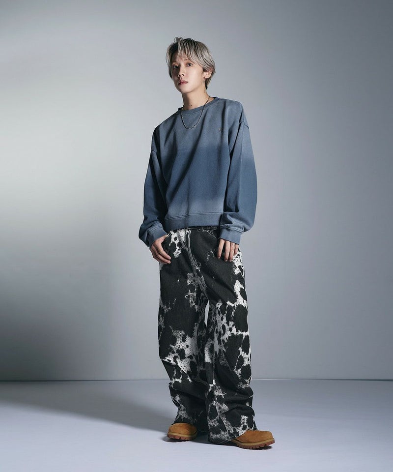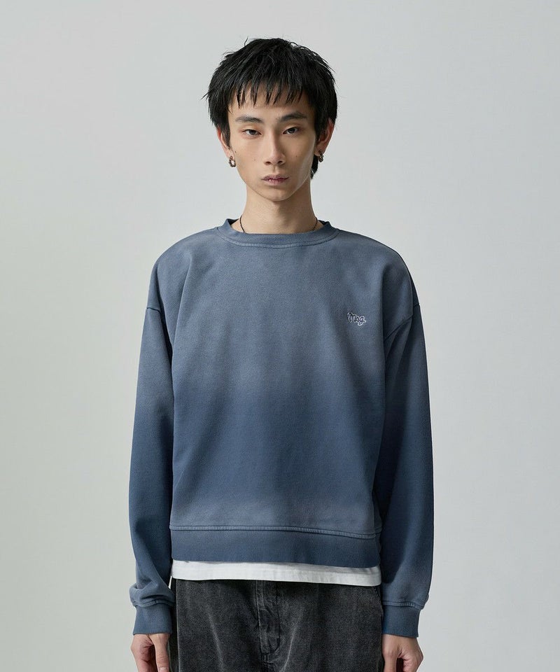 ・日焼けのような加工がこなれた雰囲気のクルーネックスウェット。