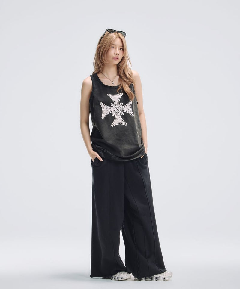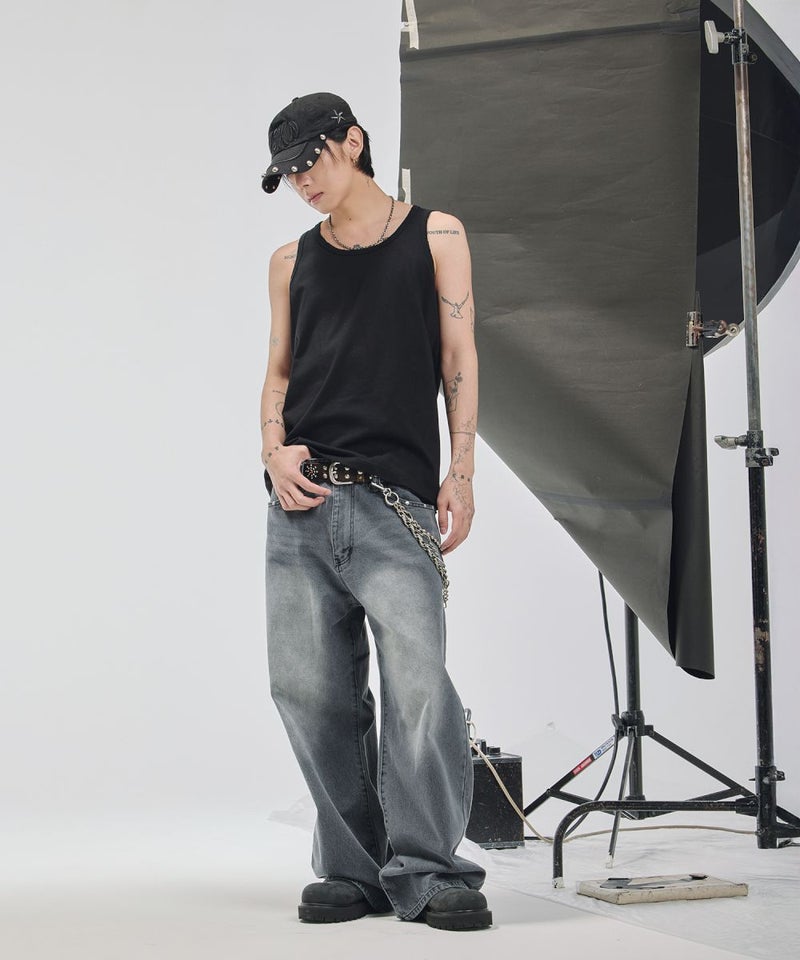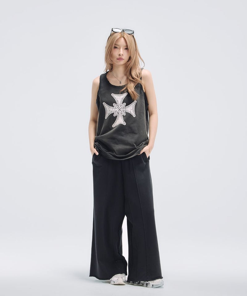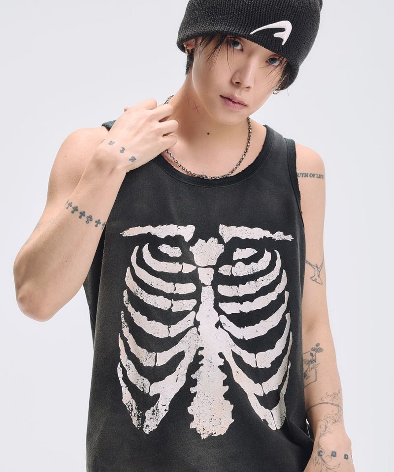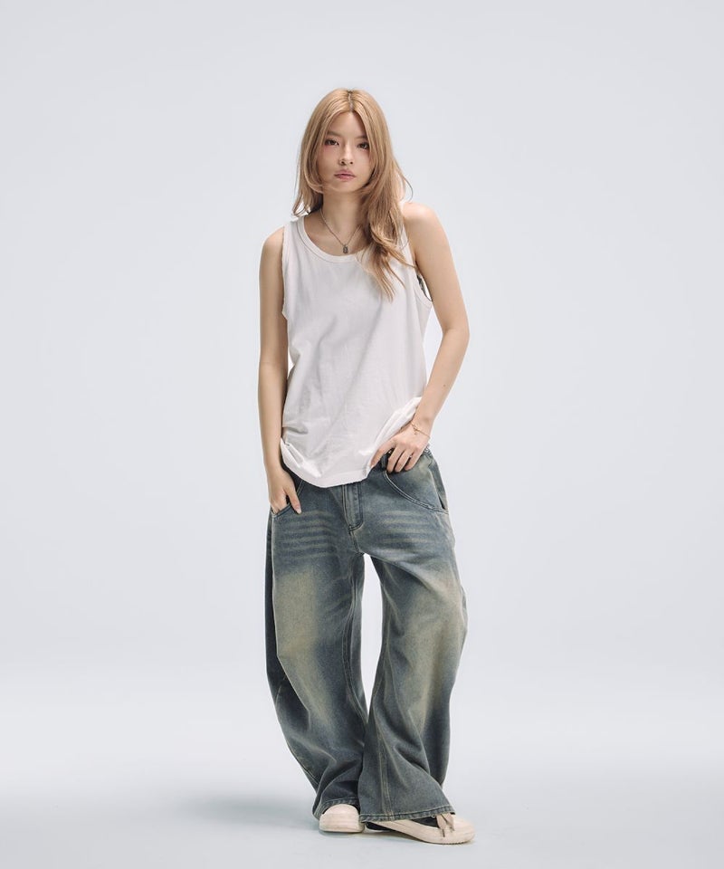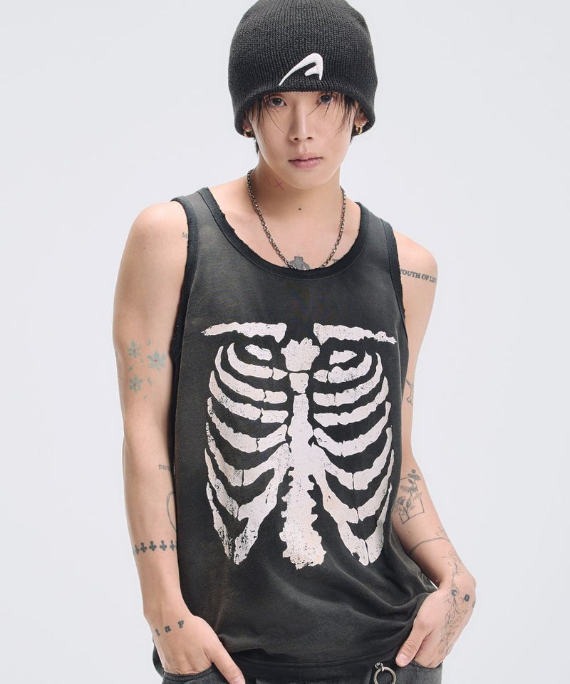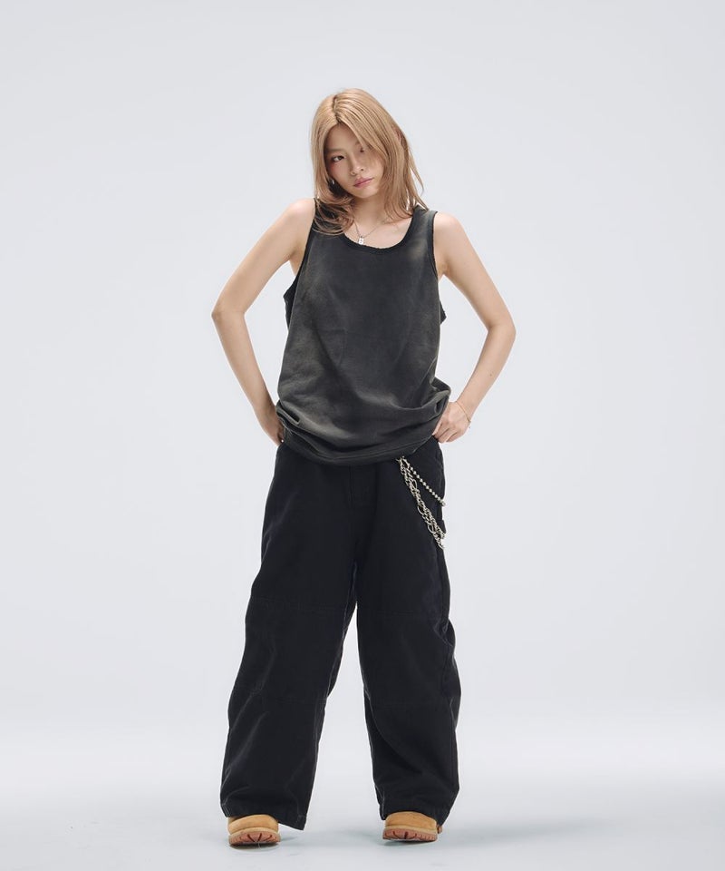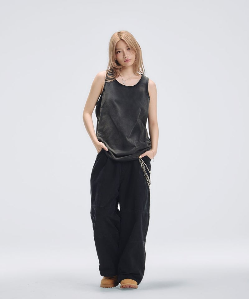 袖口と裾にダメージ加工を施した、こなれ感のあるタンクトップ。さりげないクラッシュディテールが、シンプルながらもスタイリングに抜け感をプラスしてくれる一枚です。