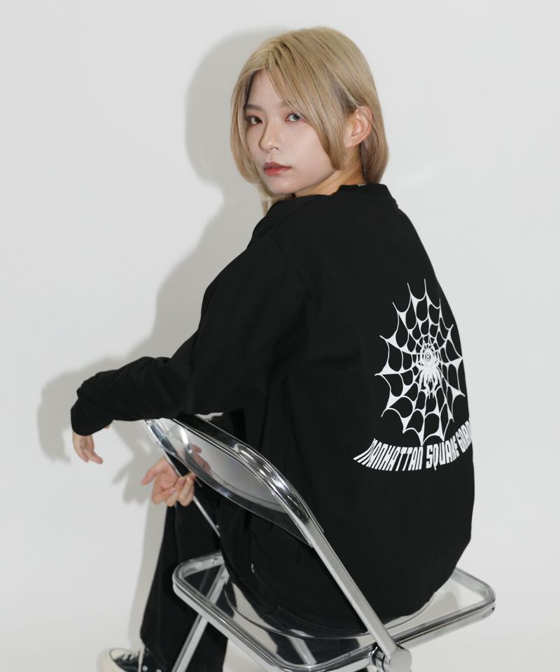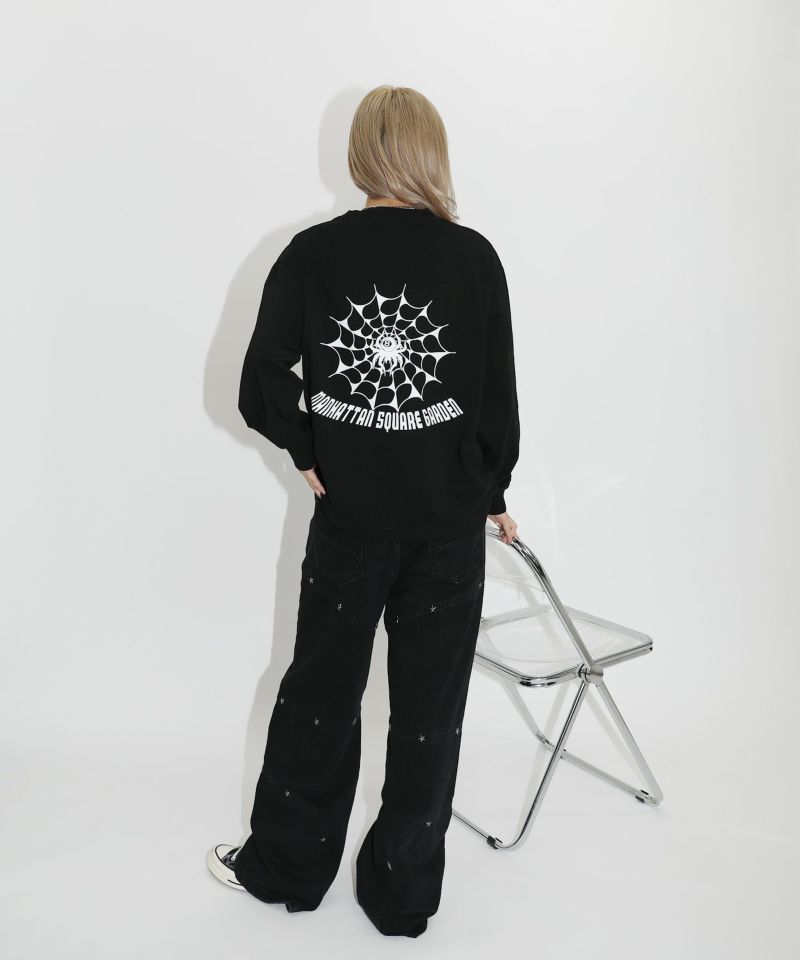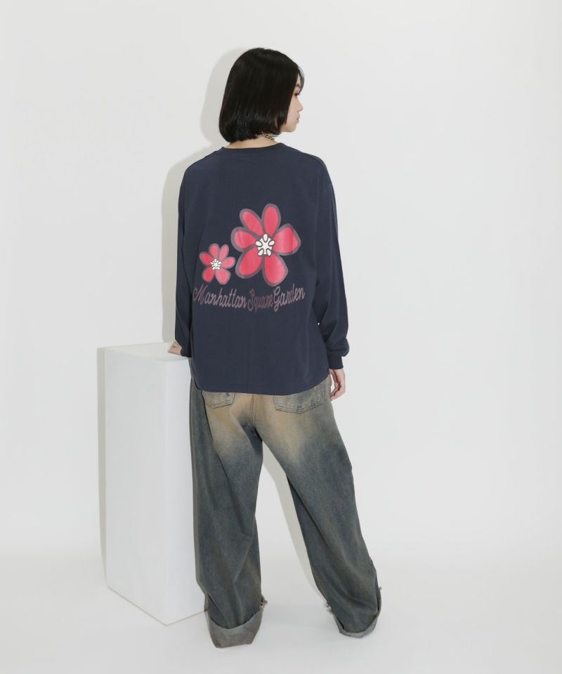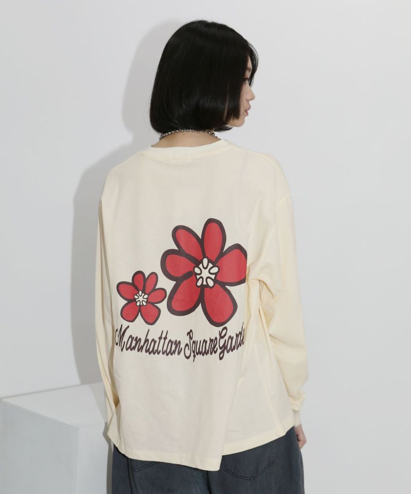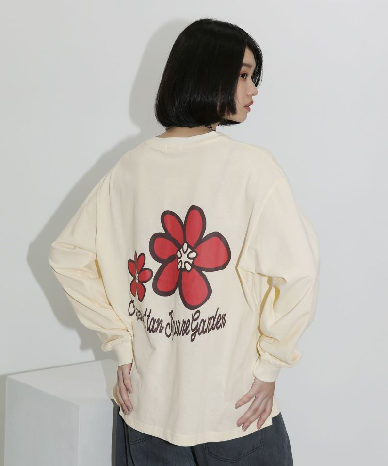 バックスタイルのビッグプリントが目を引く長袖カットソー。 オーバーサイズのシルエットが今季らしい、ラフなアイテムです。 インパクト大のバックプリントには、存在感のあるポップなフラワーとスパイダー2種類のデザインをご用意。 フロントの胸元にはさり気なくバックスタイルと同じプリントを施しています。 ベーシックなブラック、ホワイトに加え、落ち着いたカラーのブラウン、ネイビー、アイボリーの5色展開。 女性にもカジュアルに着こなせるユニセックスアイテムです。