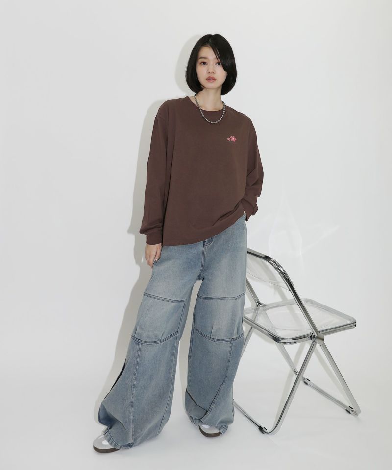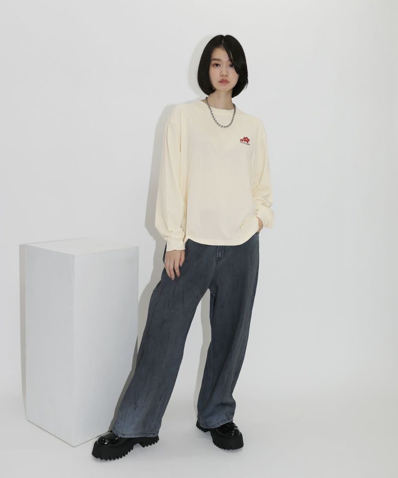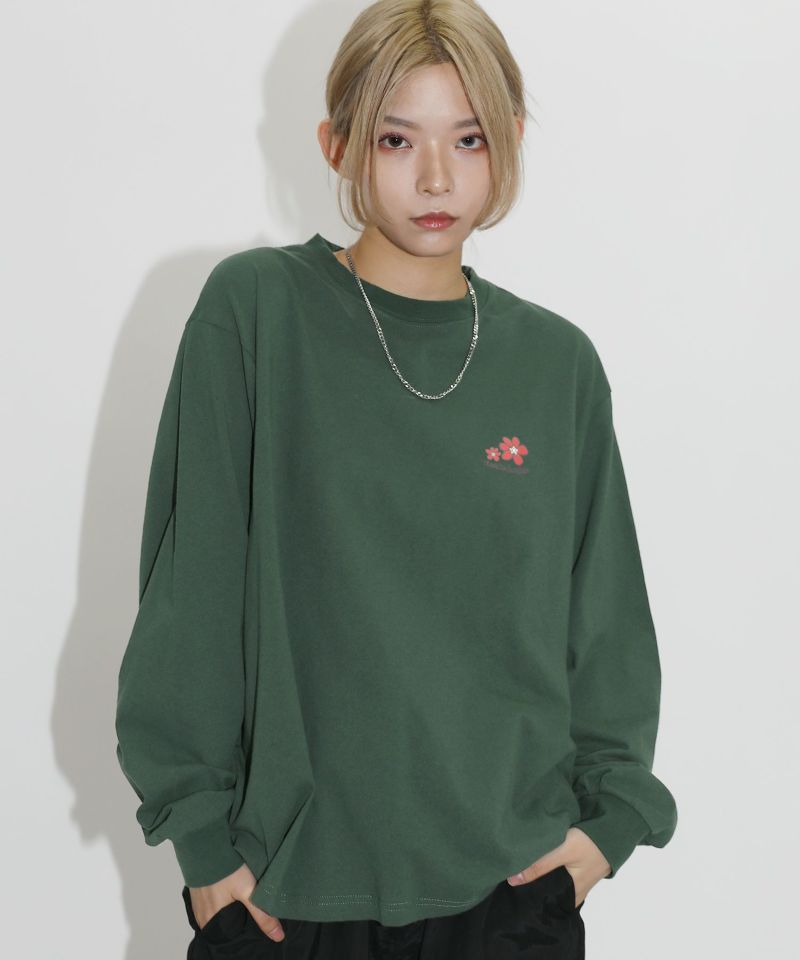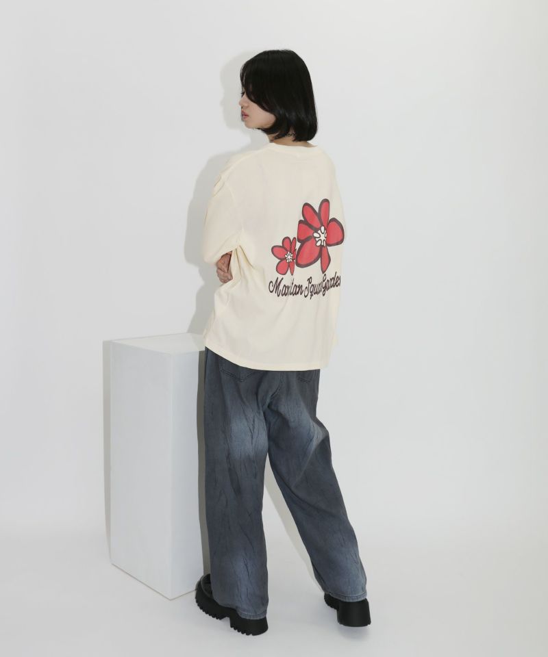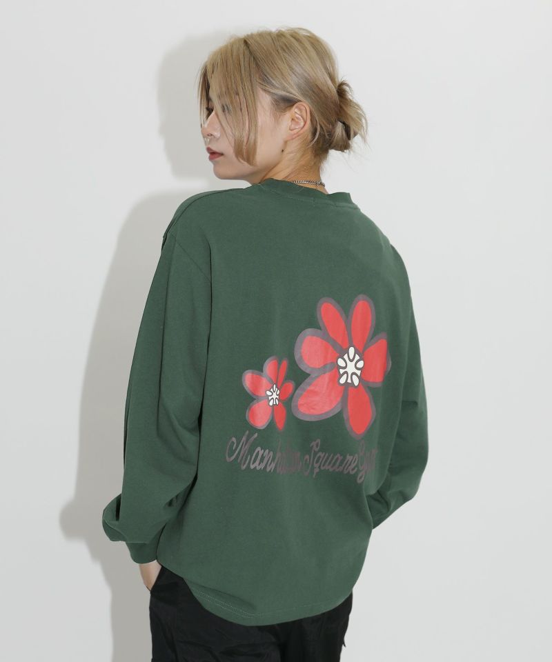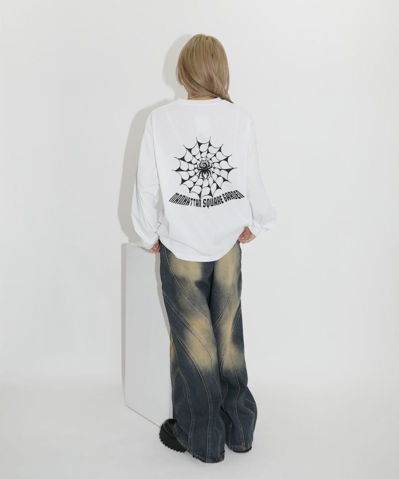 バックスタイルのビッグプリントが目を引く長袖カットソー。 オーバーサイズのシルエットが今季らしい、ラフなアイテムです。 インパクト大のバックプリントには、存在感のあるポップなフラワーとスパイダー2種類のデザインをご用意。 フロントの胸元にはさり気なくバックスタイルと同じプリントを施しています。 ベーシックなブラック、ホワイトに加え、落ち着いたカラーのブラウン、ネイビー、アイボリーの5色展開。 女性にもカジュアルに着こなせるユニセックスアイテムです。
