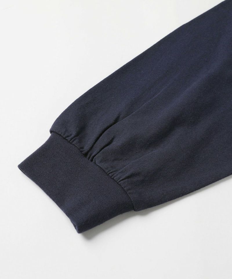通気性が良く、優しい肌触りの綿100%素材を使用。 やや薄手の生地感なので、インにもアウトにも対応できる重ね着スタイルを楽しめます。 リブ部分はポリウレタン由来のストレッチ性で着脱もスムーズです。