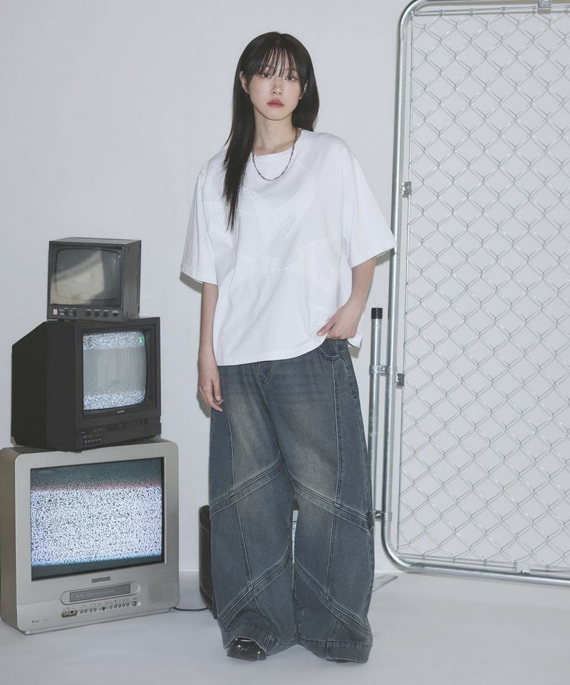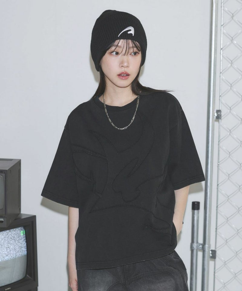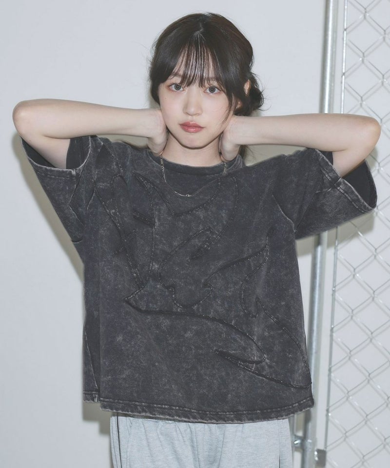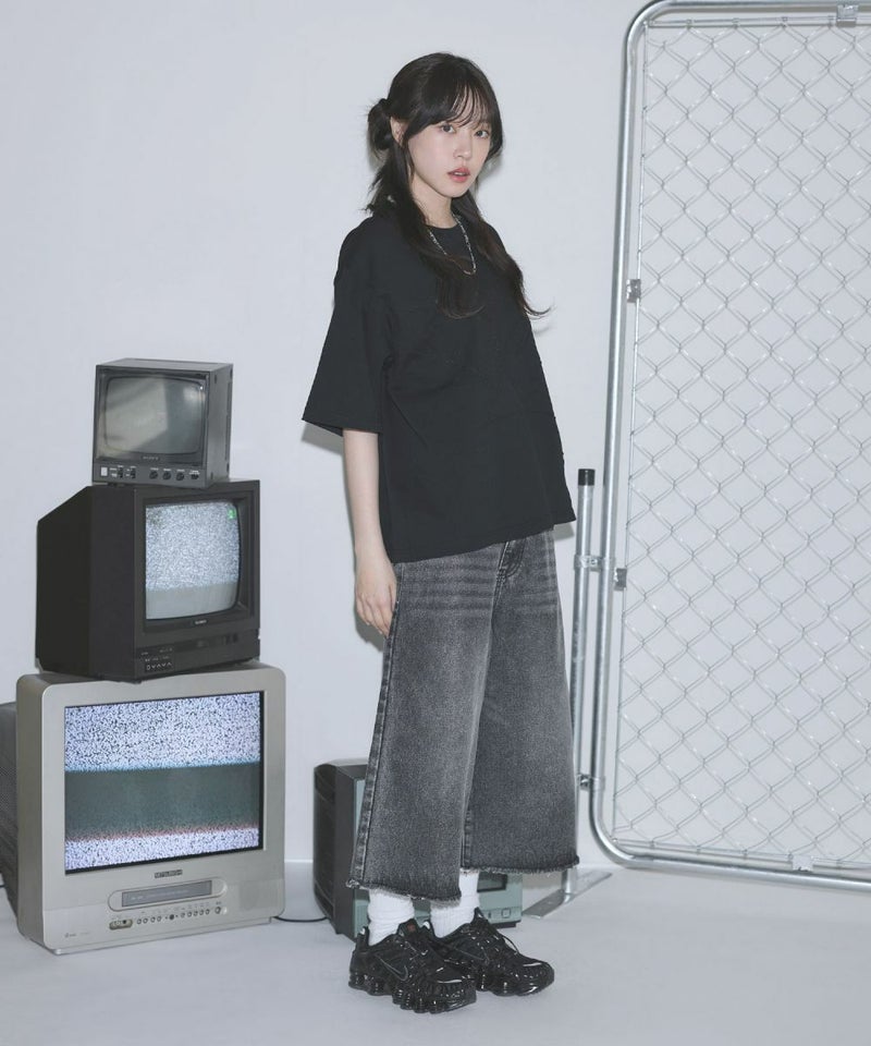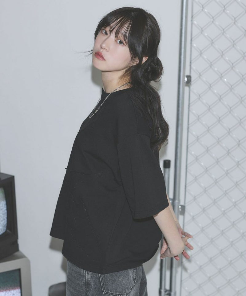 ・やや短めの丈感と、程よくゆとりのあるボックスシルエットが今っぽさを演出します。
