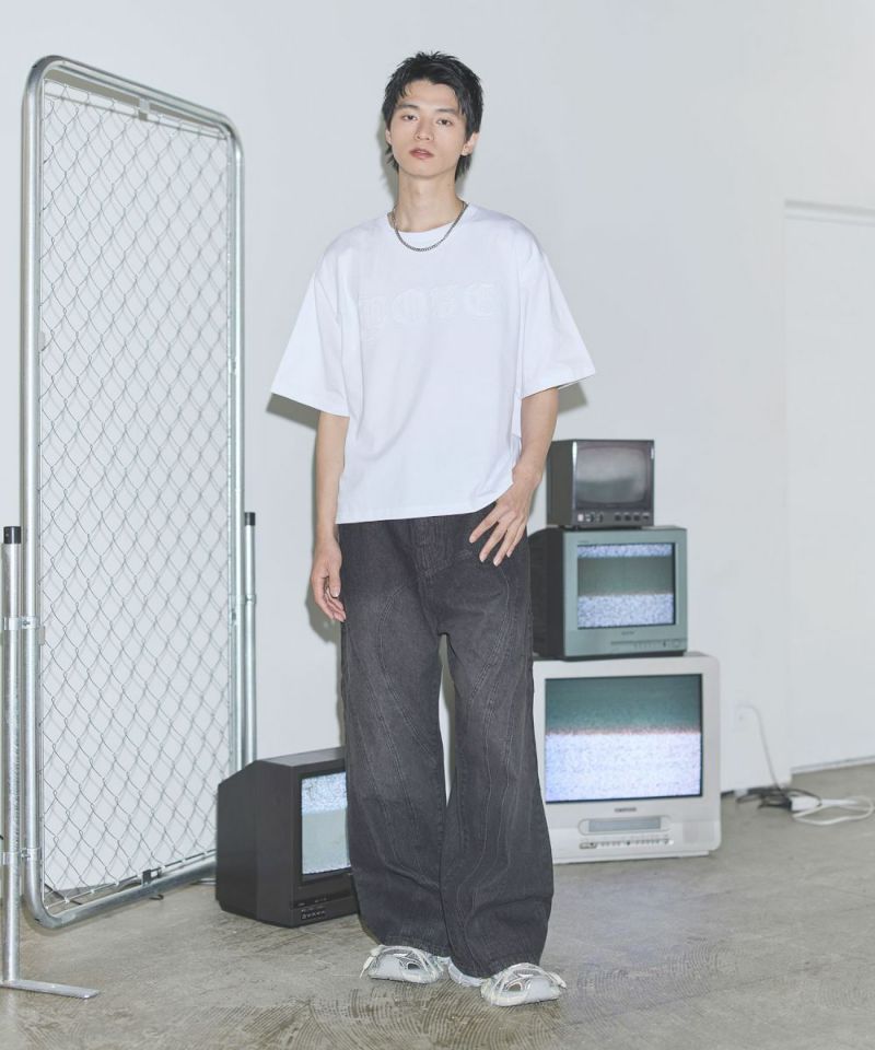・ワイド系のデニムやカーゴパンツ、ハーフパンツなど幅広いボトムスと合わせるのがおすすめ。