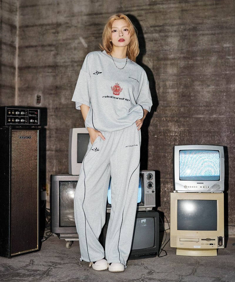 ドローコードパイピングオーバーサイズスウェットパンツ