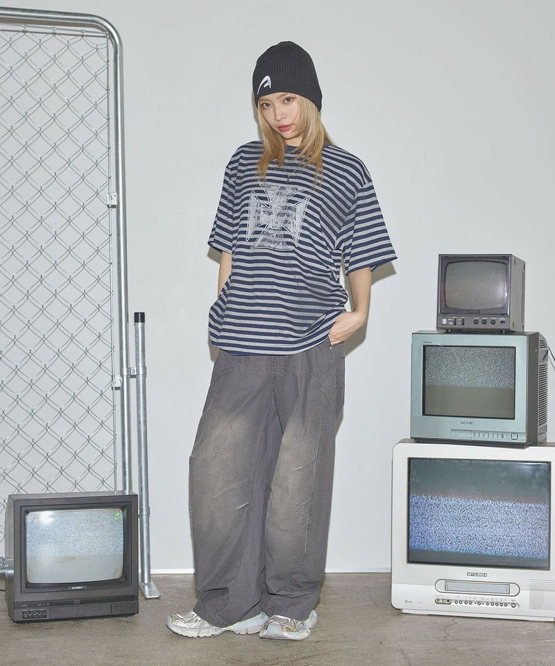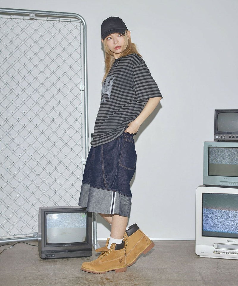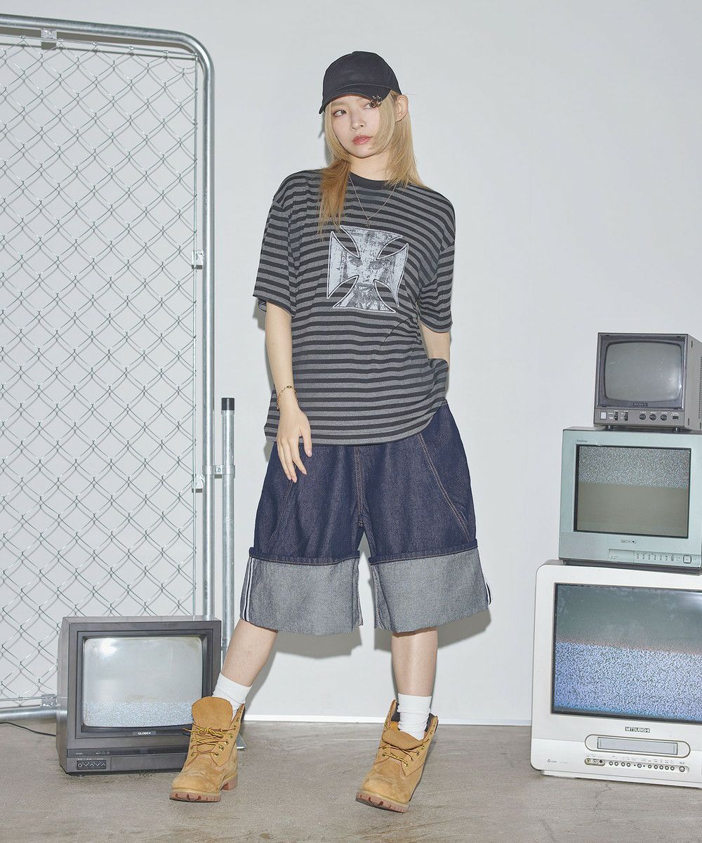 オーバーサイズグラフィックボーダー半袖Tシャツ【UNISEX】
