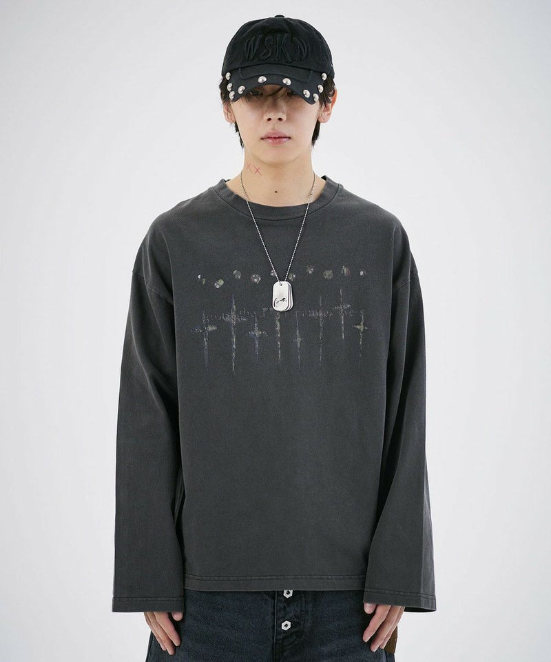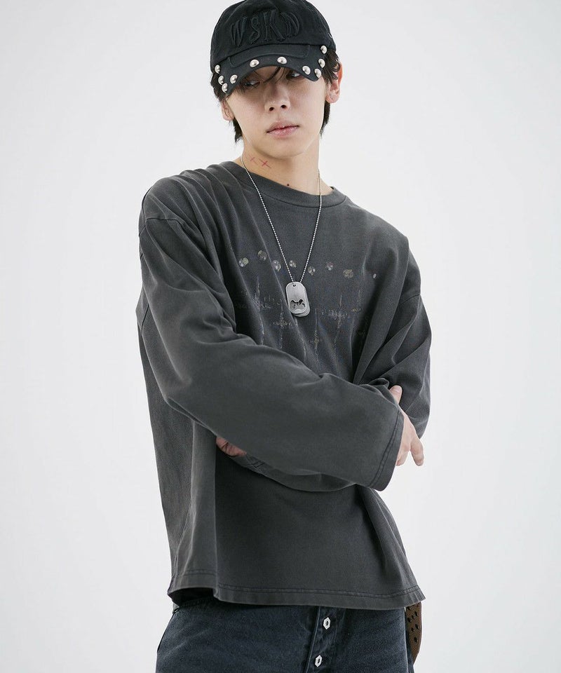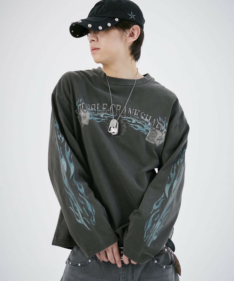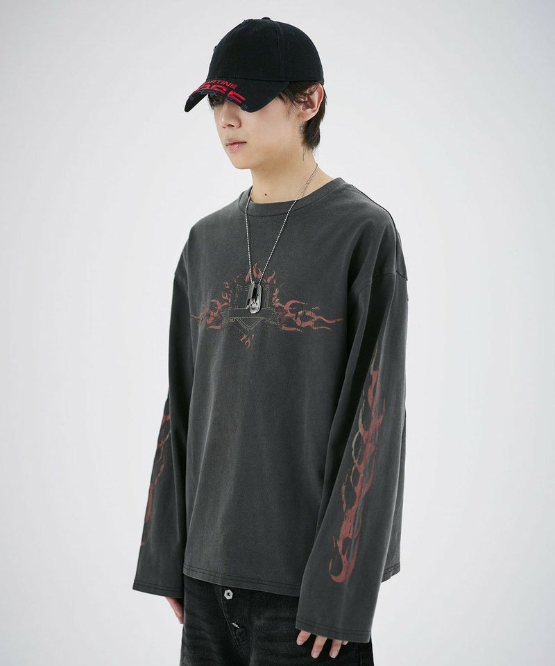 ルーズシルエットアソートグラフィックヴィンテージライクロングTシャツ