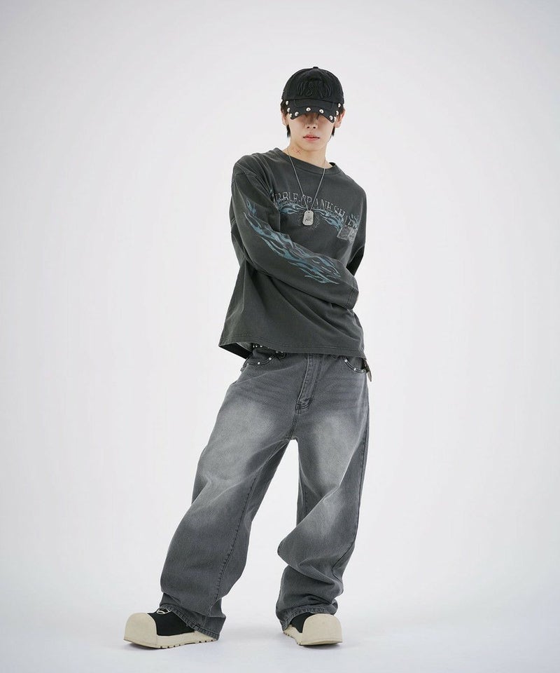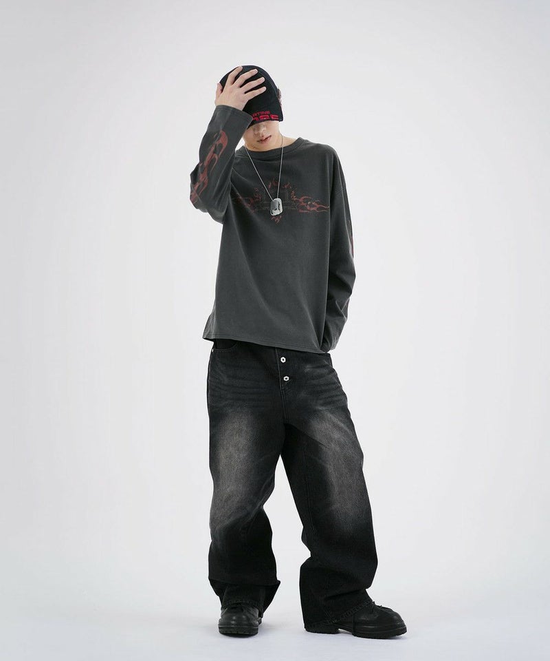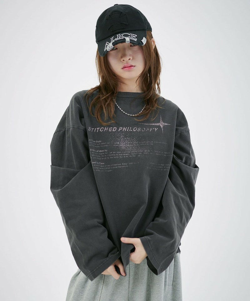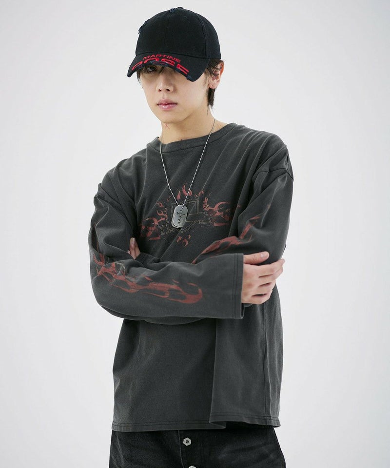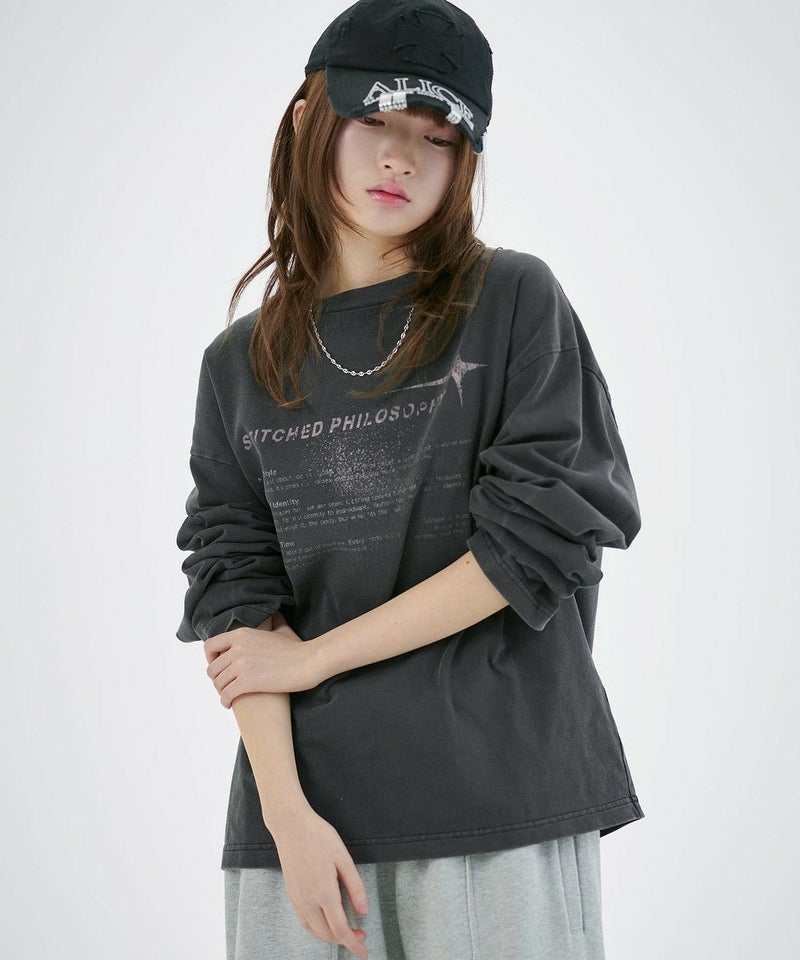 ルーズシルエットアソートグラフィックヴィンテージライクロングTシャツ