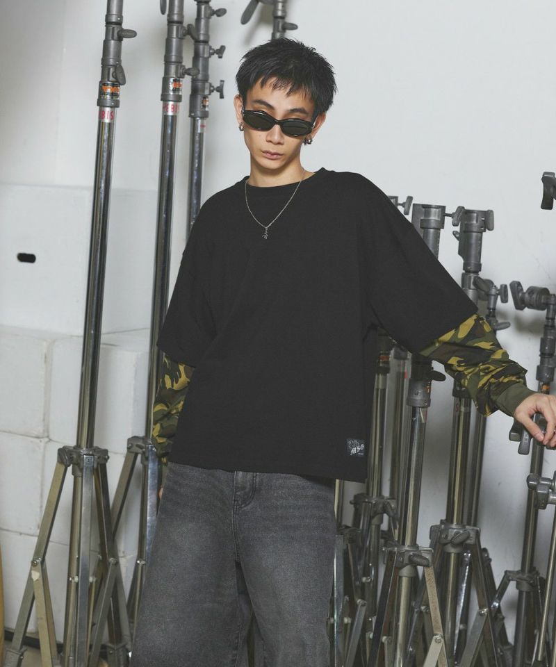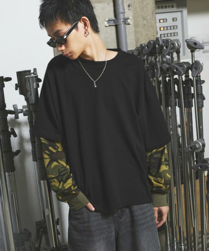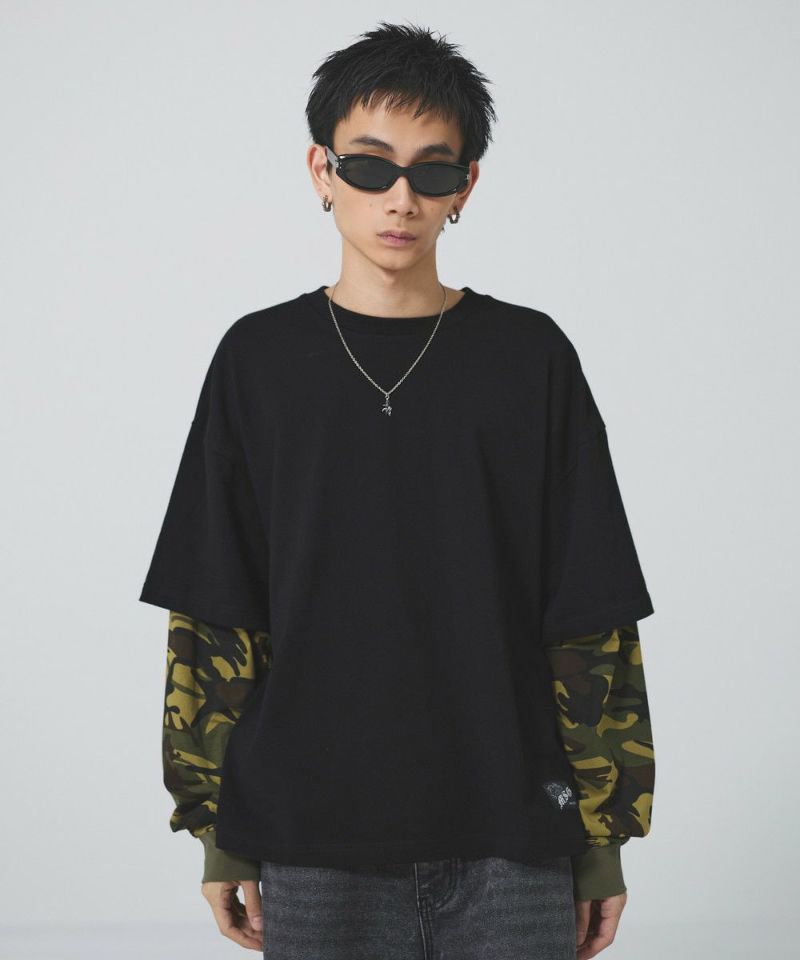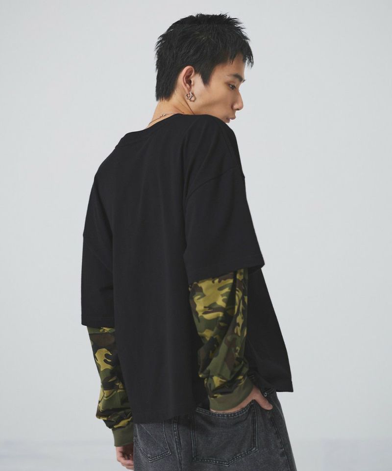 フェイクレイヤードロンT カモフラージュ柄 ボーダー