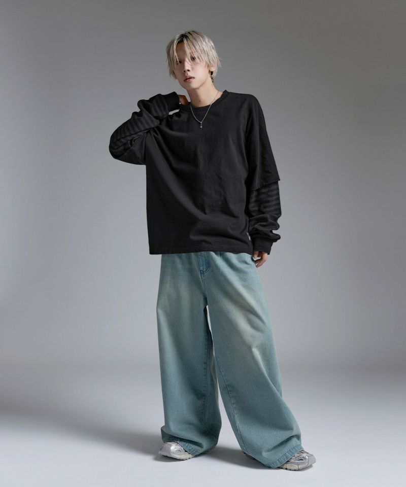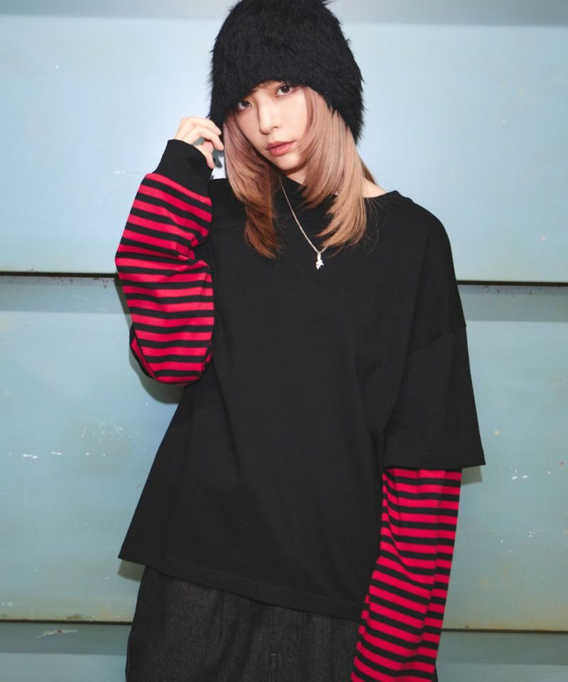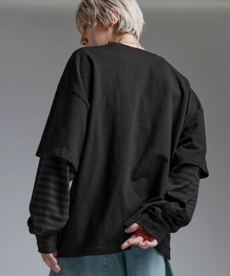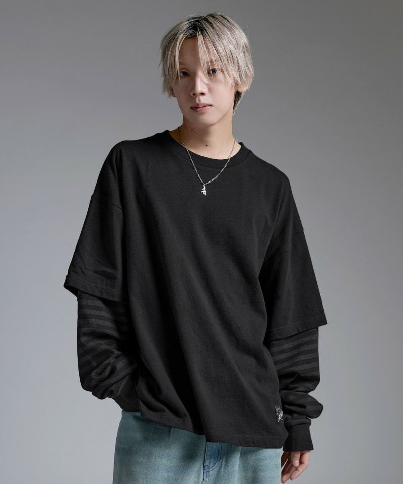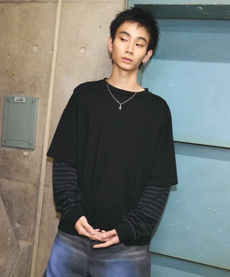 ・重ね着したようなデザインが今っぽい雰囲気のフェイクレイヤードロンT。