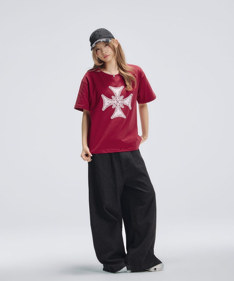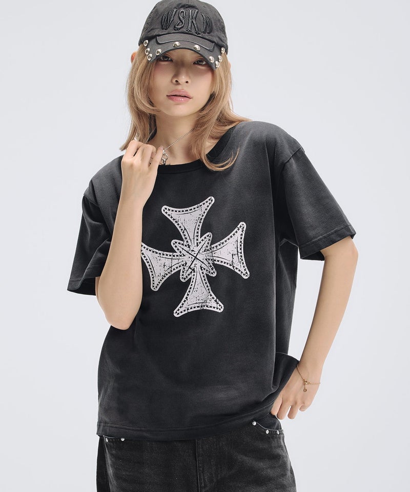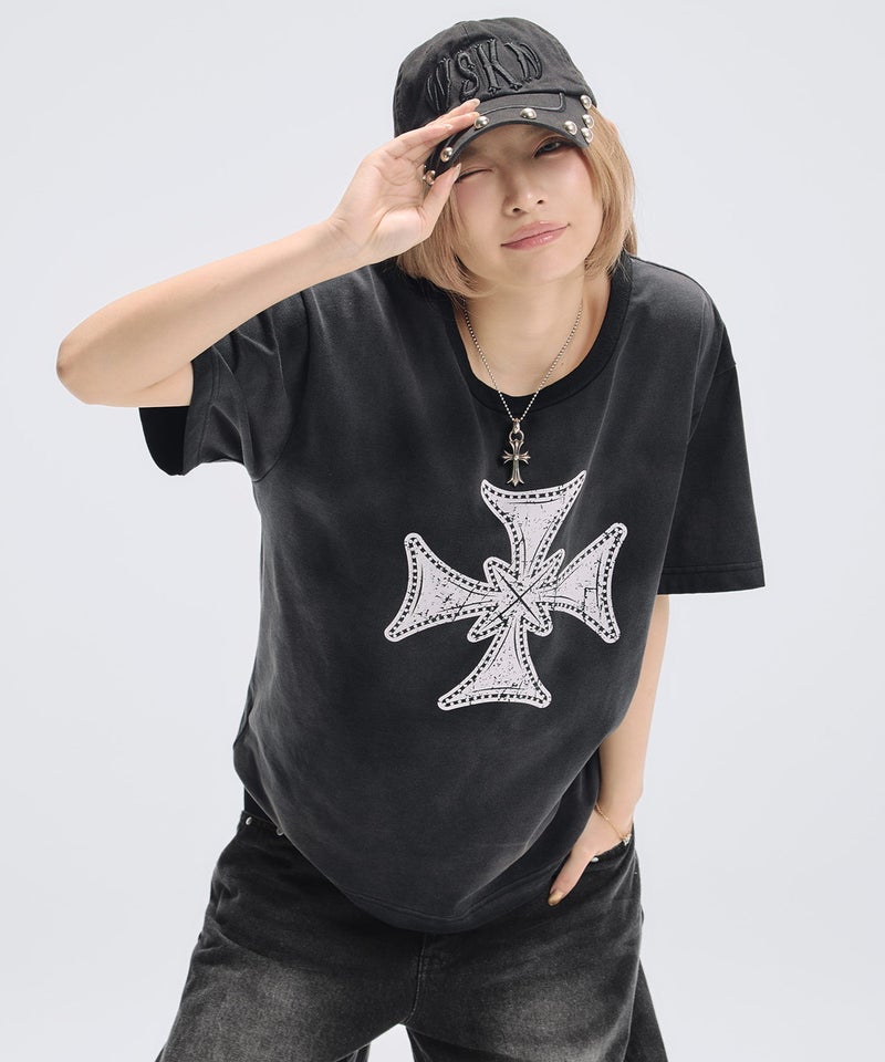 フロントにはクロスモチーフやテキスト、落書き風のグラフィックなど、カラーごとに異なるデザインを落とし込みました。シンプルなボディにグラフィックが映え、スタイリングに程よいアクセントをプラスします。また、ソリッドなカラーやヴィンテージ加工を施したカラー、コーディネートのアクセントになるレッドなど、生地×ロゴデザインの組み合わせが選べる豊富な7色展開となっています。