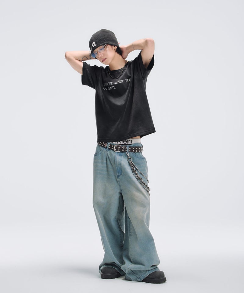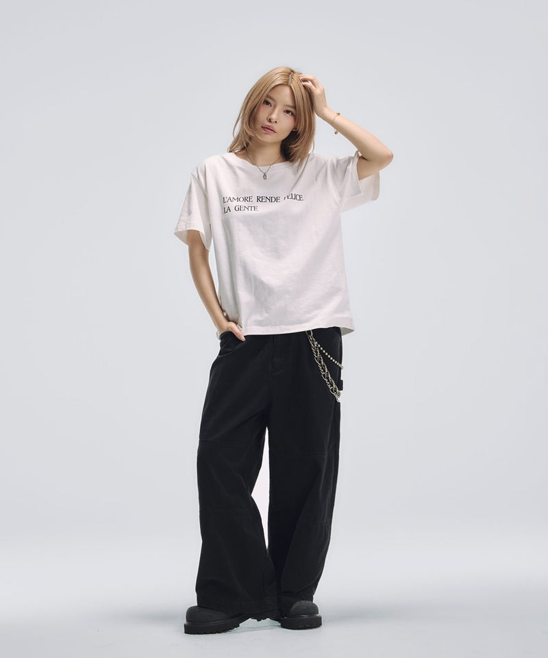 程よくルーズなサイジングで、ワイドパンツやデニムと合わせた王道のストリートスタイルと相性抜群です。一枚での着用はもちろん、インナー使いでグラフィックを覗かせるレイヤードスタイルにも取り入れやすく、幅広い着こなしに対応します。