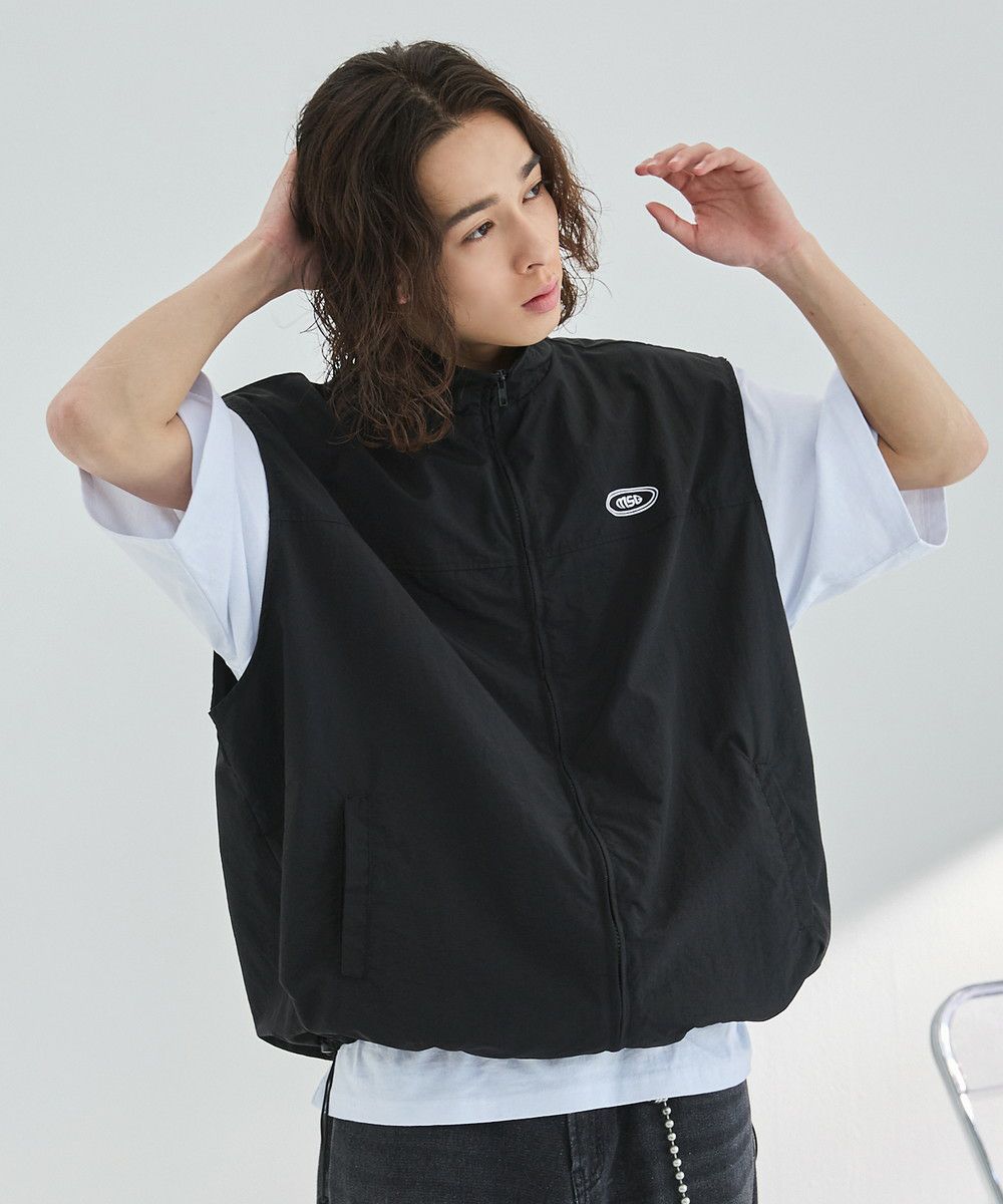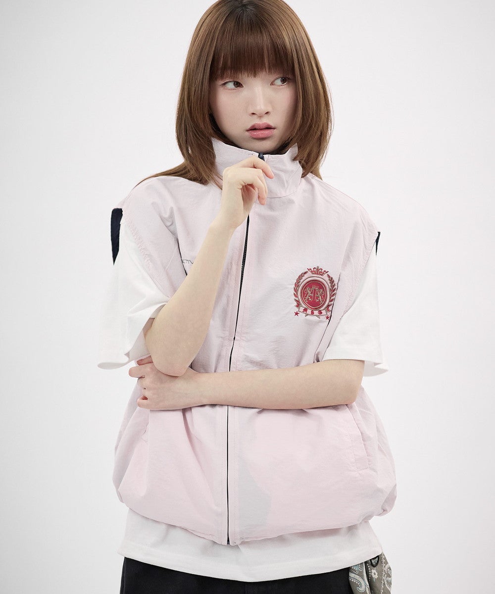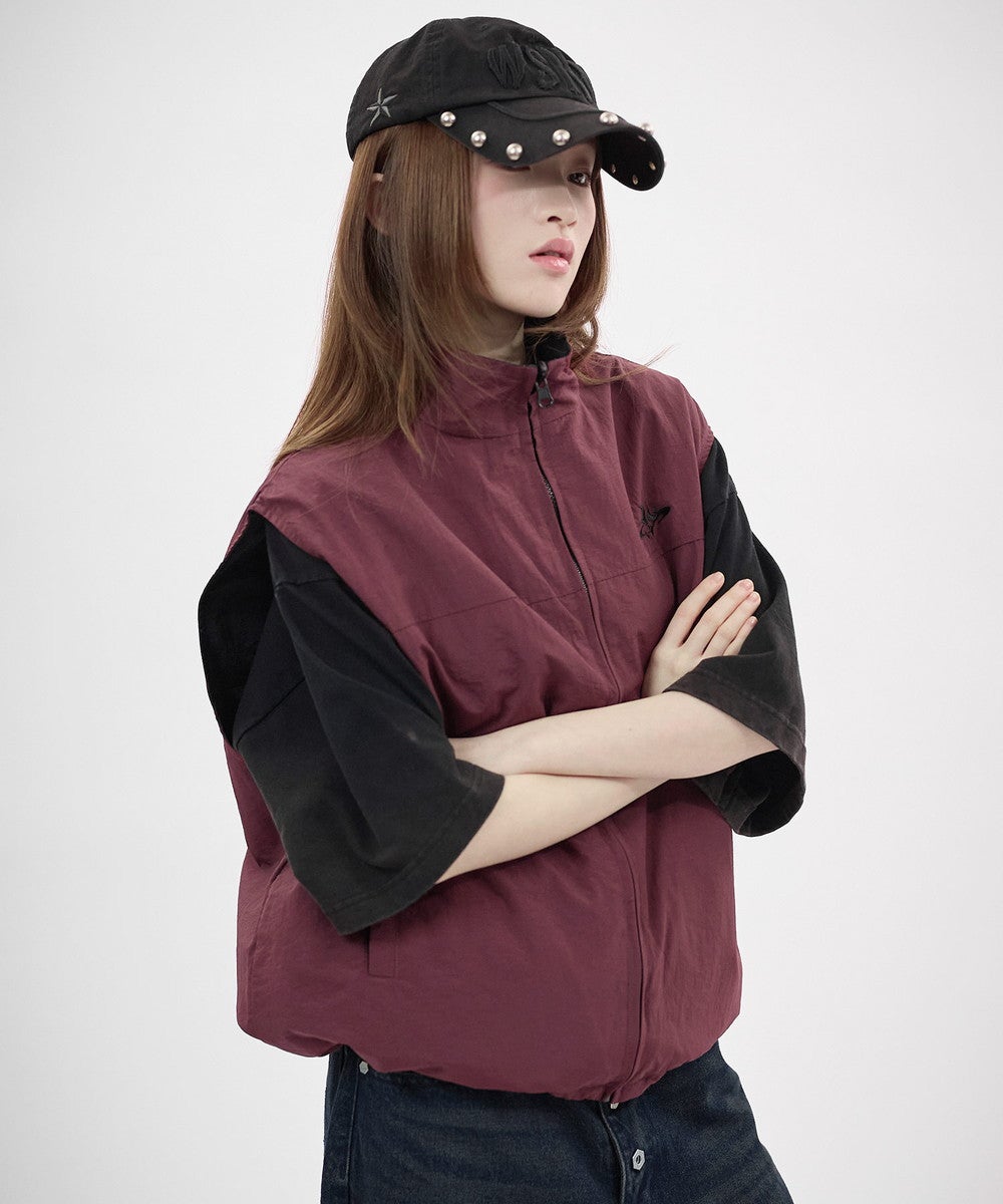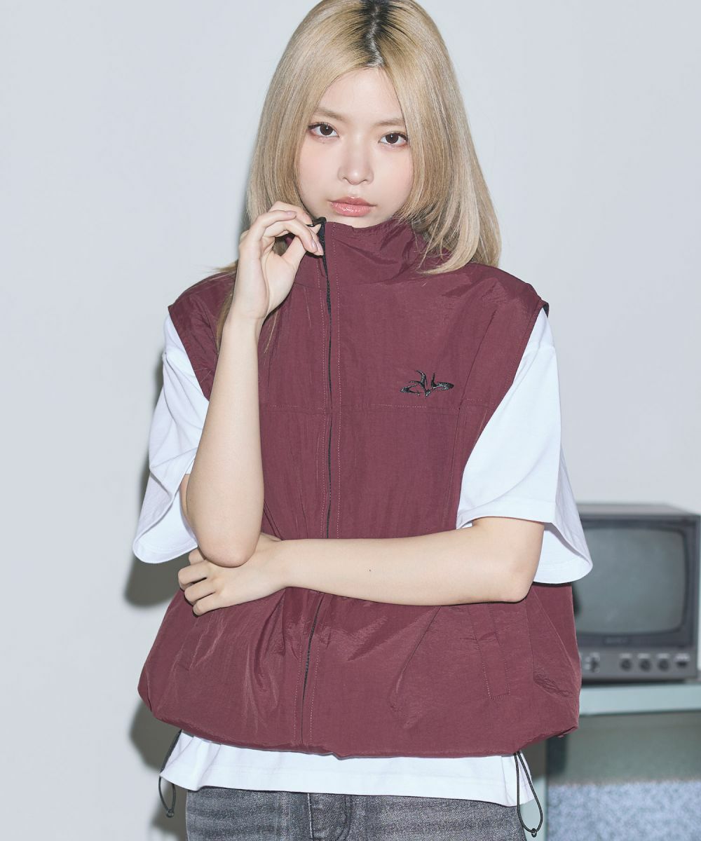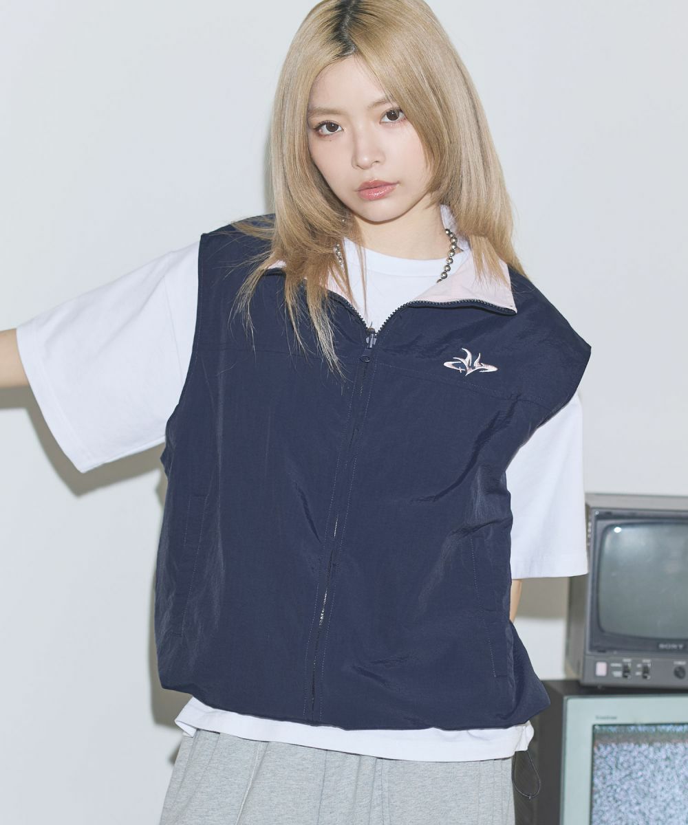 ワンポイント刺繍ロゴ/配色ナイロンバルーンベスト