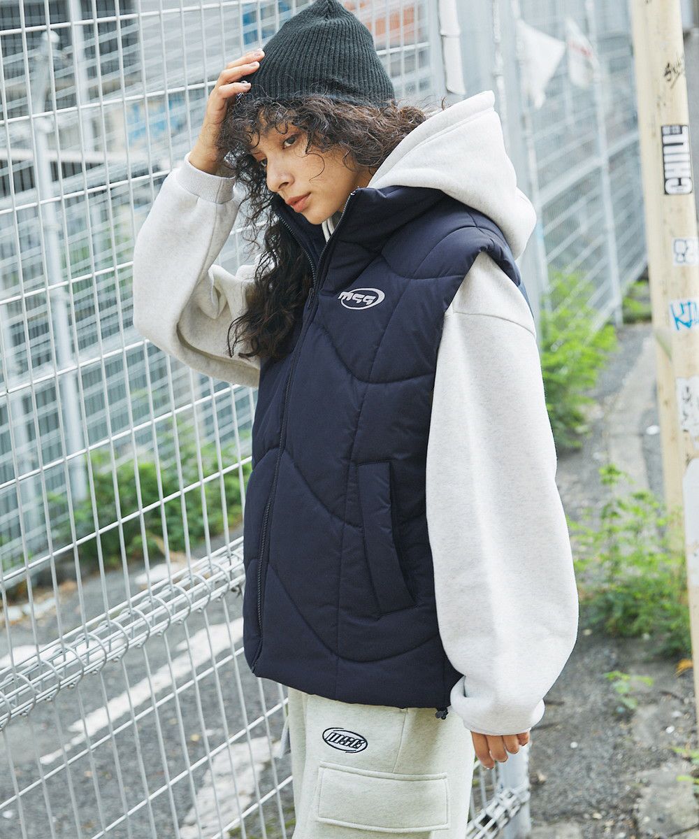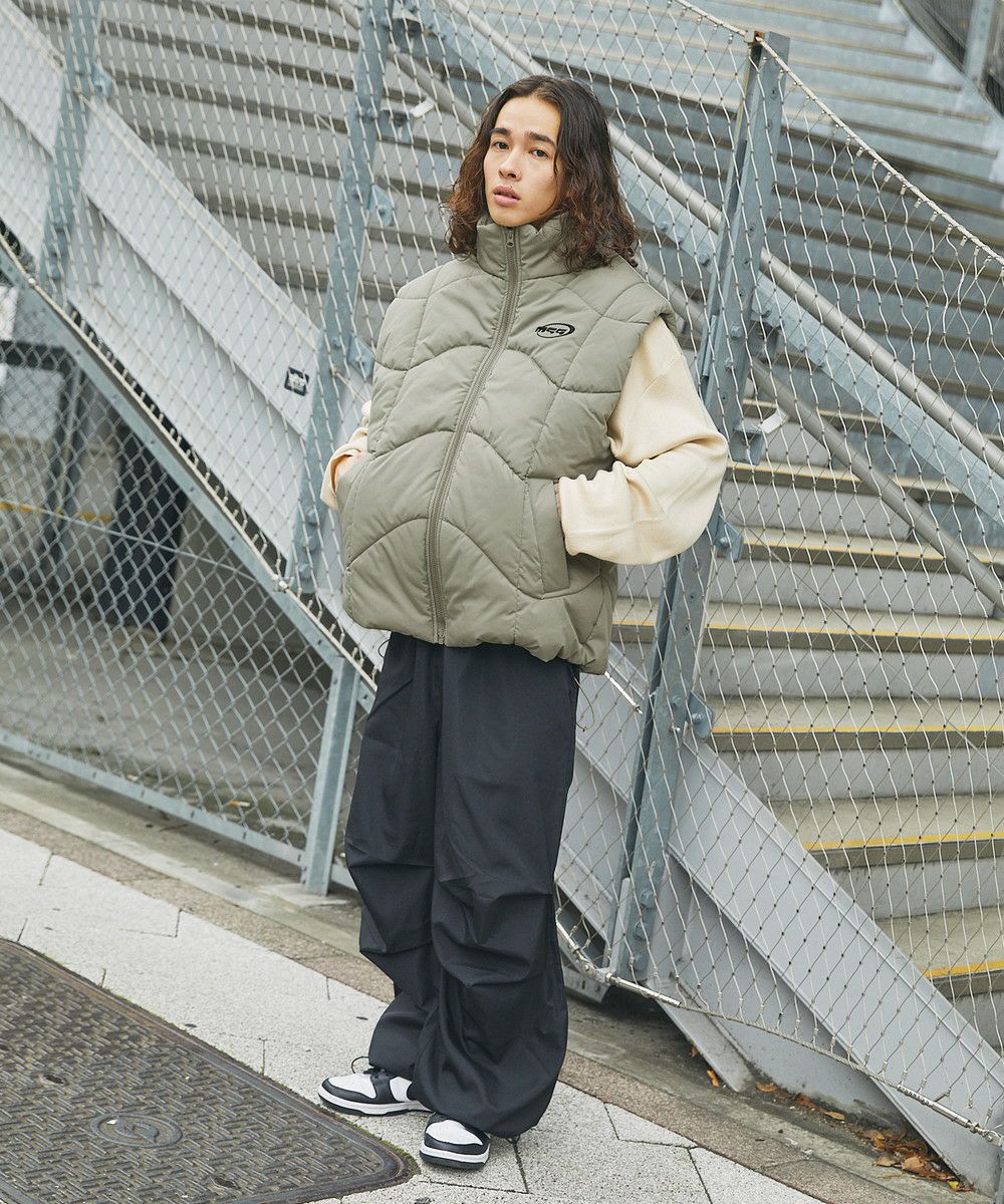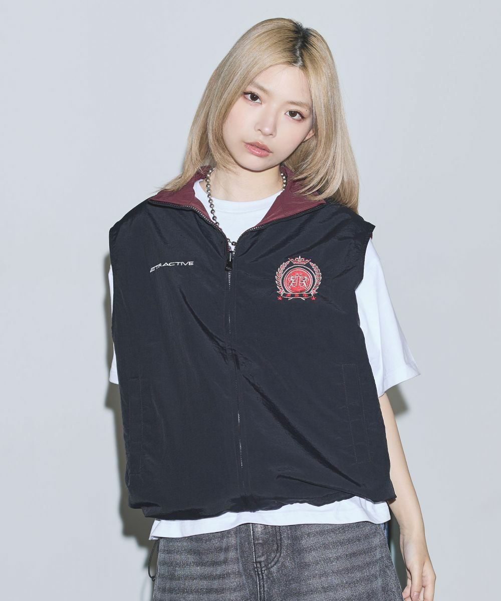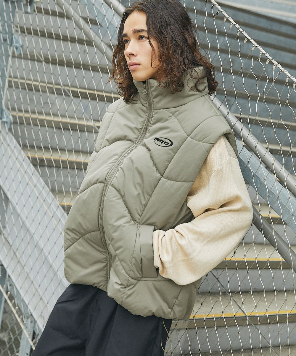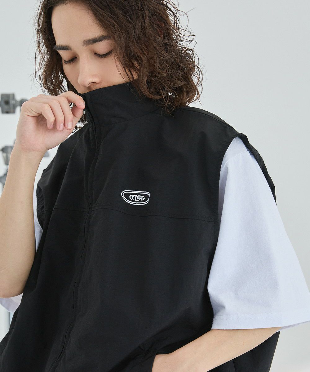 ワンポイント刺繍ロゴ/配色ナイロンバルーンベスト