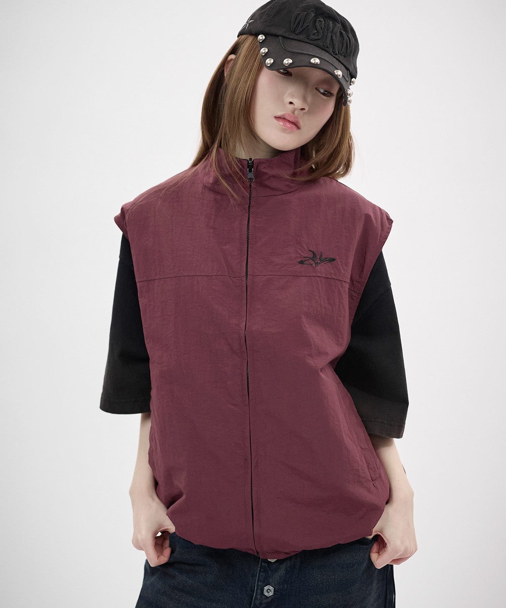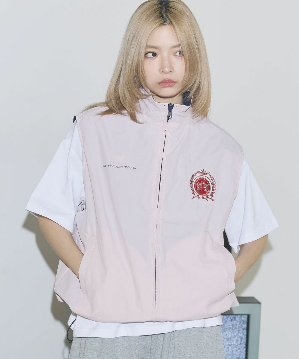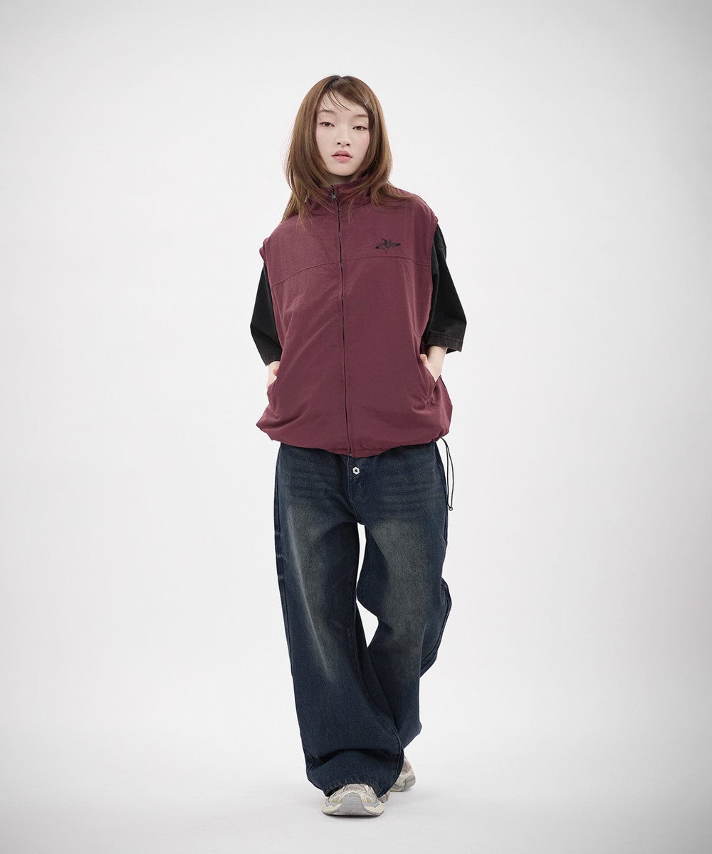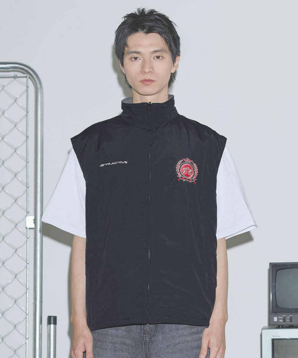 ワンポイント刺繍ロゴ/配色ナイロンバルーンベスト