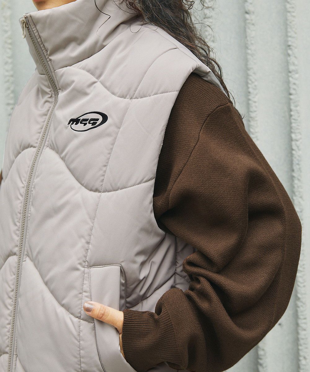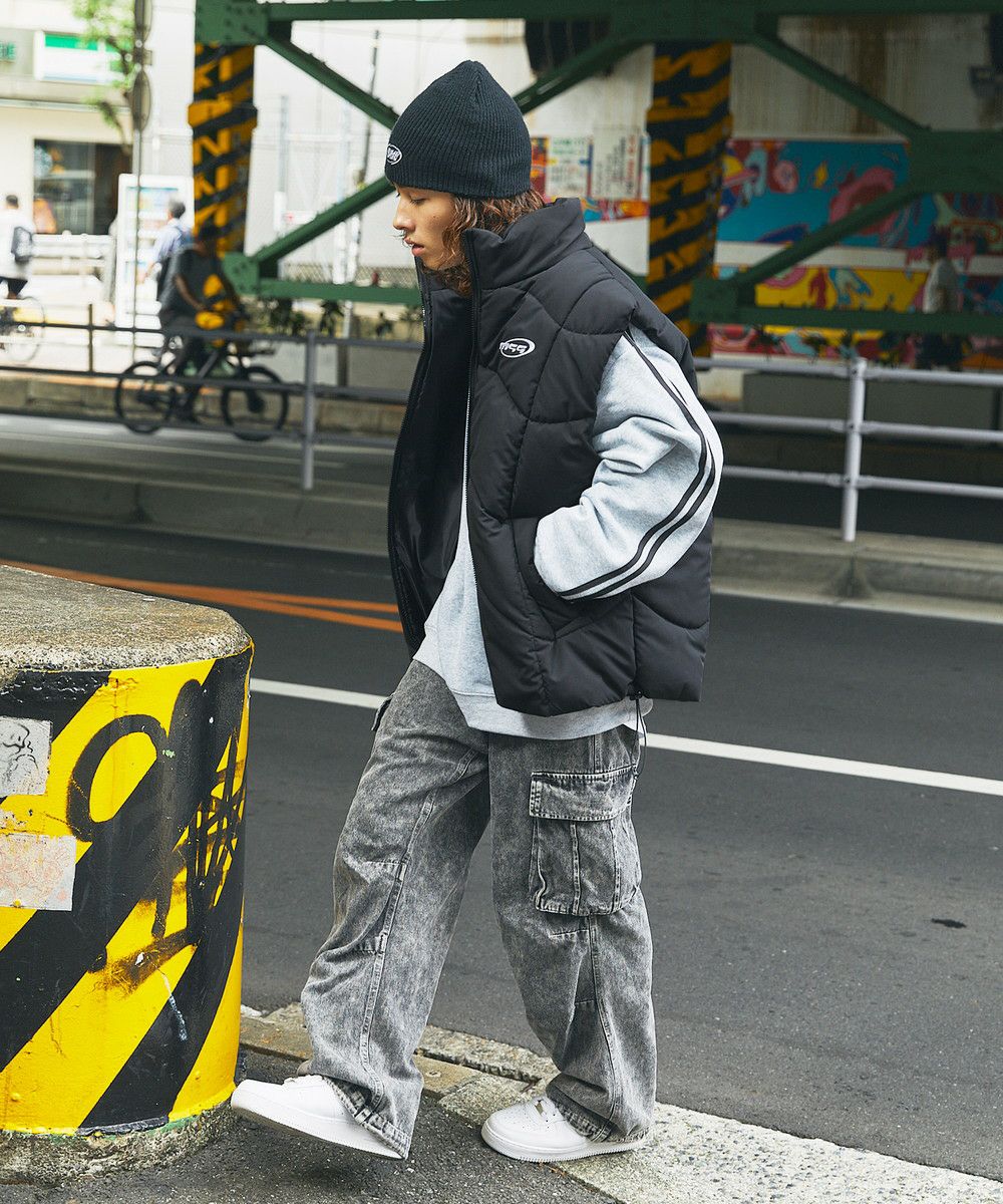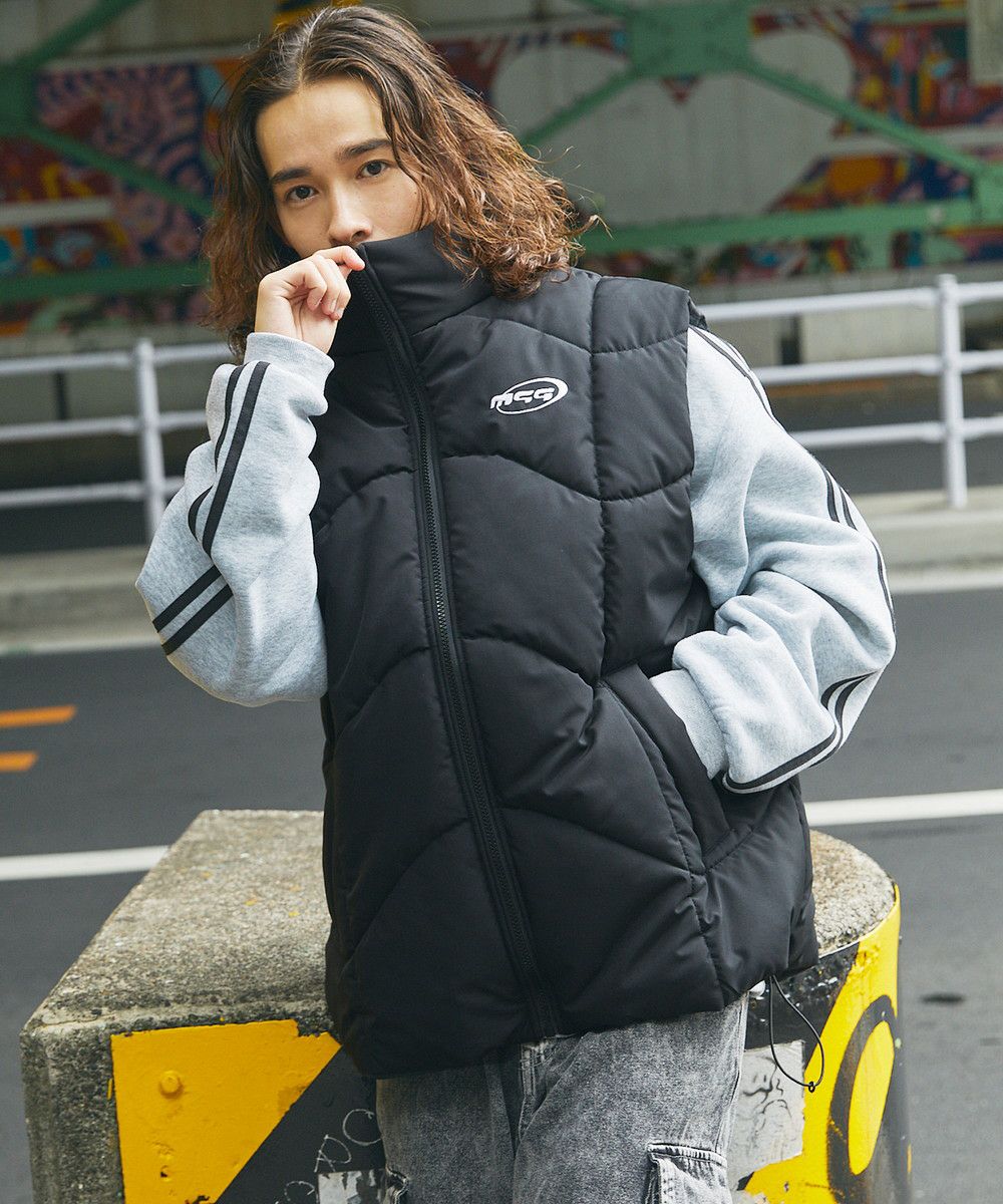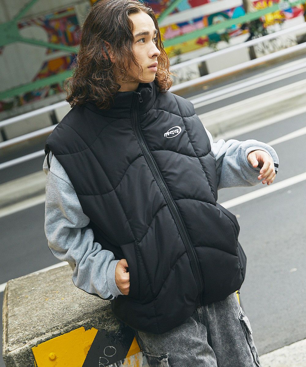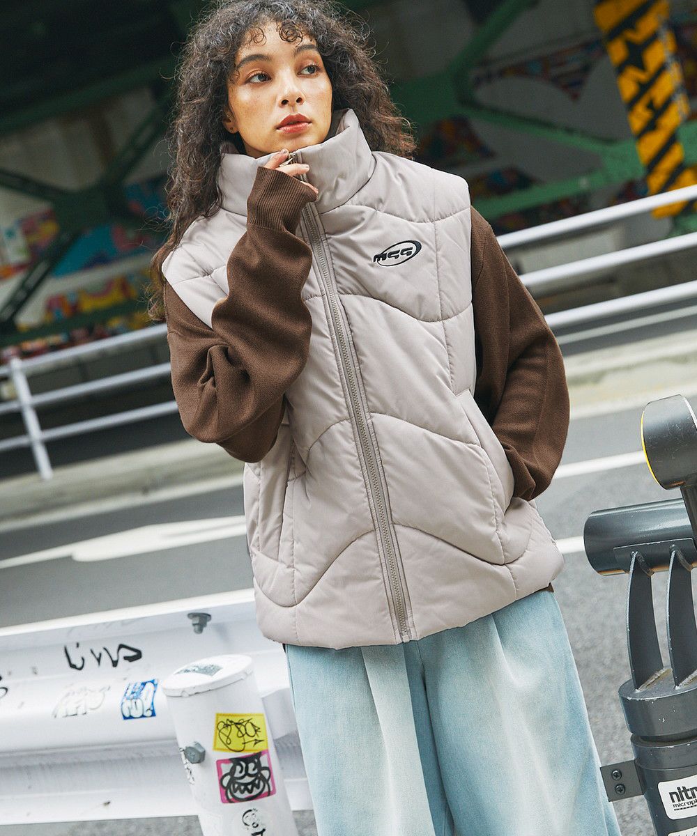 ワンポイント刺繍ロゴ/配色ナイロンバルーンベスト
