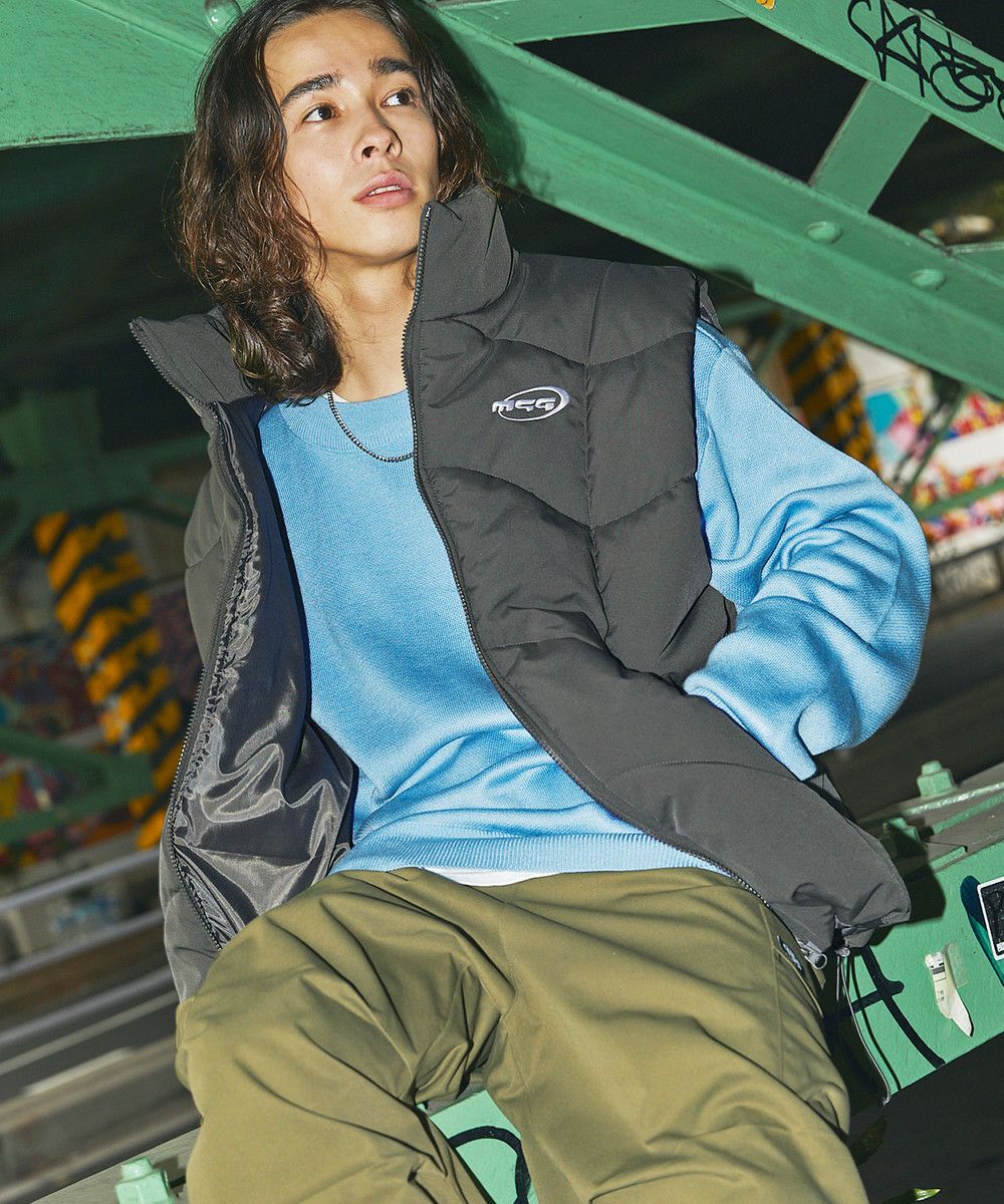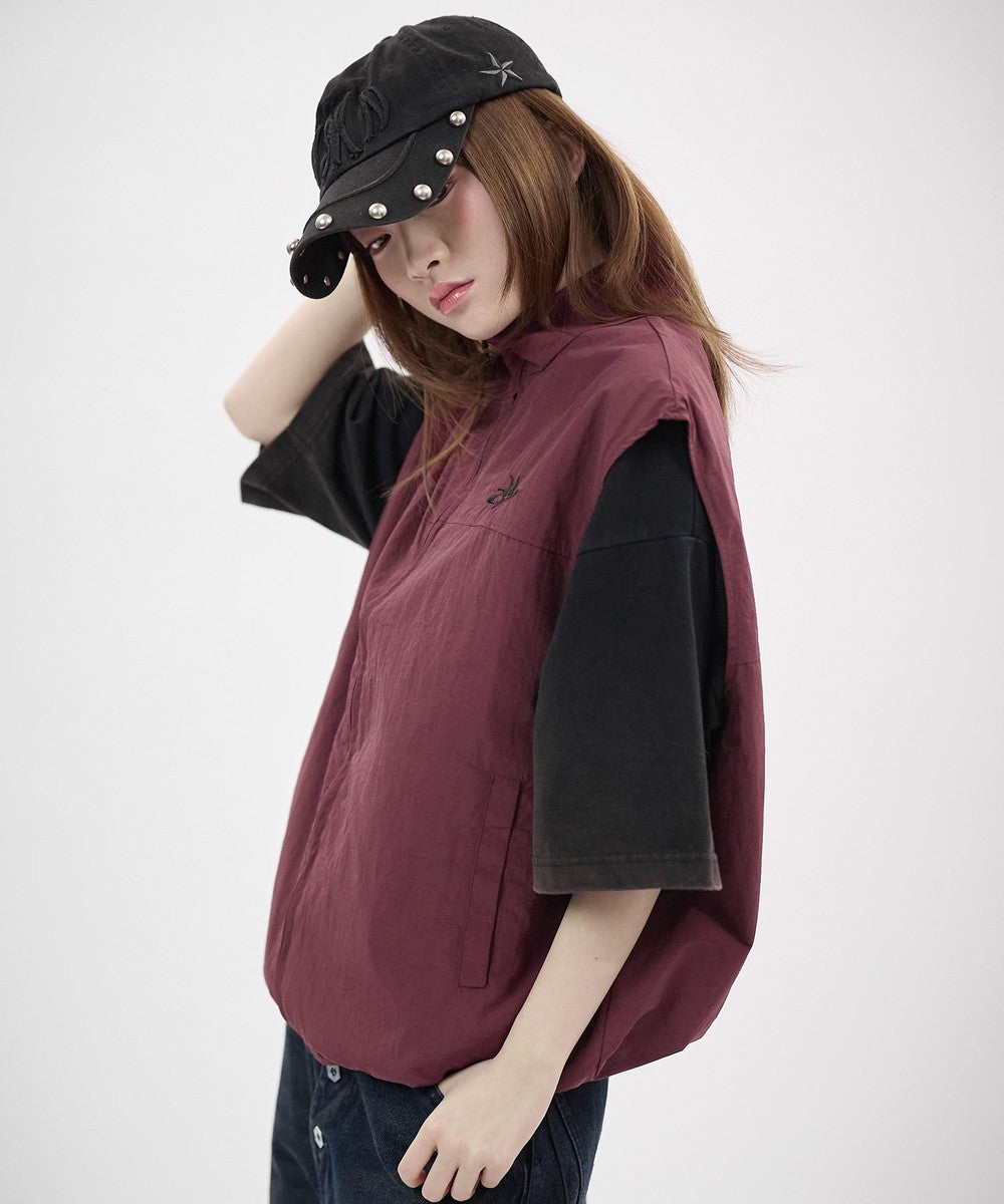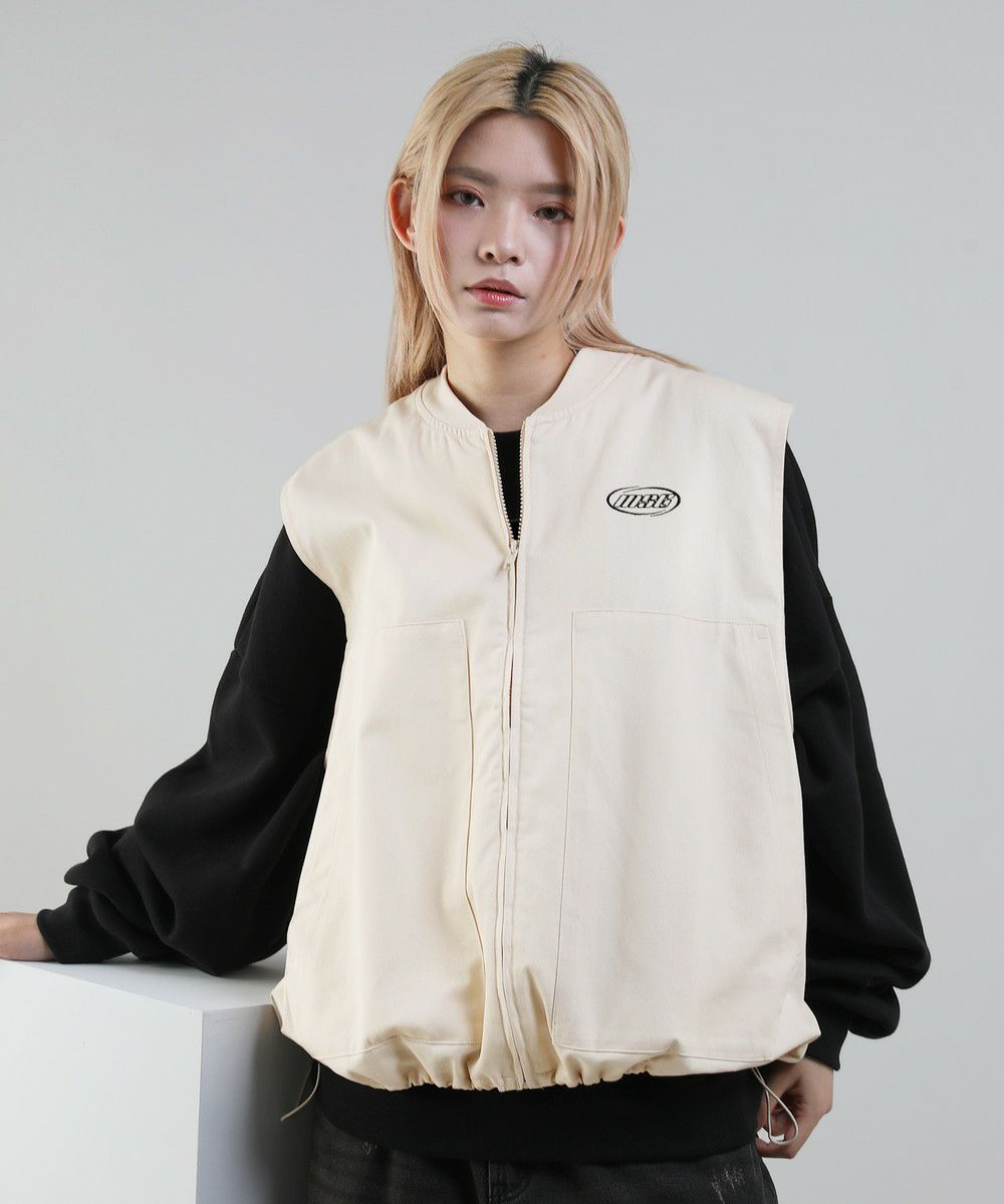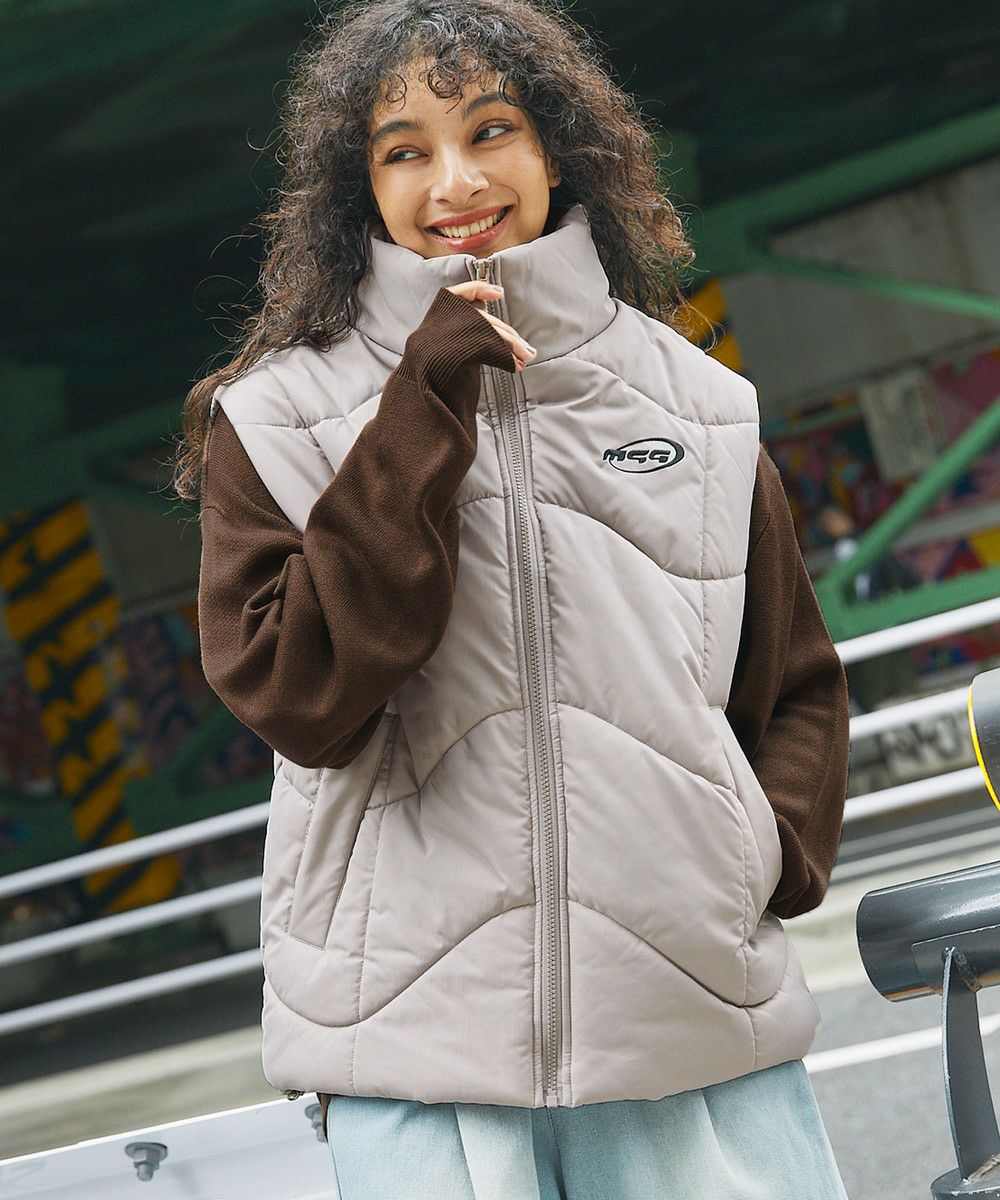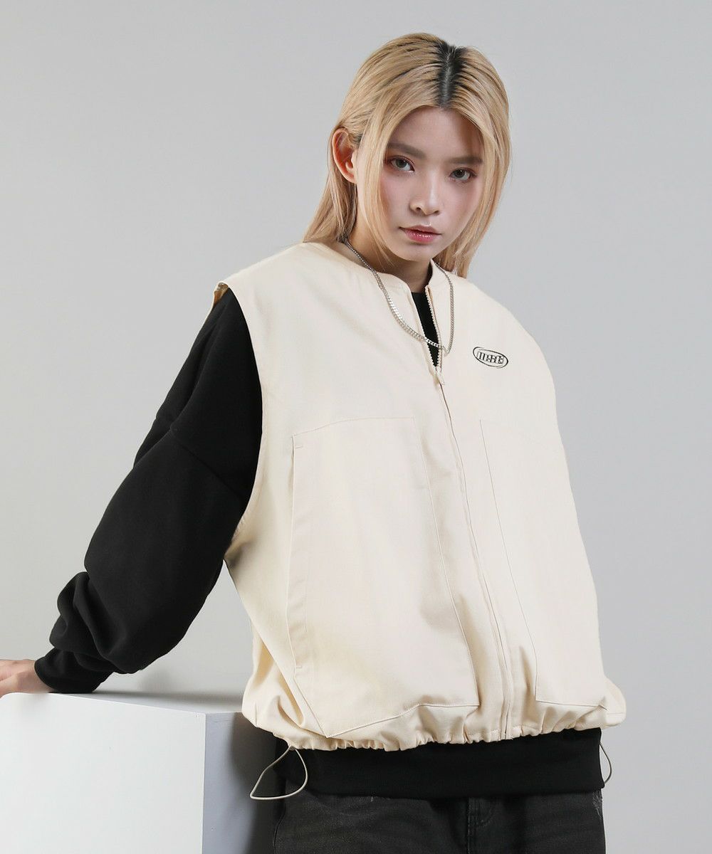 ワンポイント刺繍ロゴ/配色ナイロンバルーンベスト