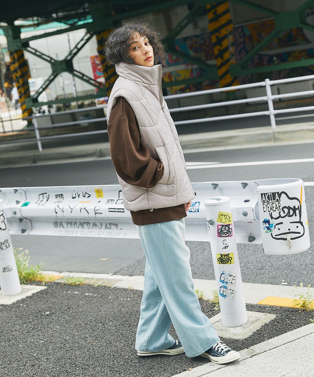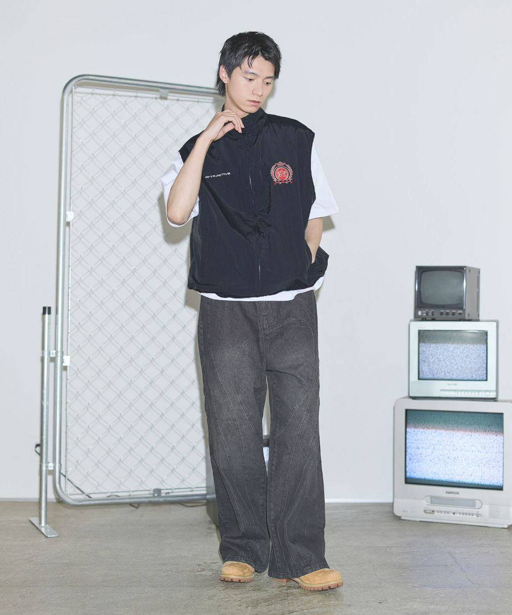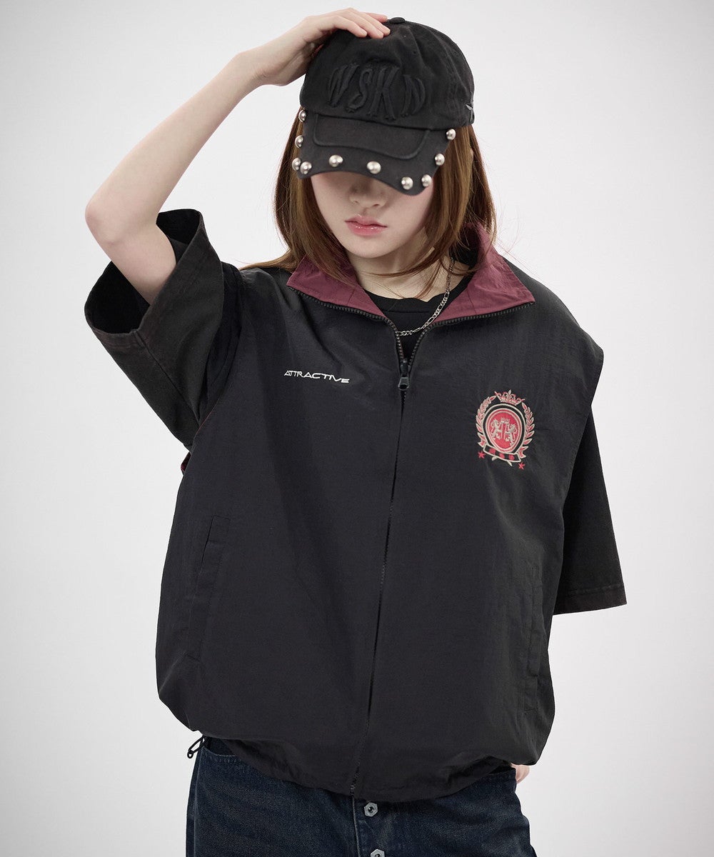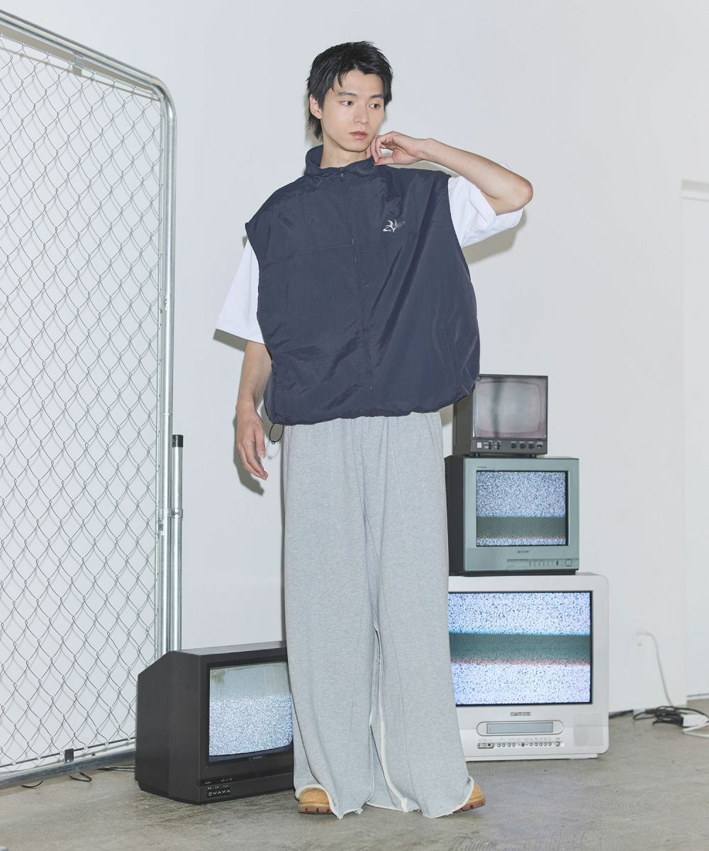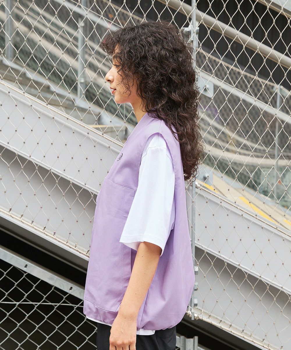 ワンポイント刺繍ロゴ/配色ナイロンバルーンベスト