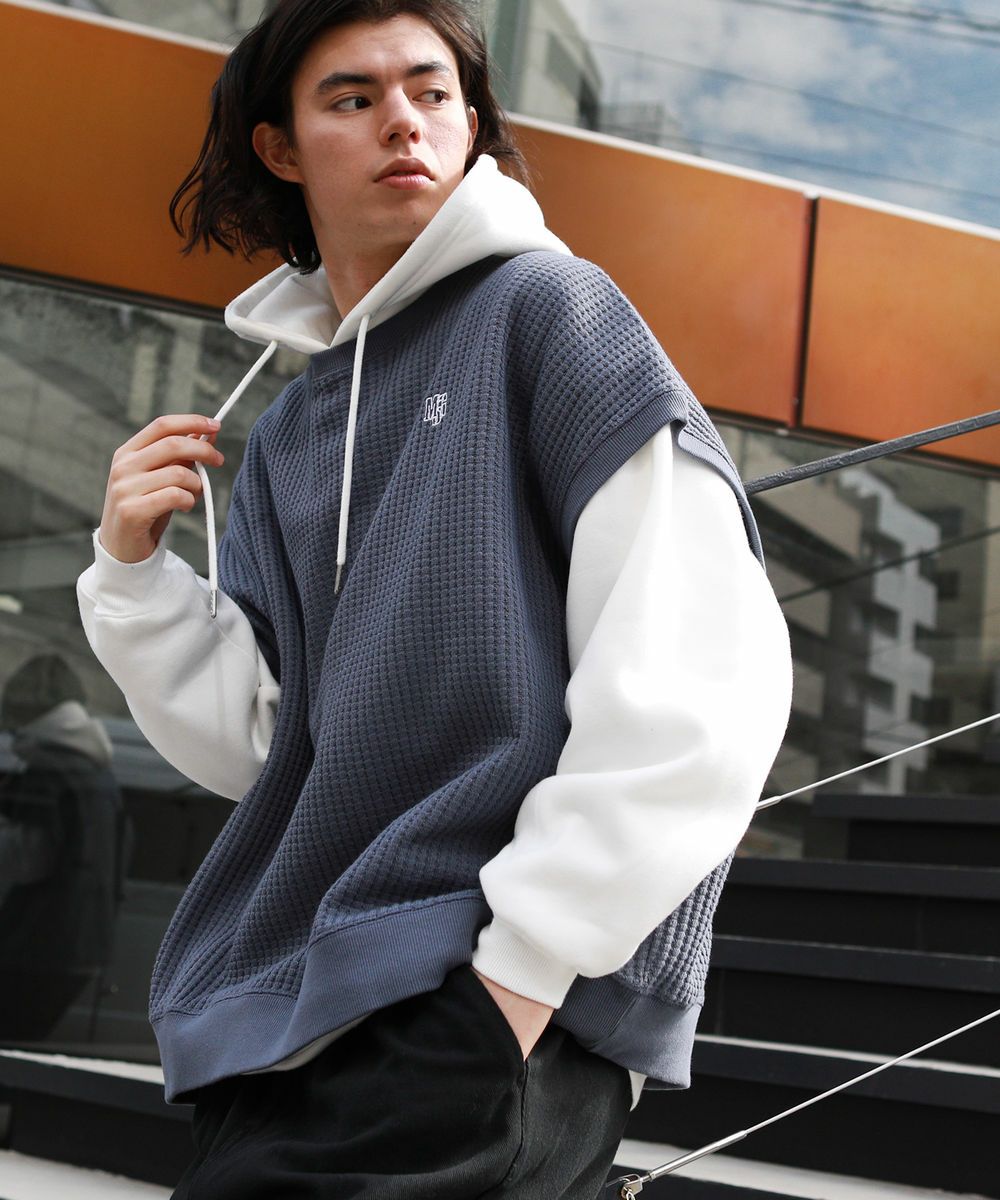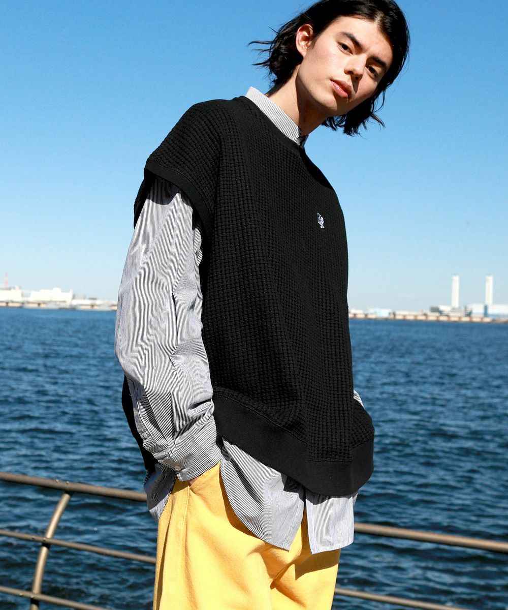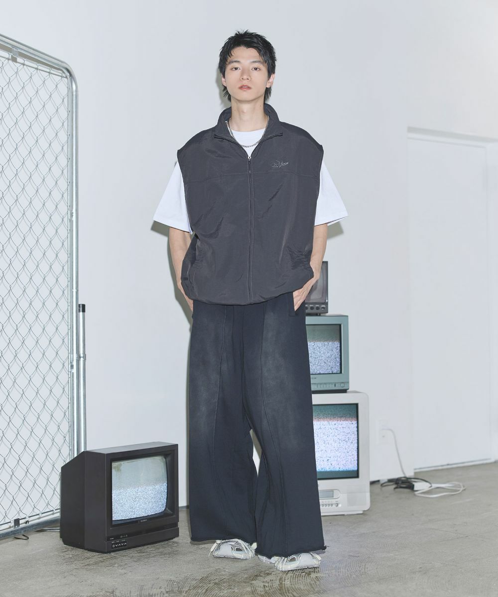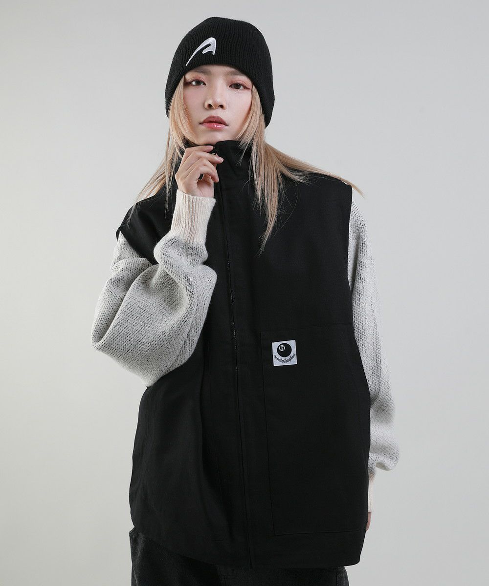 ワンポイント刺繍ロゴ/配色ナイロンバルーンベスト