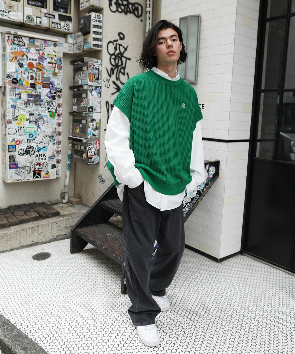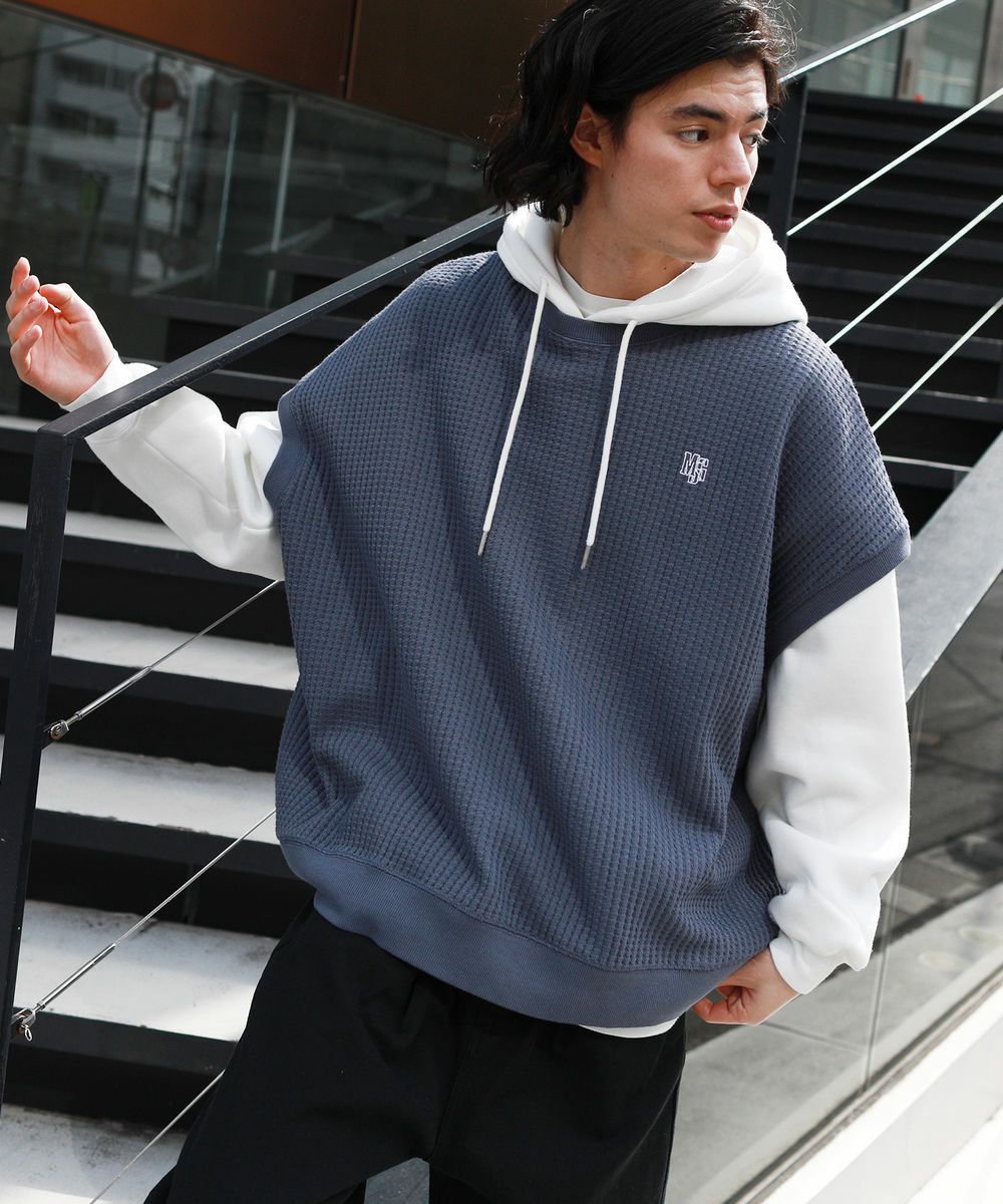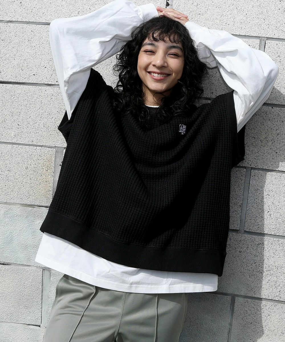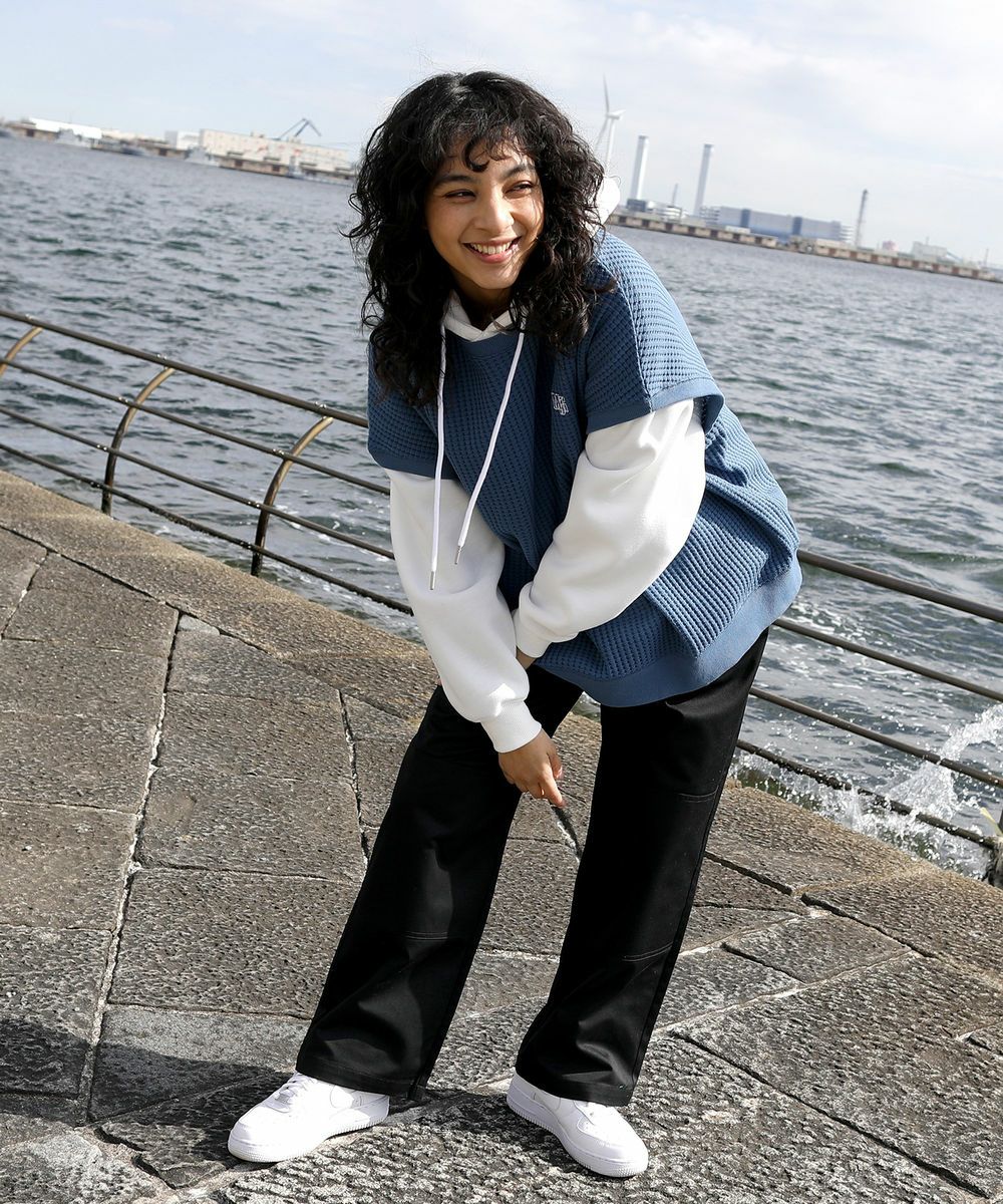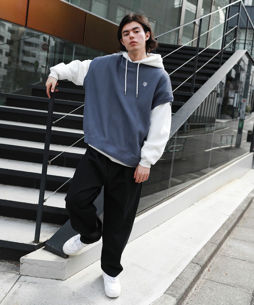ワンポイント刺繍ロゴ/配色ナイロンバルーンベスト