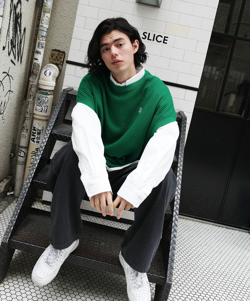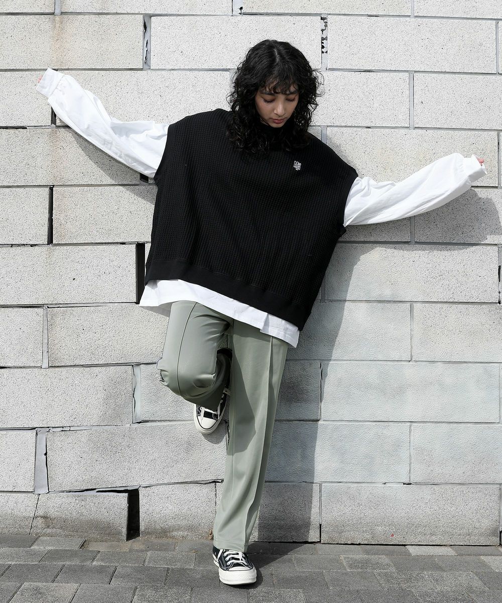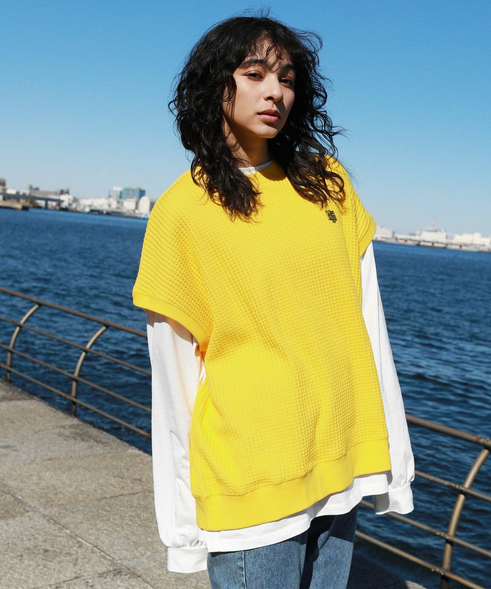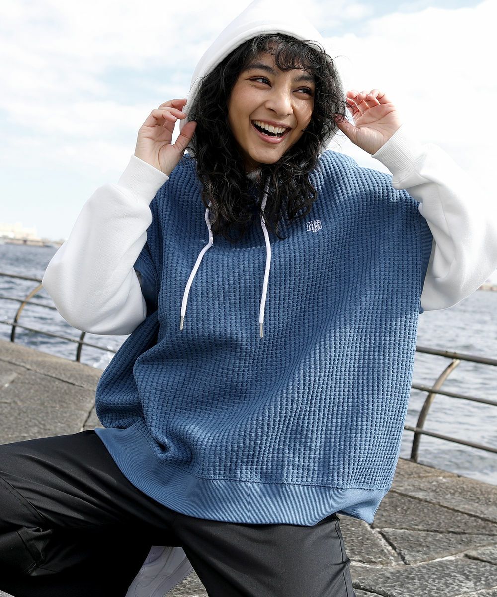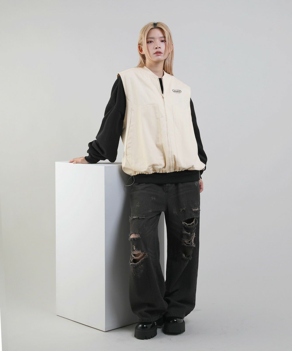ワンポイント刺繍ロゴ/配色ナイロンバルーンベスト
