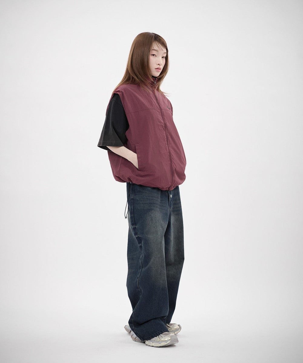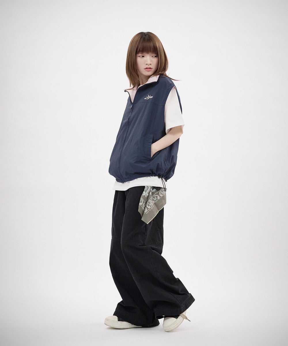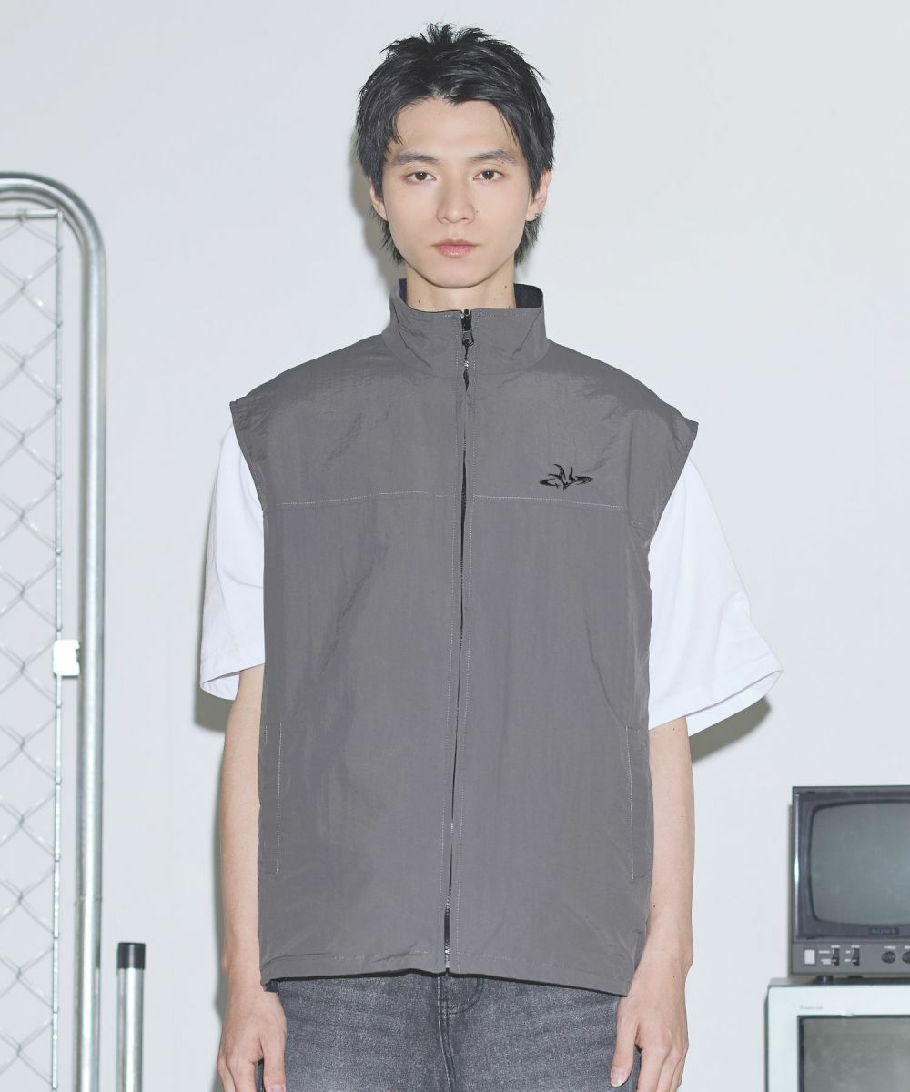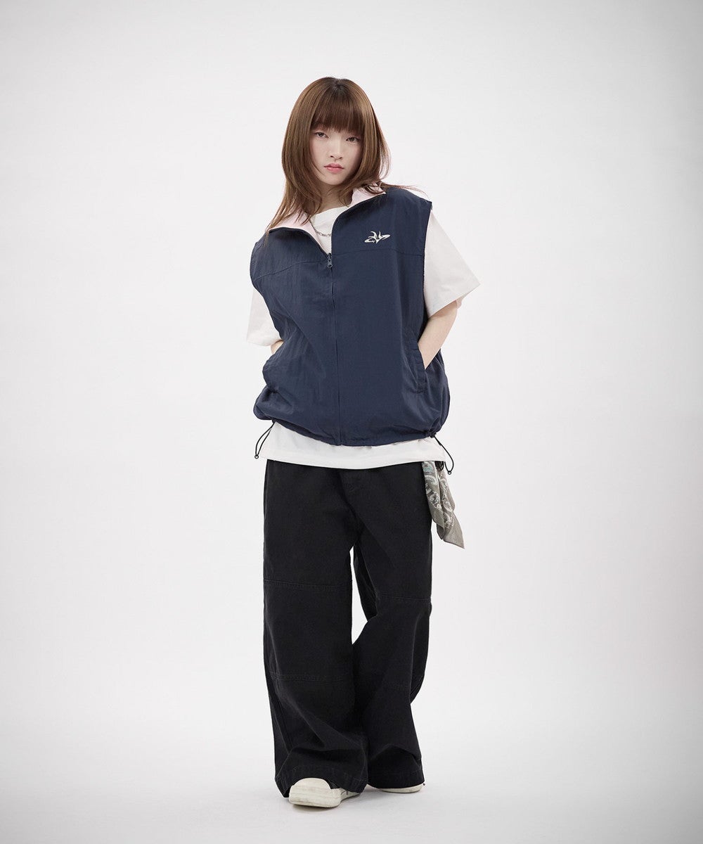ナイロン リバーシブルドローコードスタンドネックベスト